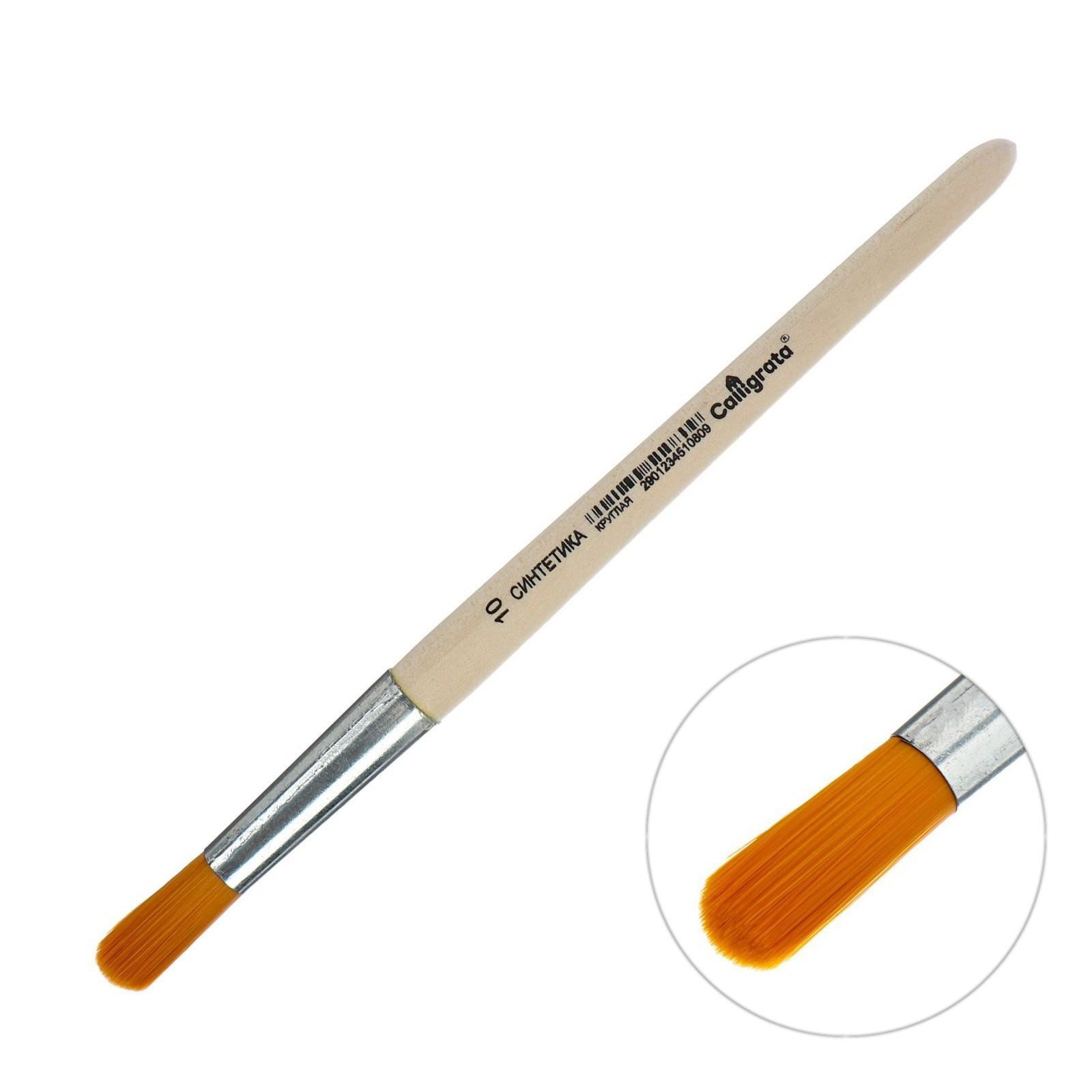 Кисть для рисования, синтетика, № 10, круглая, деревянная ручка, Calligrata, Россия