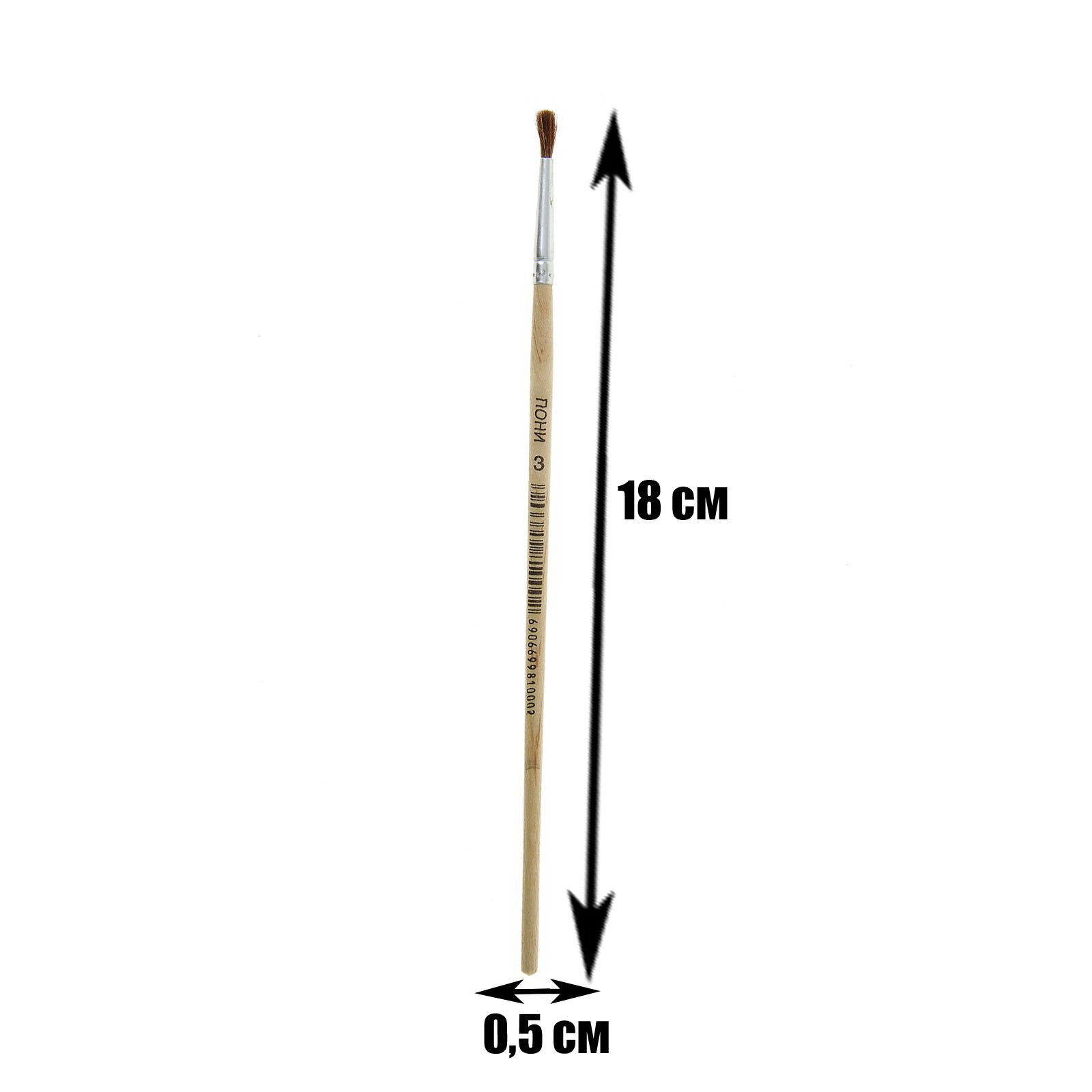 Кисть для рисования, пони, № 3, круглая, деревянная ручка, международный размер, 0.5x0.5x18 см., Calligrata, Китай