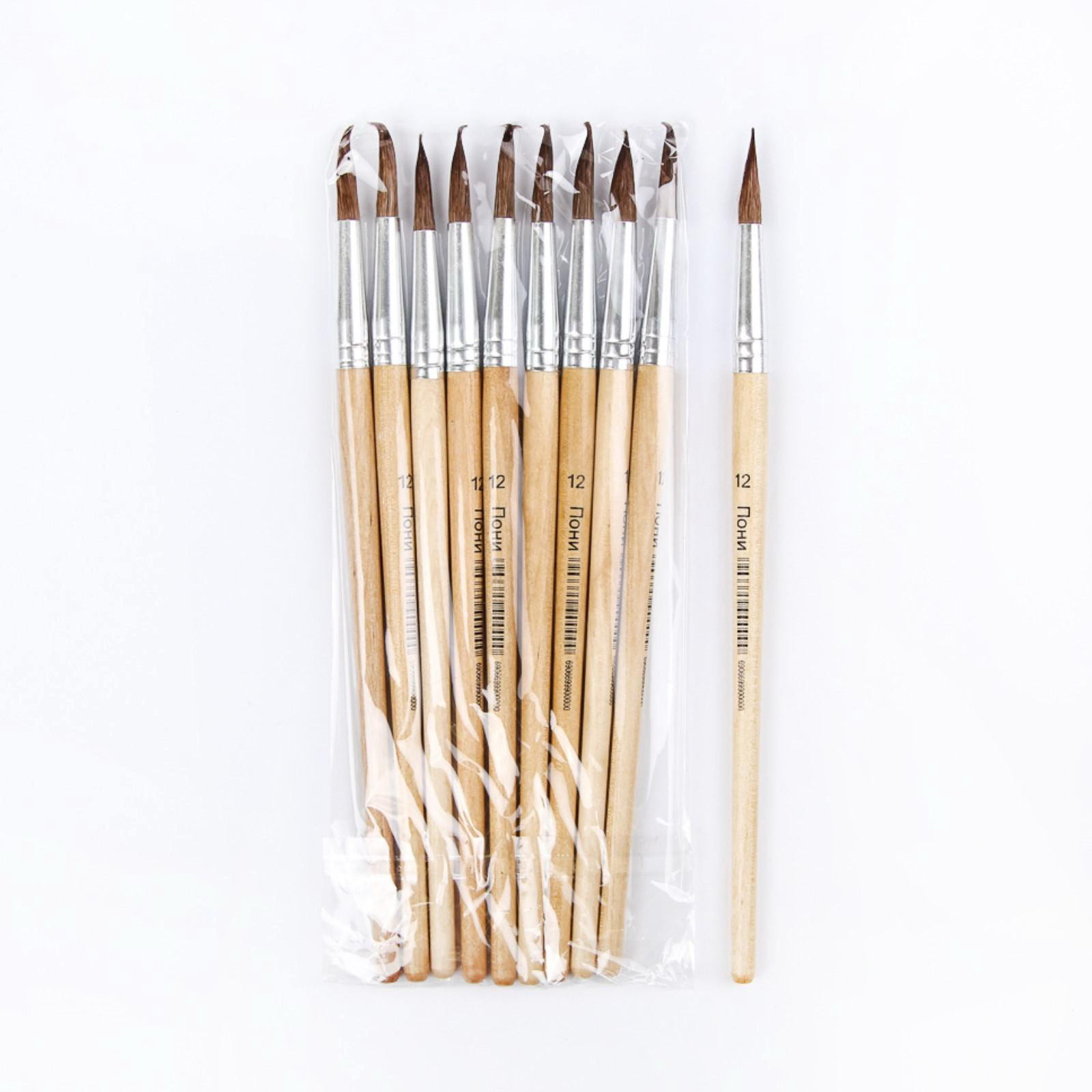 Кисть для рисования, пони, № 12, круглая, деревянная ручка, международный размер, 0.9x0.9x19 см., Calligrata, Китай
