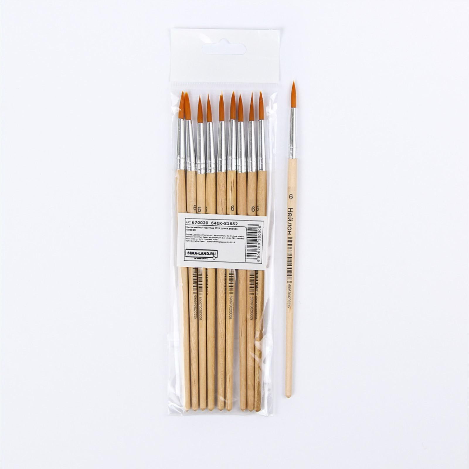 Кисть для рисования, нейлон, № 6, круглая, деревянная ручка, международный размер, 0.6x0.6x18 см., Calligrata, Китай