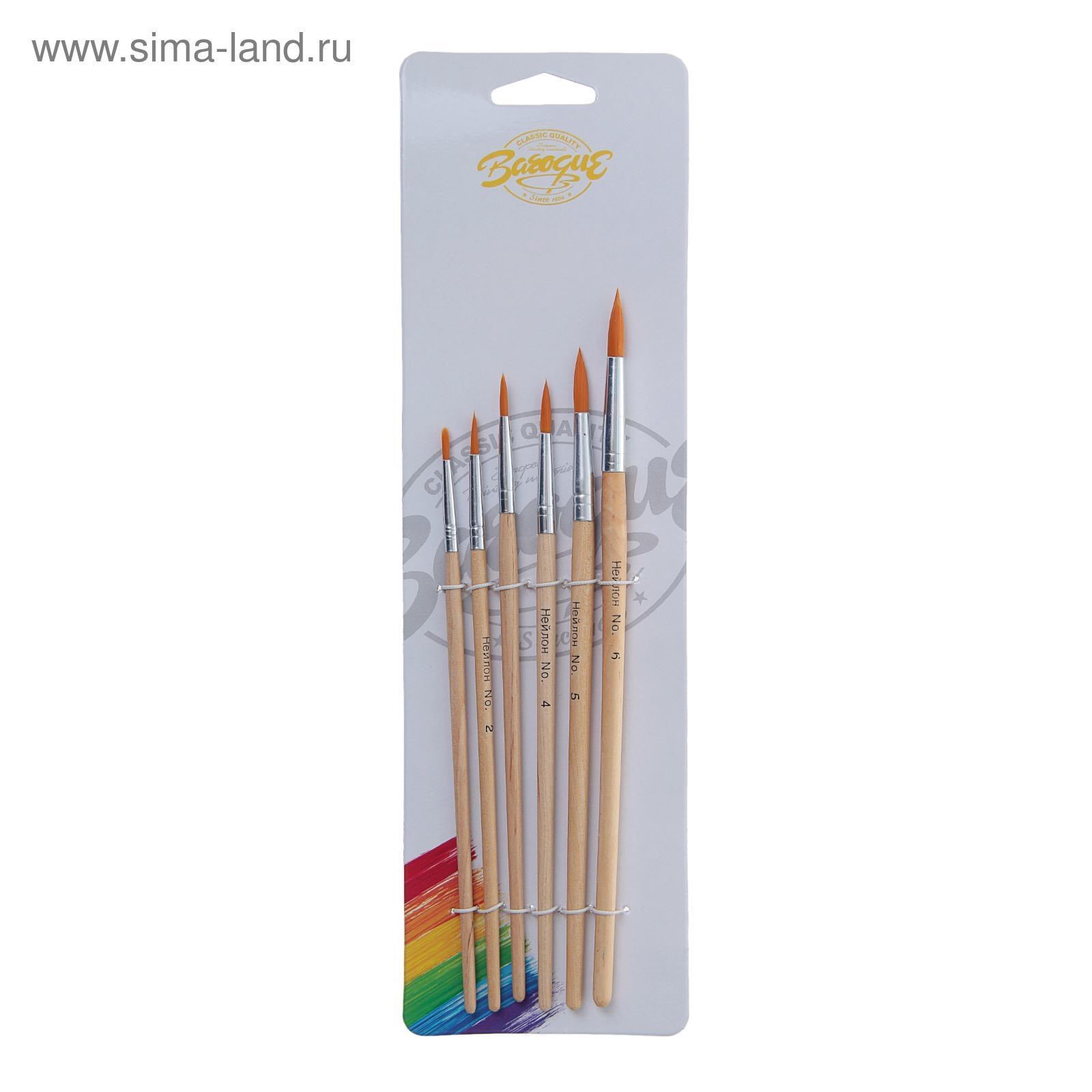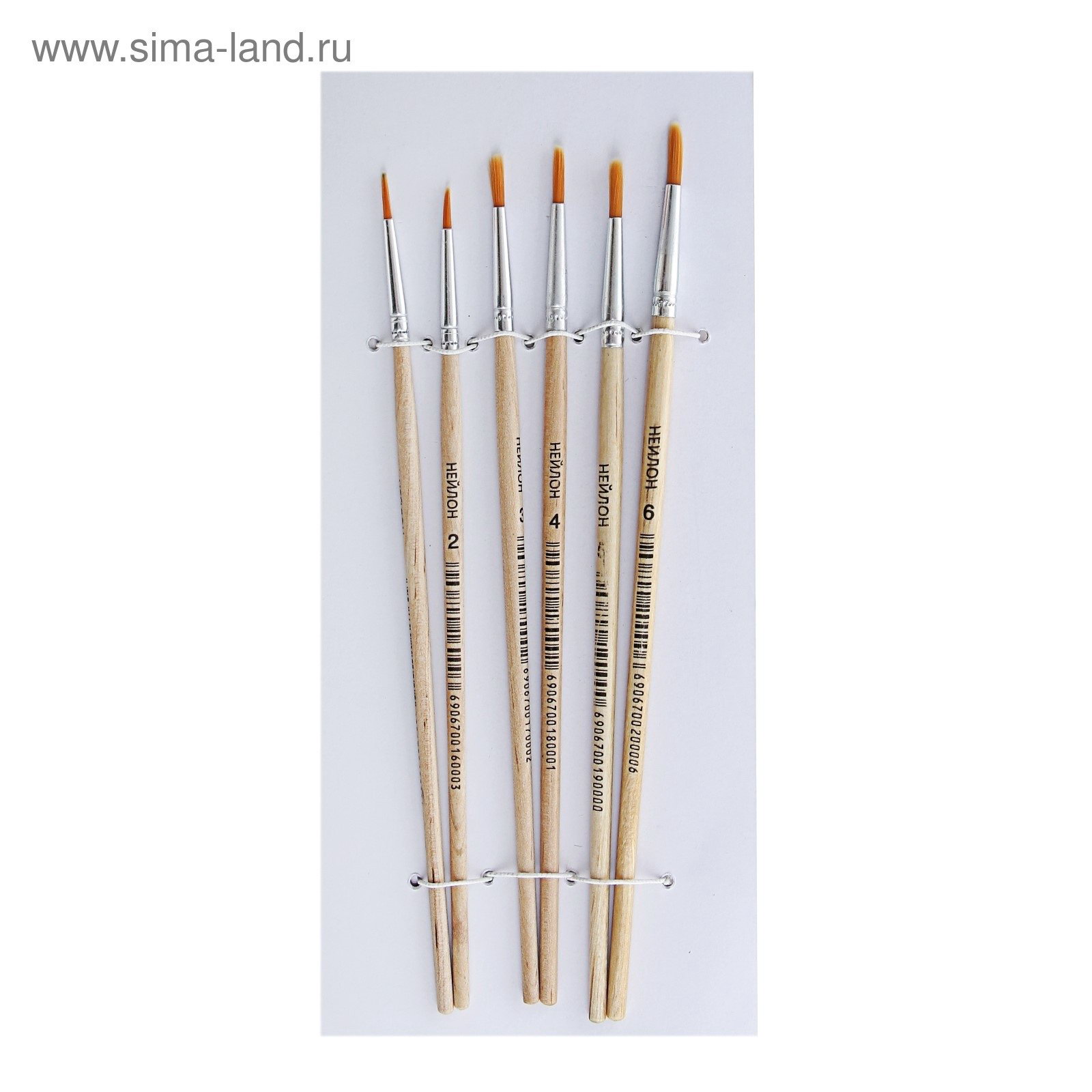 Набор кистей для рисования, нейлон, 6 штук: №1, 2, 3, 4, 5, 6, круглые, деревянная ручка, международный размер, Calligrata, Китай