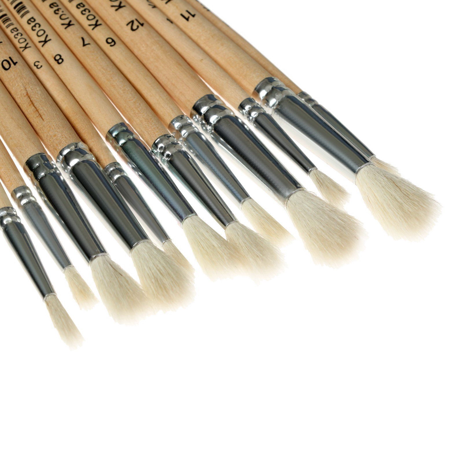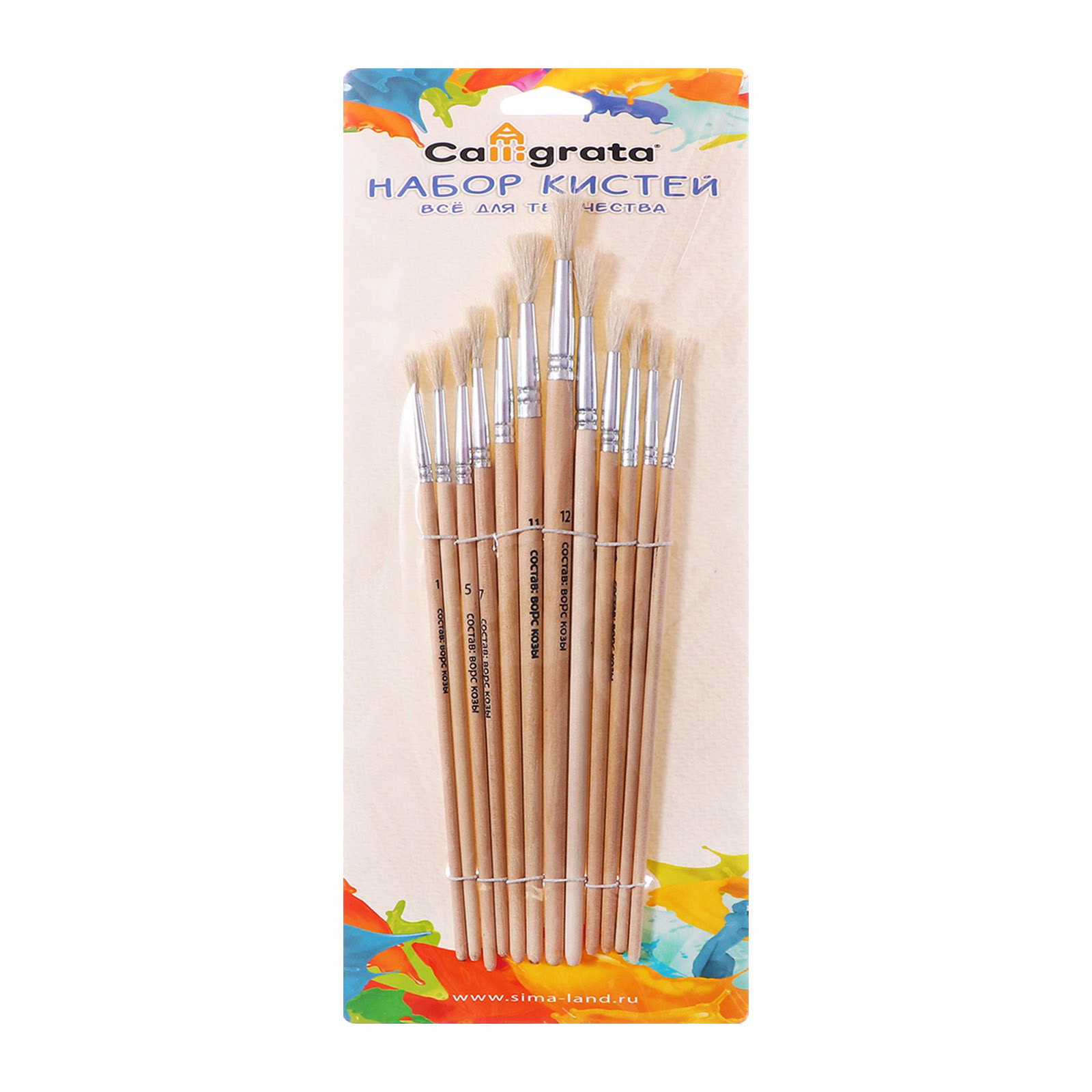 Набор кистей для рисования, коза, 12 штук: № 1, 2, 3, 4, 5, 6, 7, 8, 9, 10, 11, 12, круглые, деревянная ручка, международный размер, Calligrata, Китай