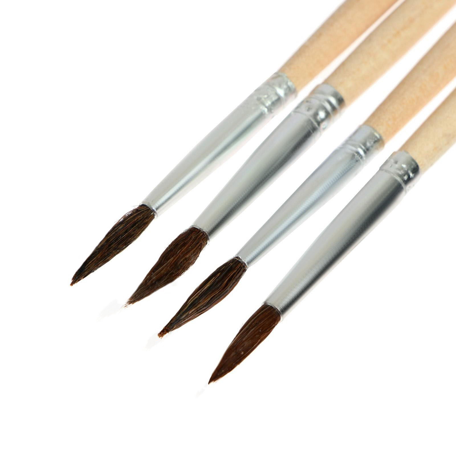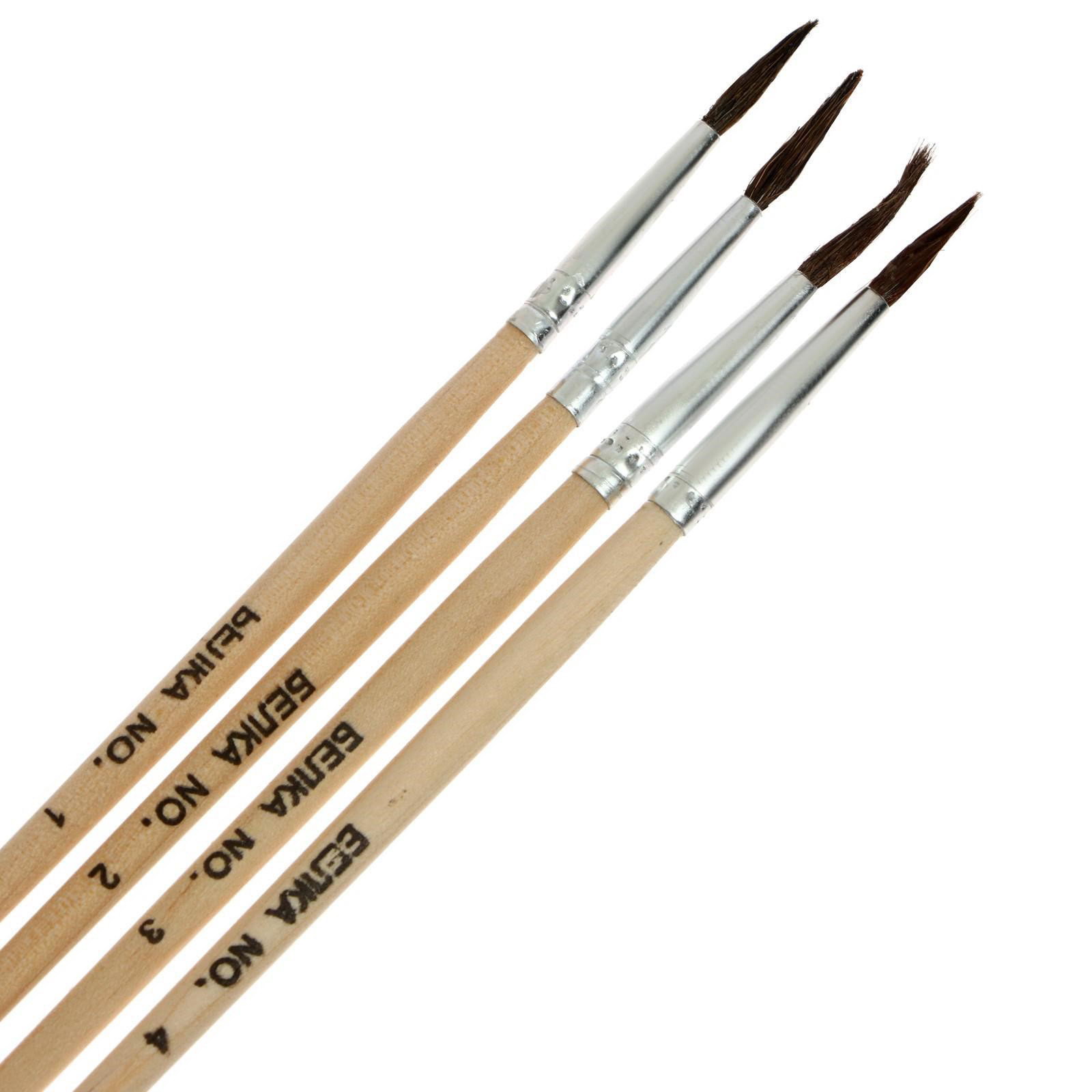 Набор кистей для рисования, белка, 4 штуки: № 1, 2, 3, 4, круглые, деревянная ручка, международный размер, Calligrata, Китай
