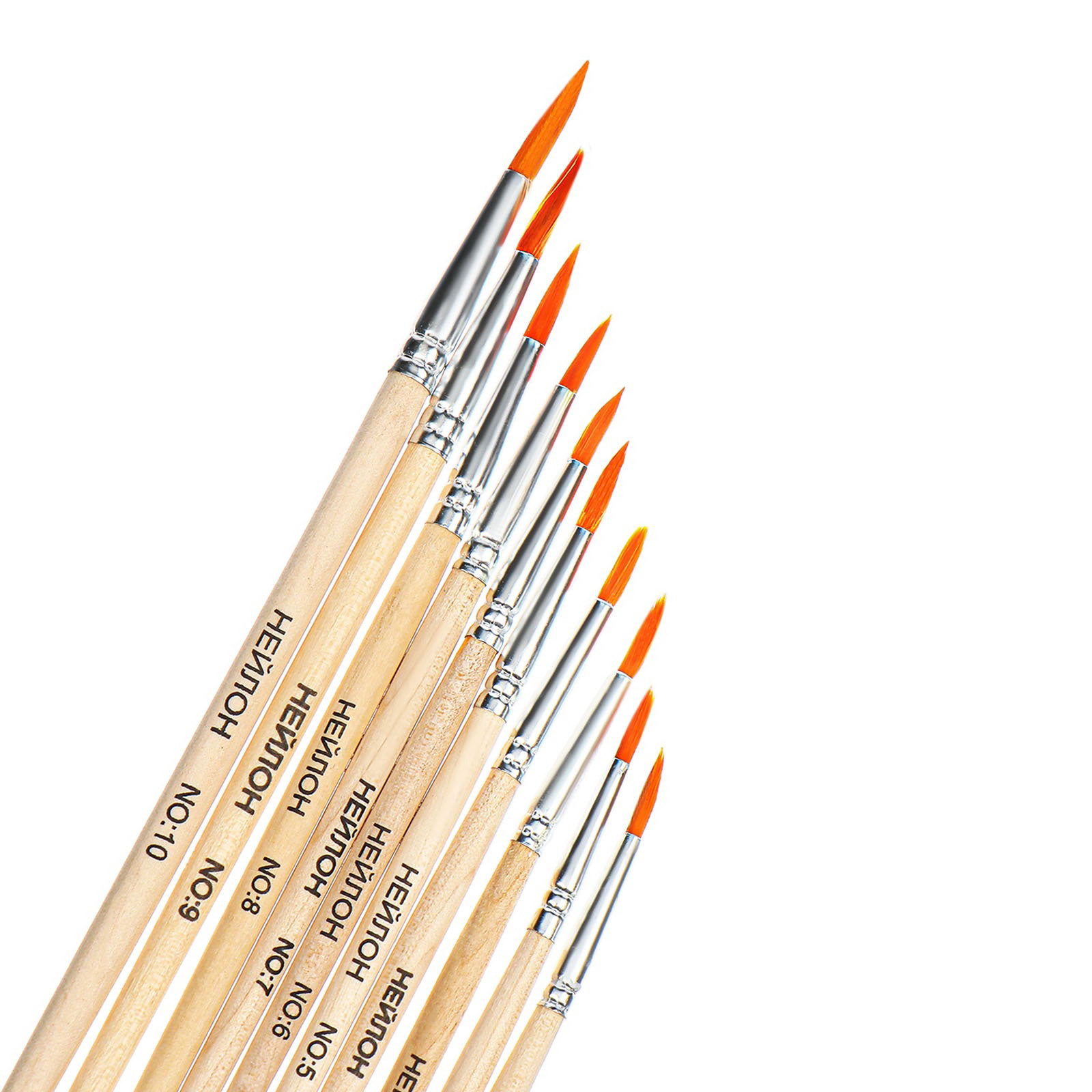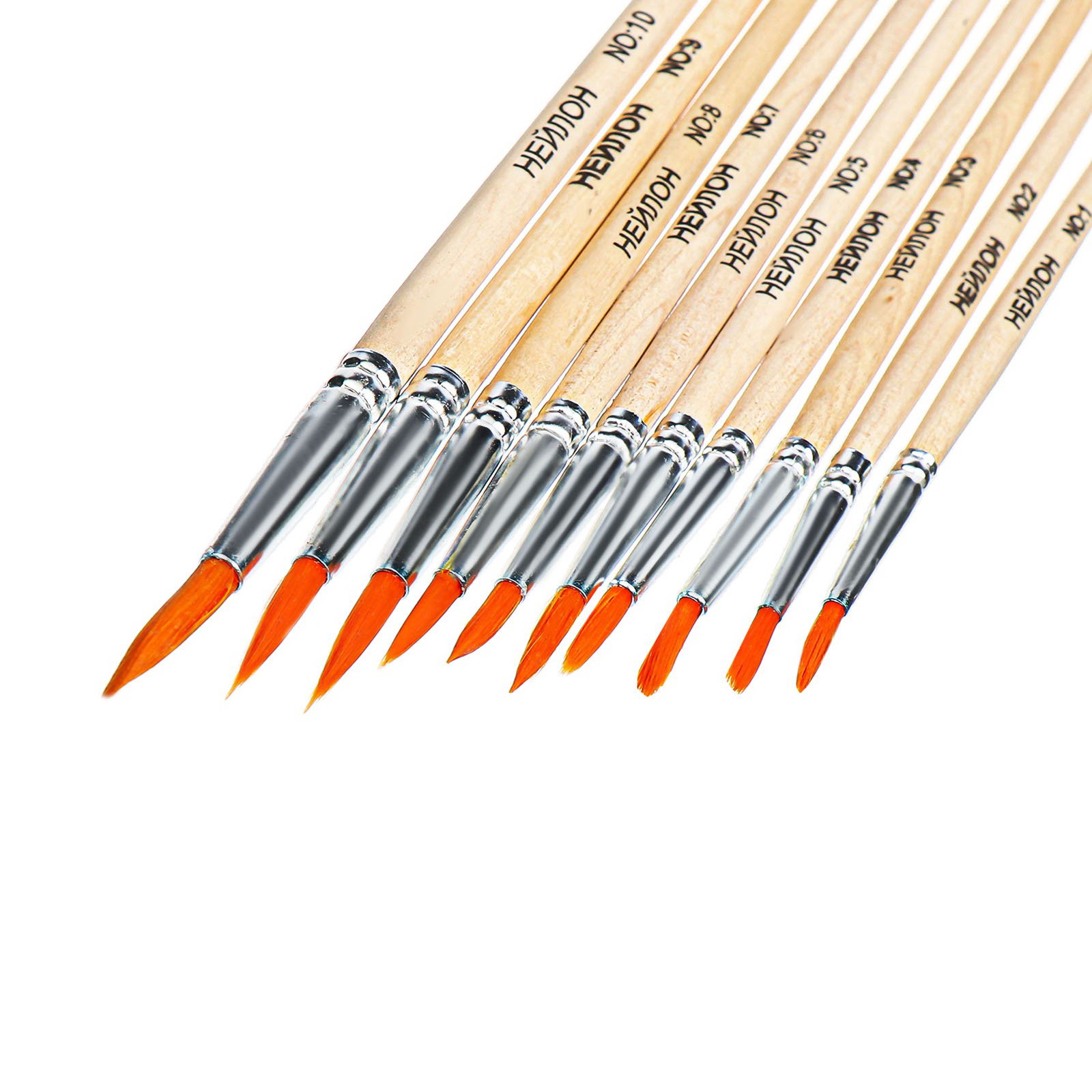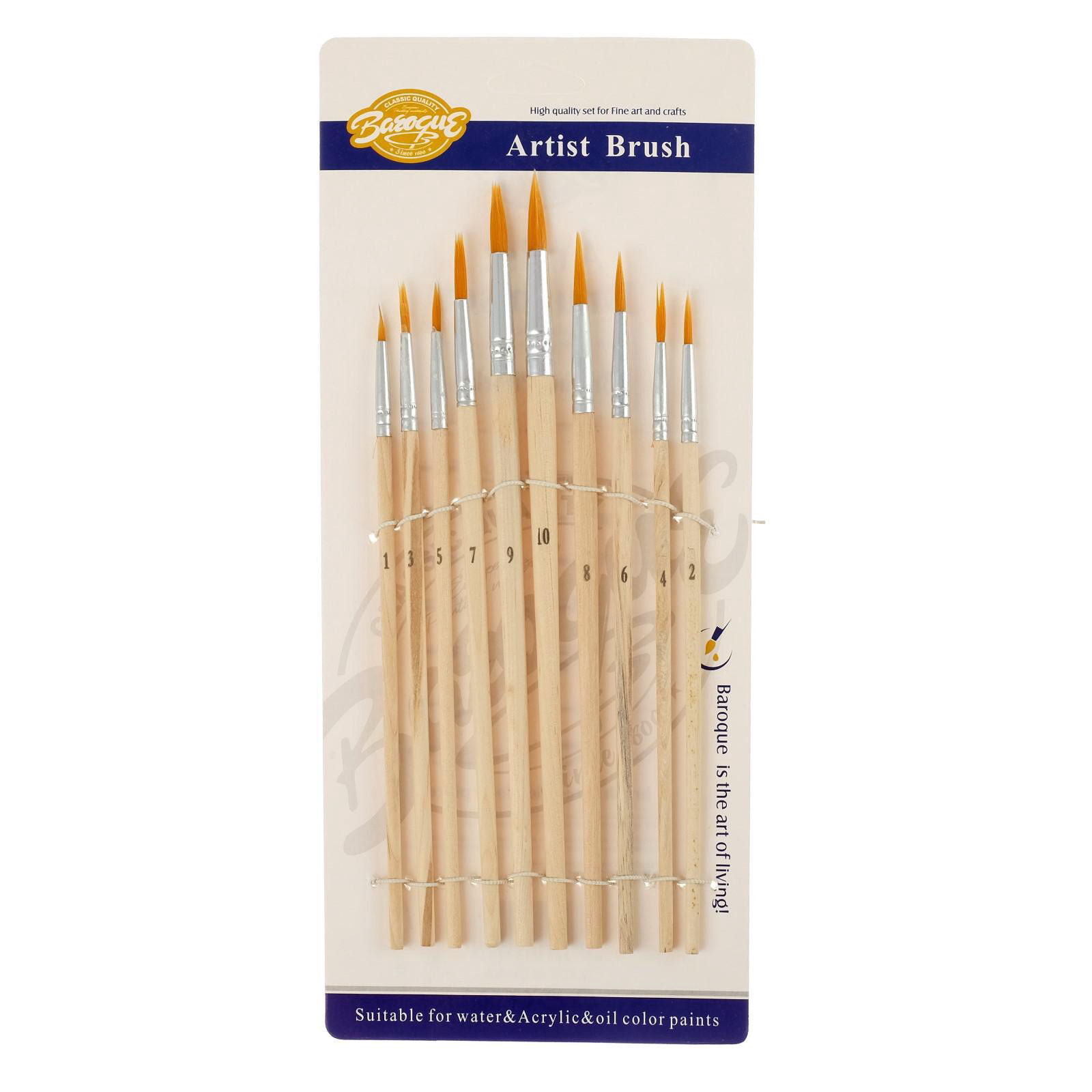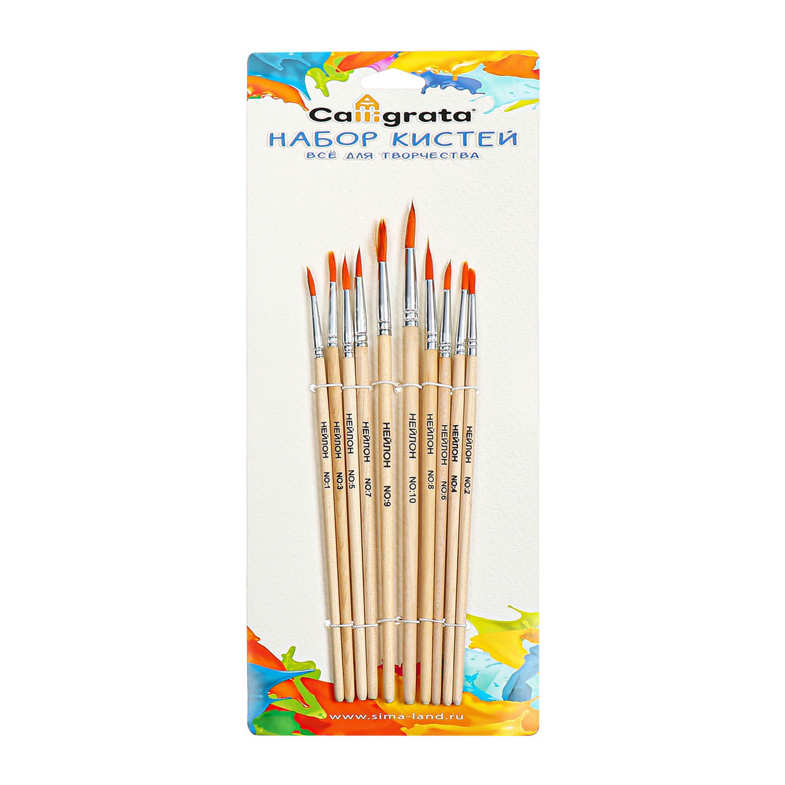 Набор кистей для рисования, синтетика, 10 штук: № 1, 2, 3, 4, 5, 6, 7, 8, 9, 10, круглые, деревянная ручка, международный размер, Calligrata, Китай
