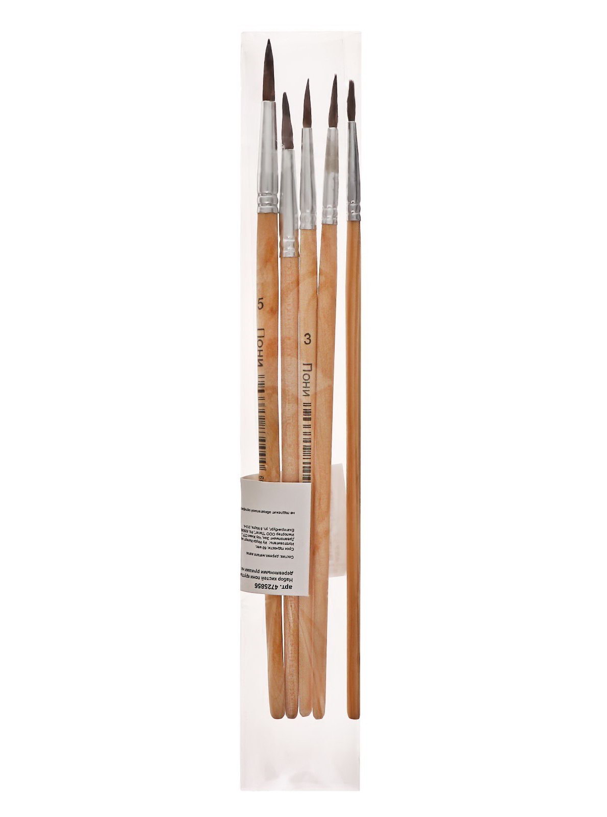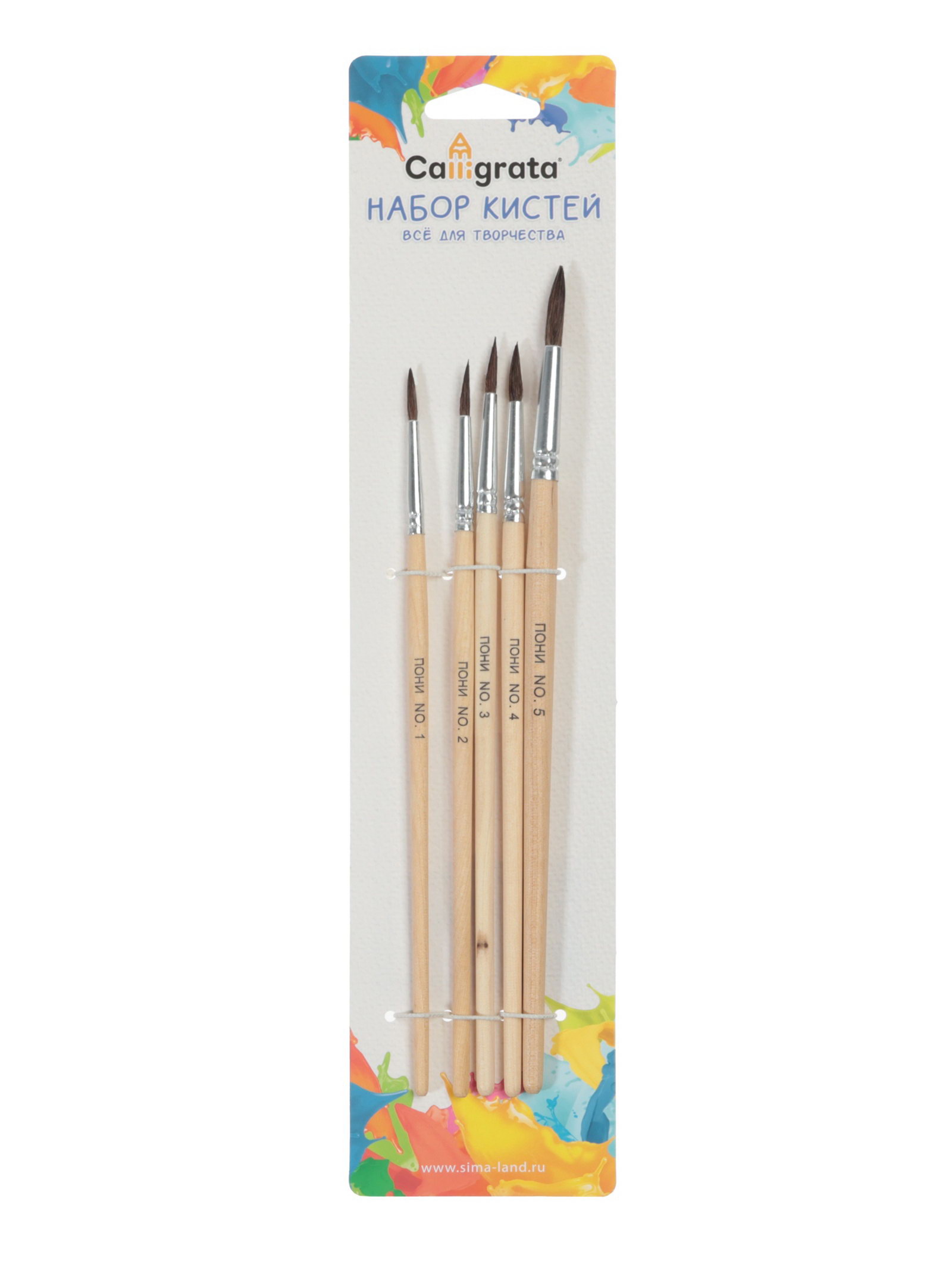 Набор кистей для рисования, пони, 5 штук: № 1, 2, 3, 4, 5, круглые, деревянная ручка, международный размер, Calligrata, Китай