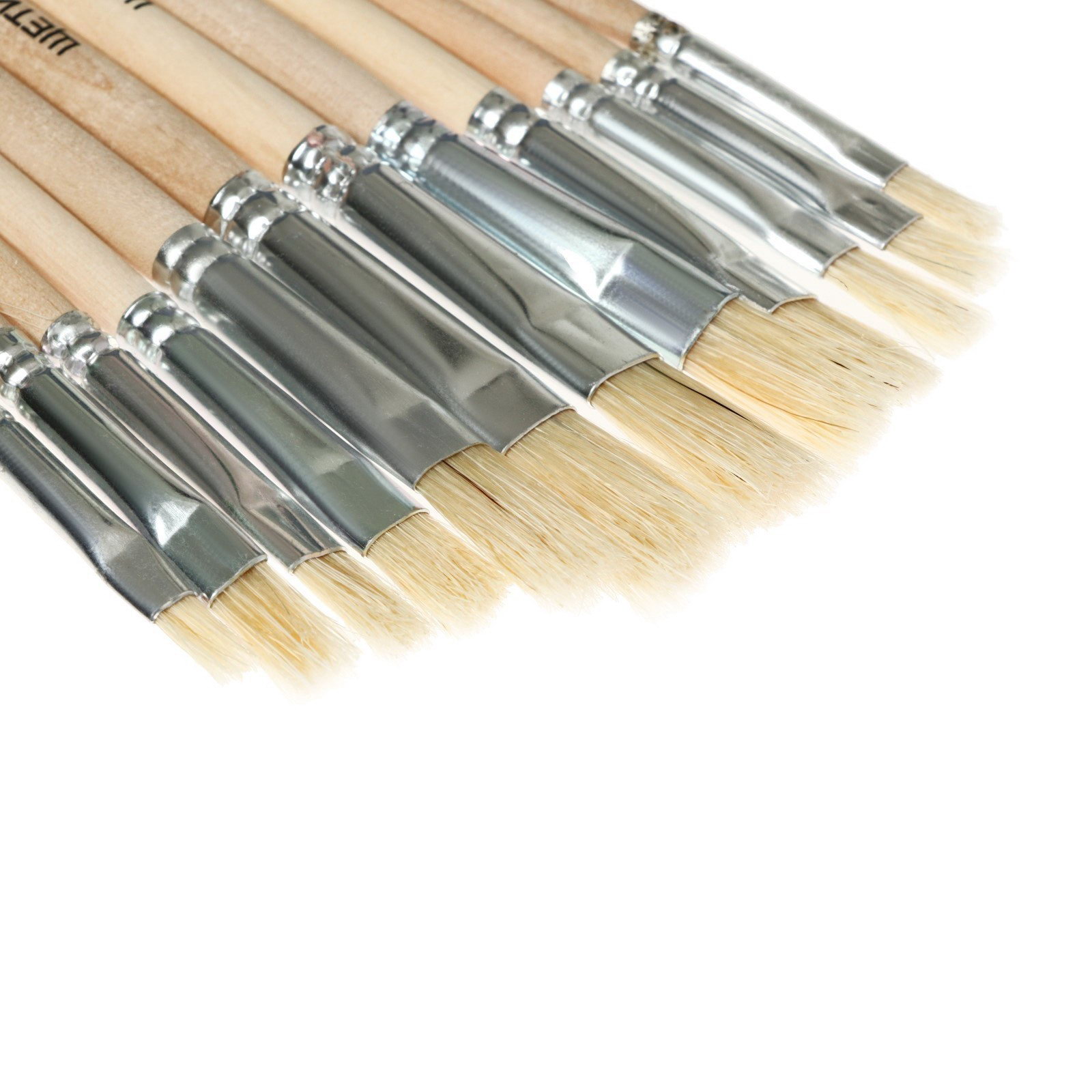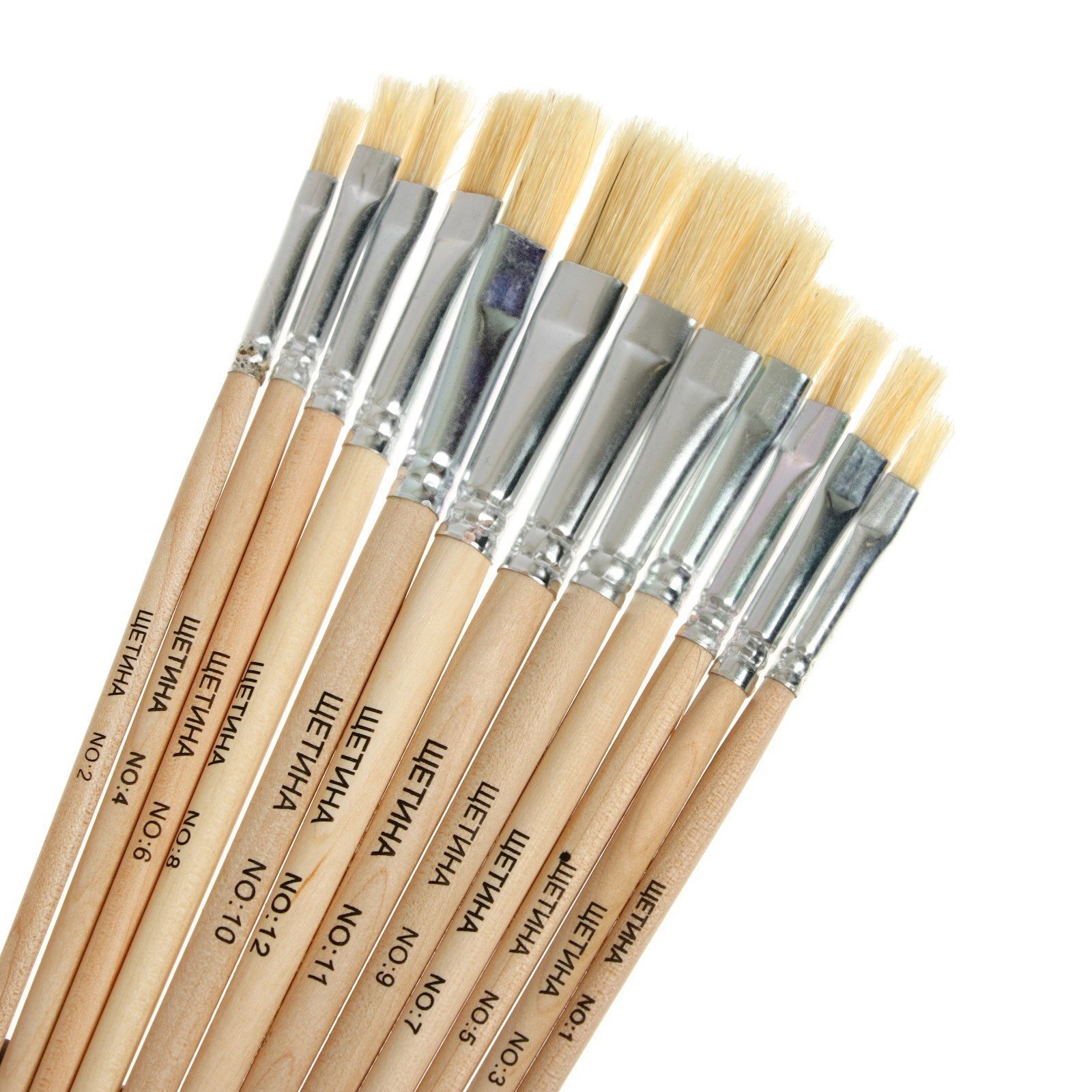 Набор кистей для рисования, щетина, 12 штук: № 1, 2, 3, 4, 5, 6, 7, 8, 9, 10, 11, 12, плоские, деревянная ручка, международный размер, Calligrata, Китай