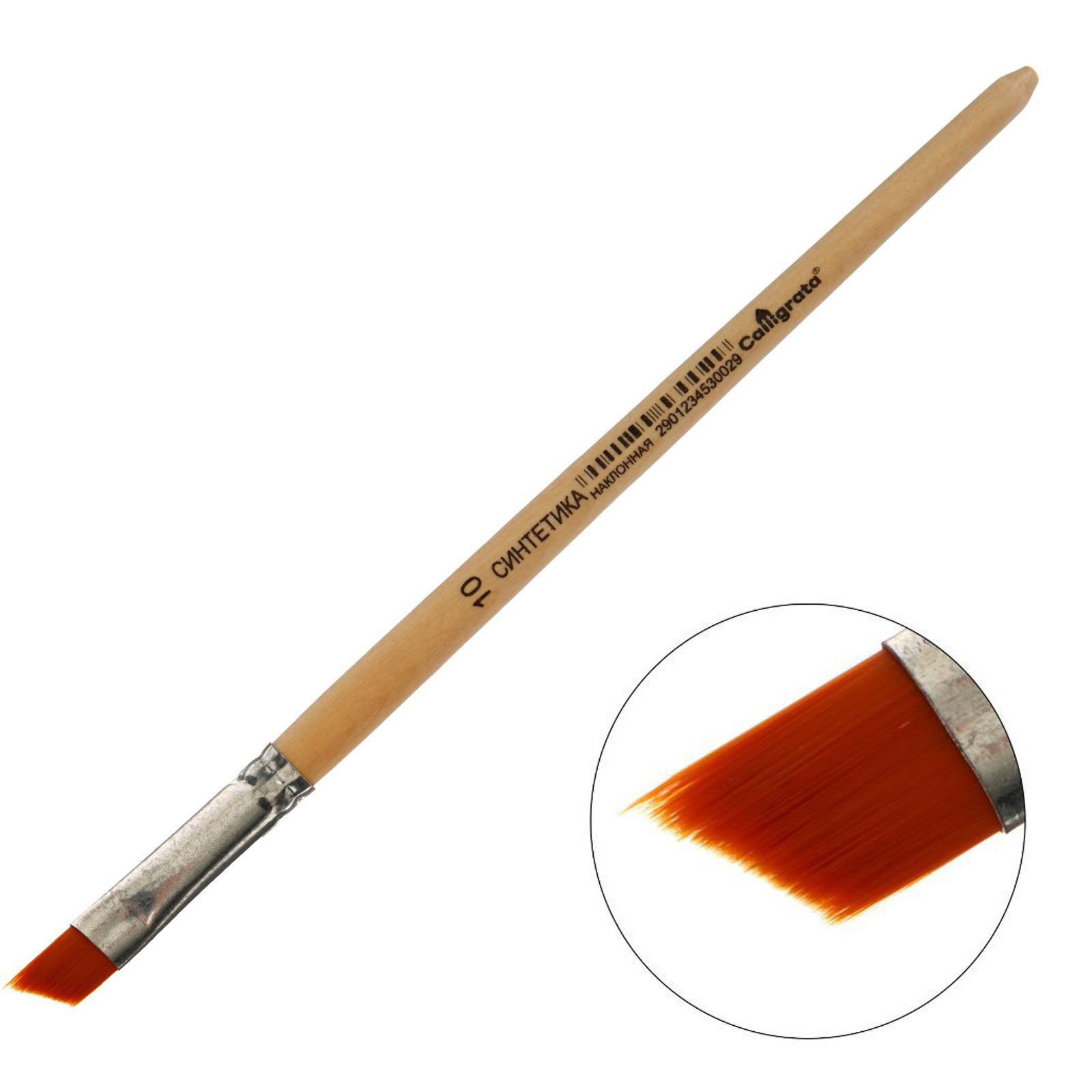 Кисть для рисования, синтетика, № 10, плоская, скошенная, деревянная ручка, Calligrata, Россия