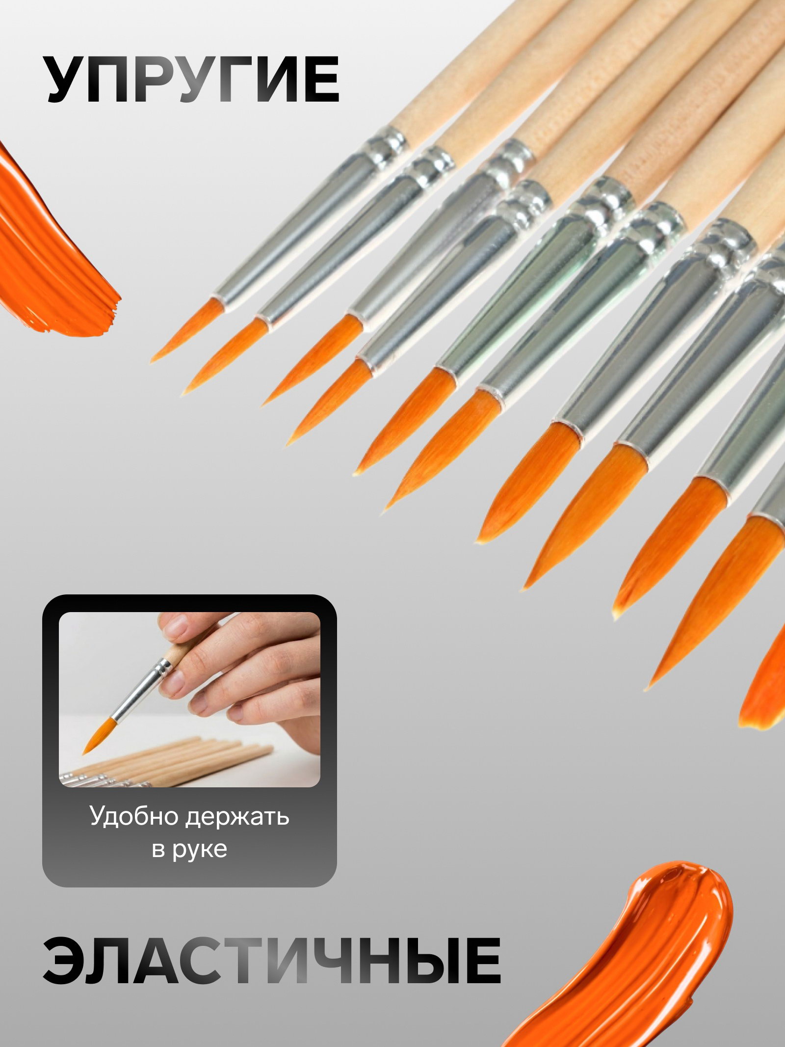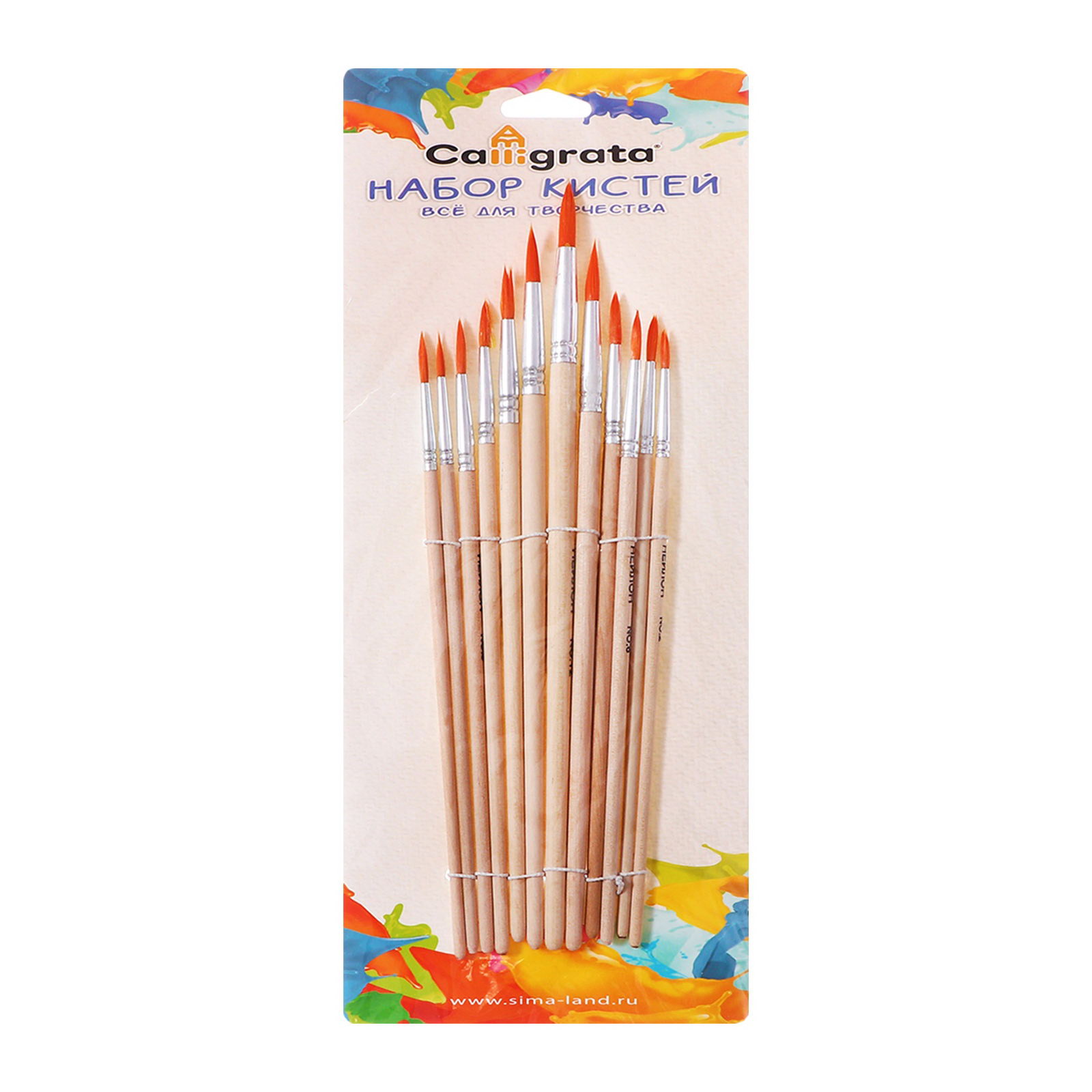 Набор кистей для рисования, нейлон, 12 штук: № 1, 2, 3, 4, 5, 6, 7, 8, 9, 10, 11, 12, круглые, деревянная ручка, международный размер, Calligrata, Китай
