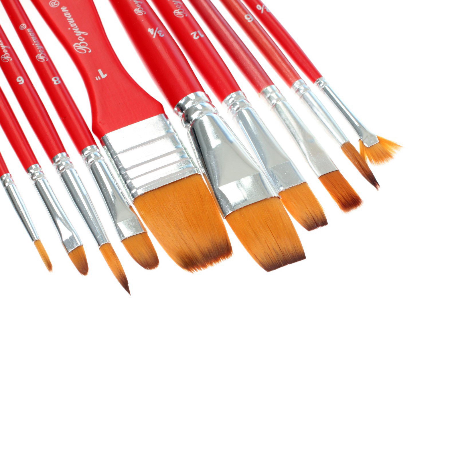 Набор кистей художественных, синтетика, 10 штук, круглые, плоские, в пенале на молнии, международный размер, Китай