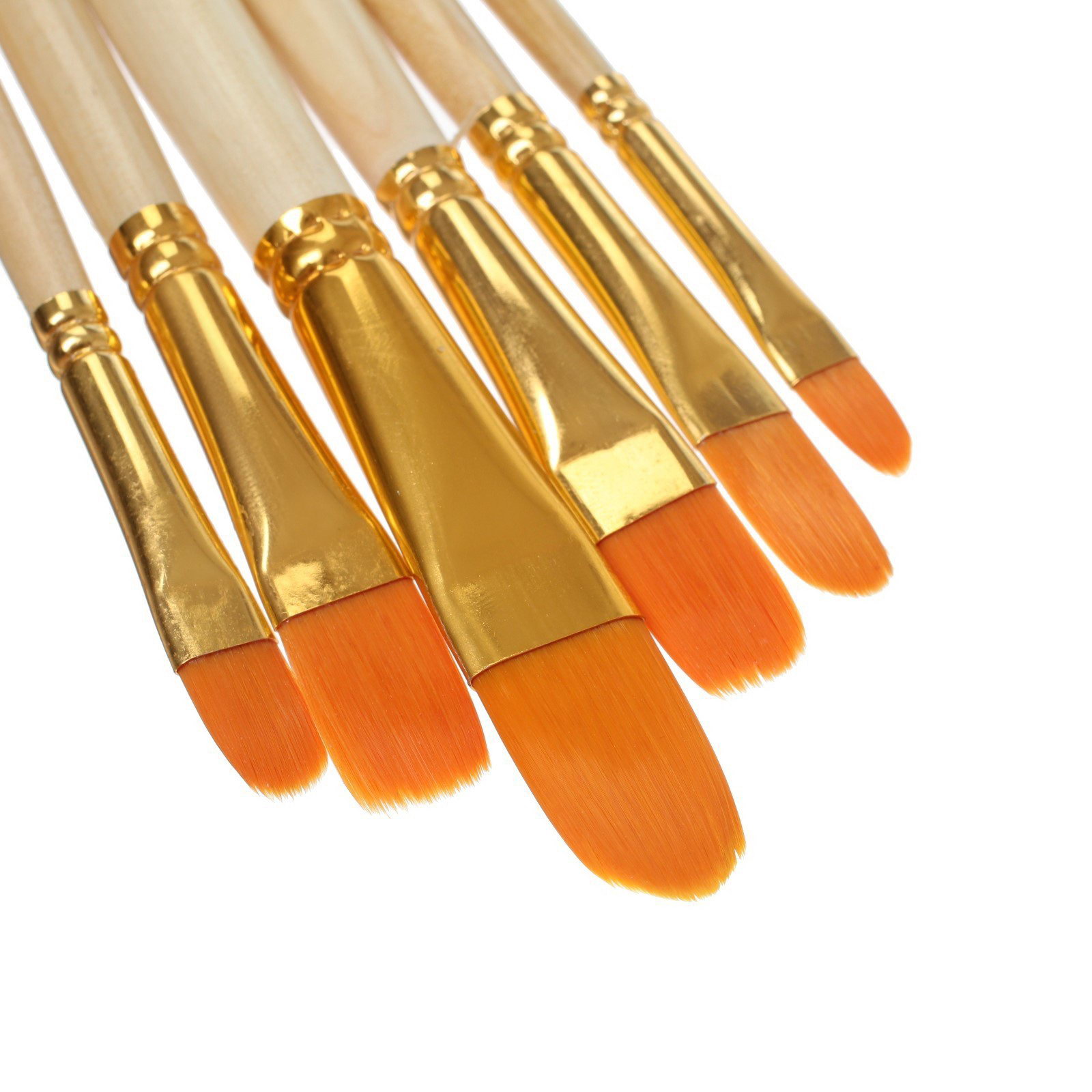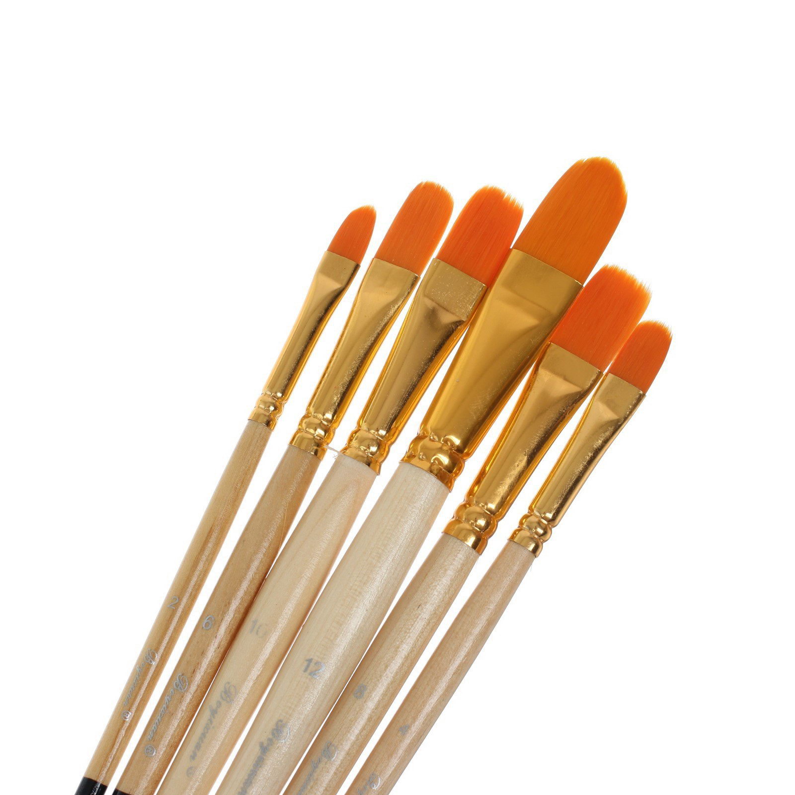 Набор кистей для рисования, синтетика, 6 штук: №2, 4, 6, 8, 10, 12 плоские, закругленные, деревянная ручка, международный размер, Китай