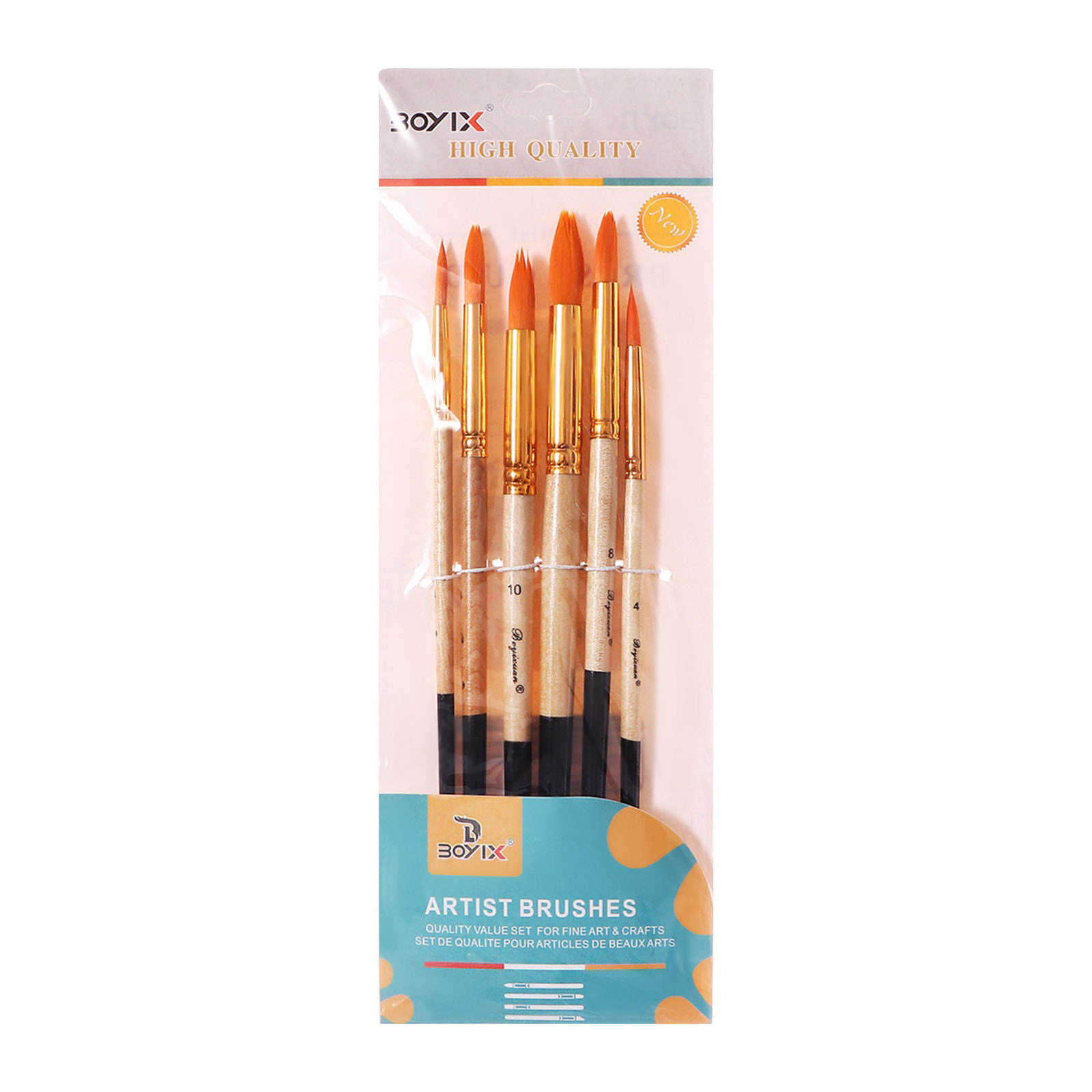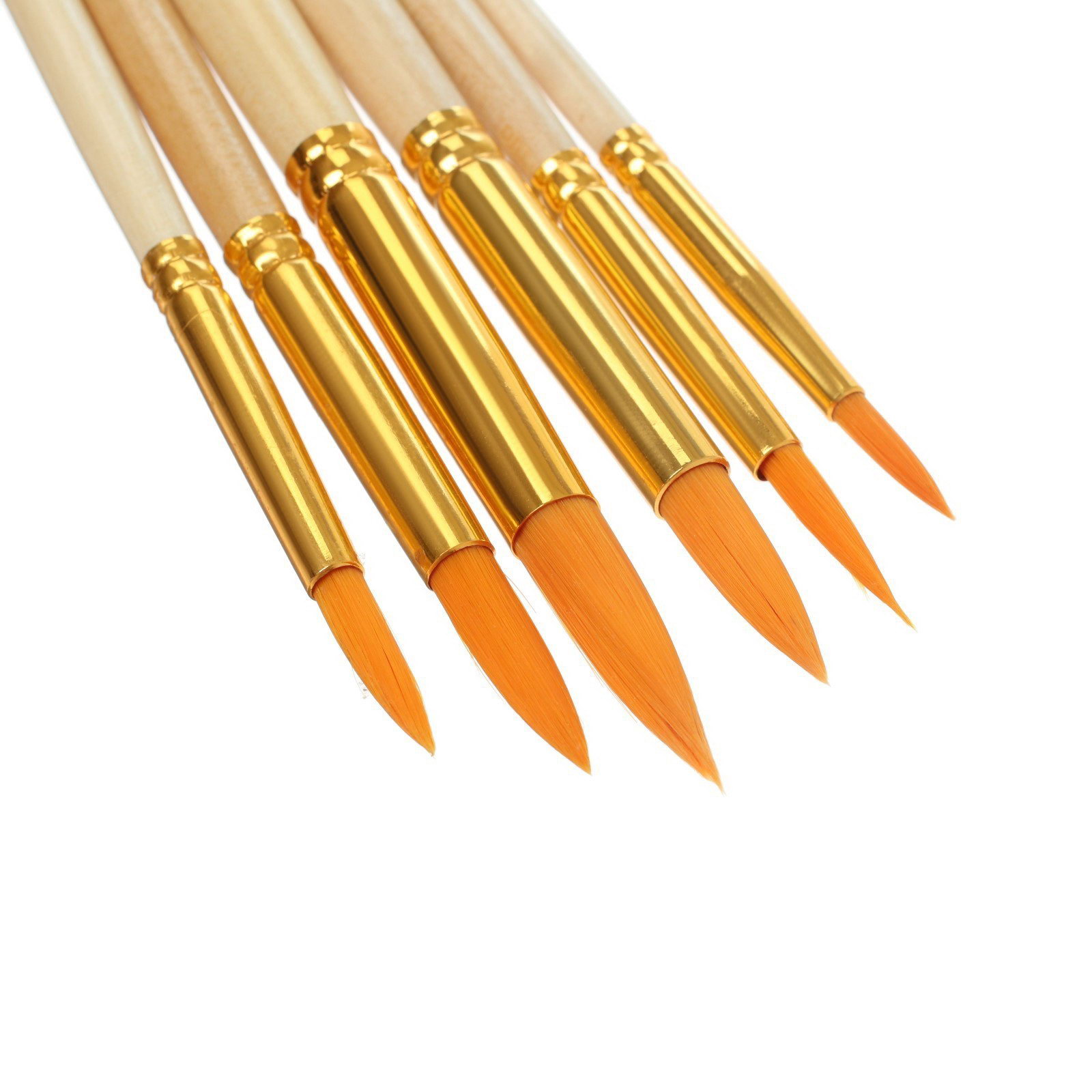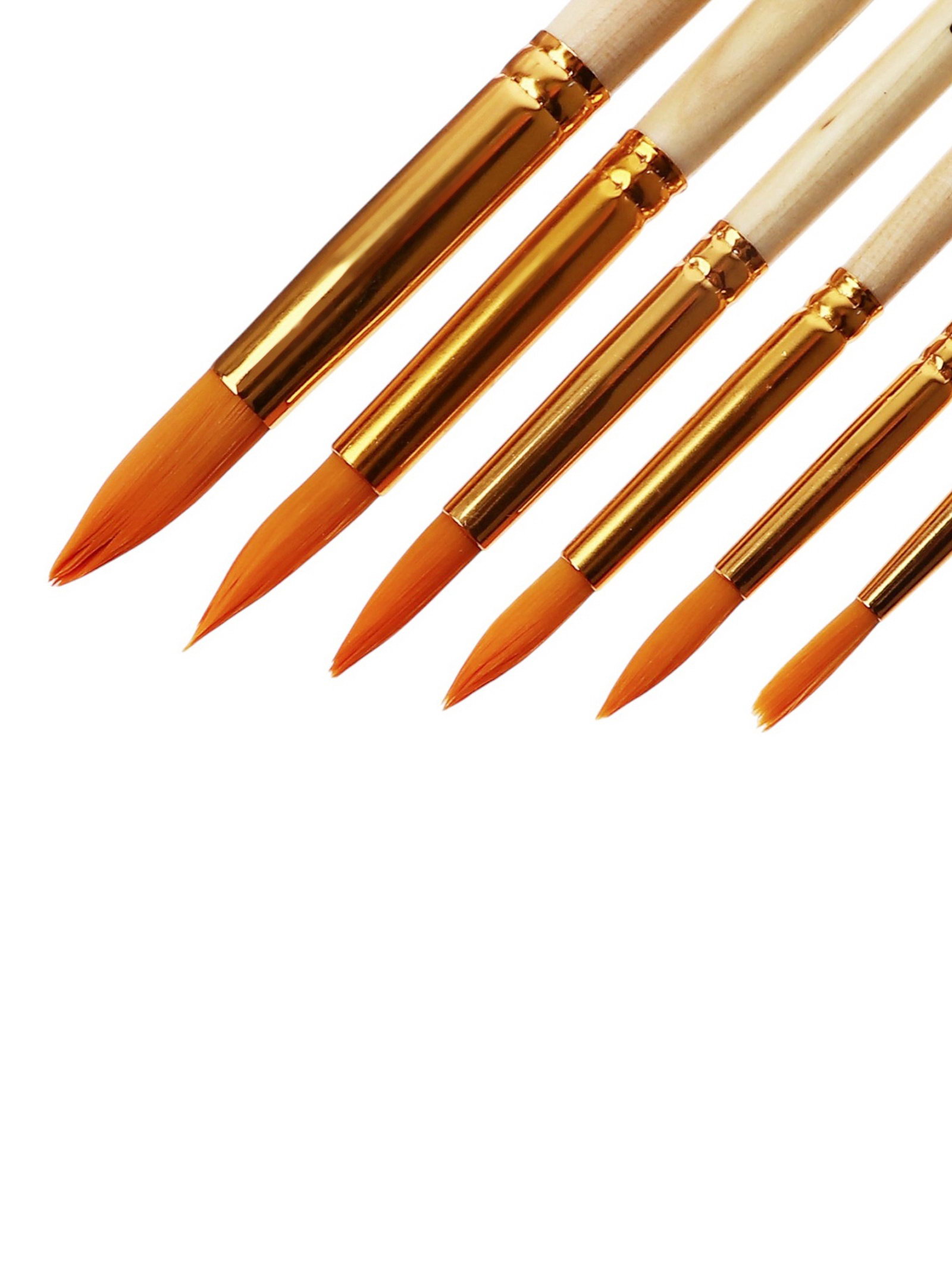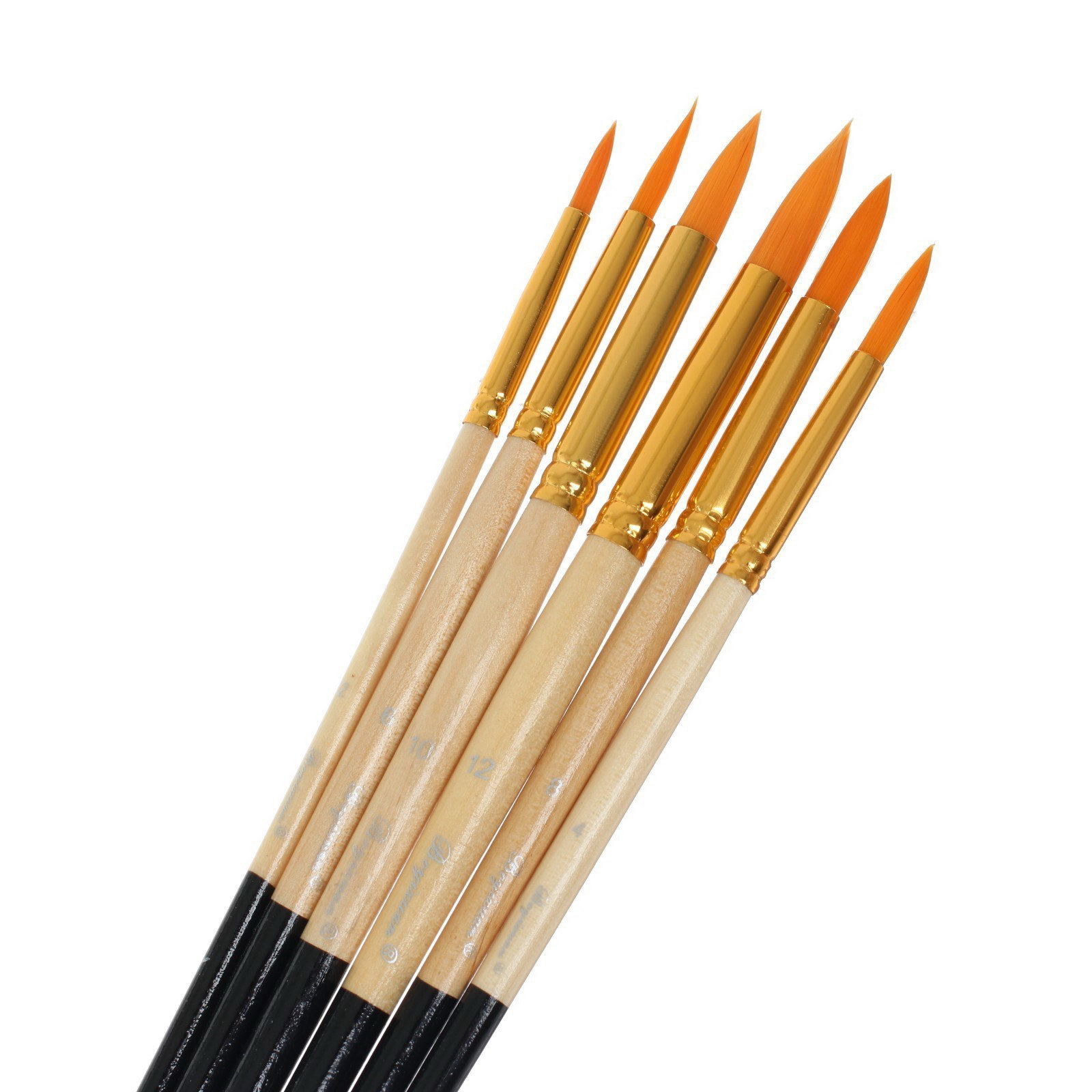 Набор кистей для рисования, синтетика, 6 штук: № 2, 4, 6, 8, 10, 12, круглые, деревянная ручка, международный размер, Китай