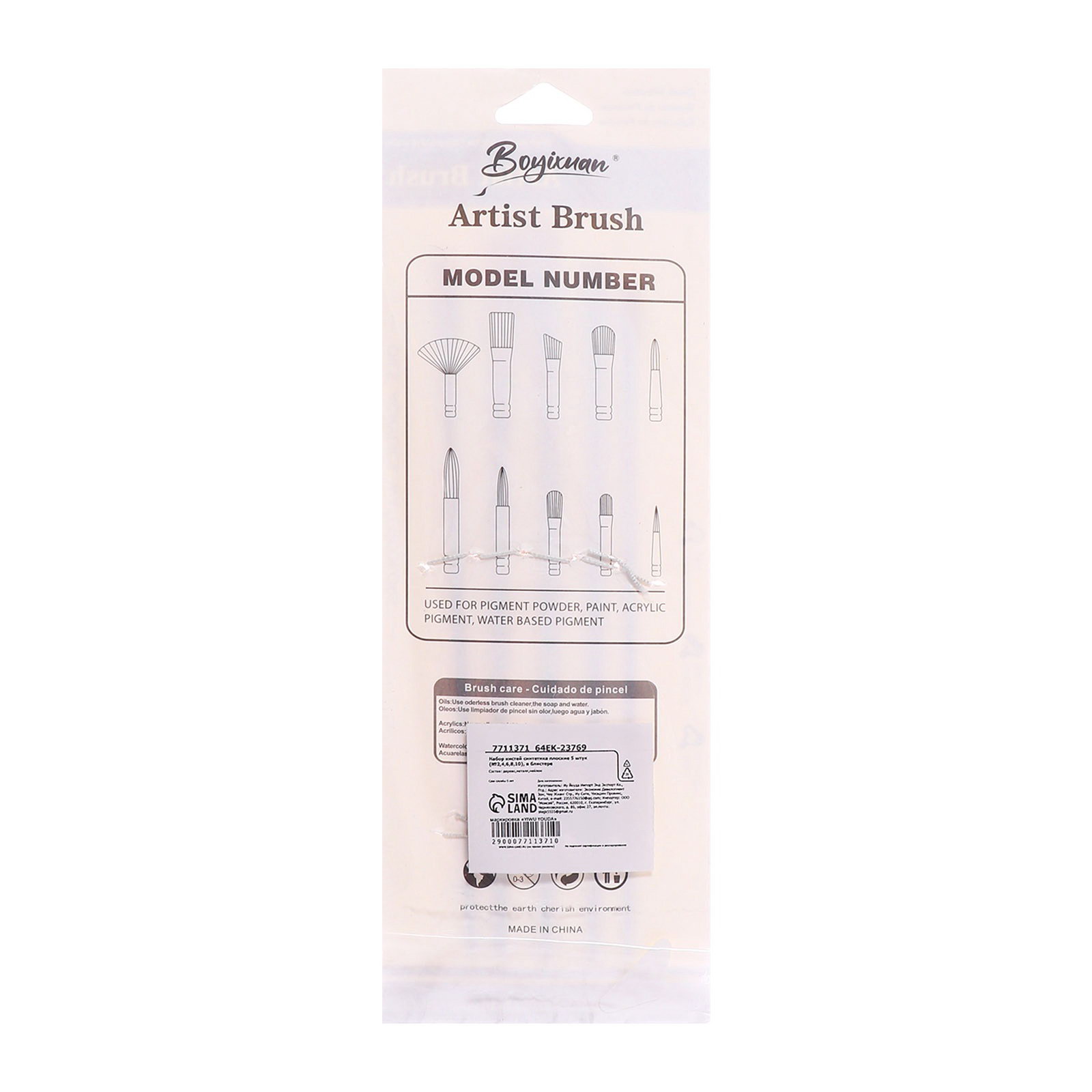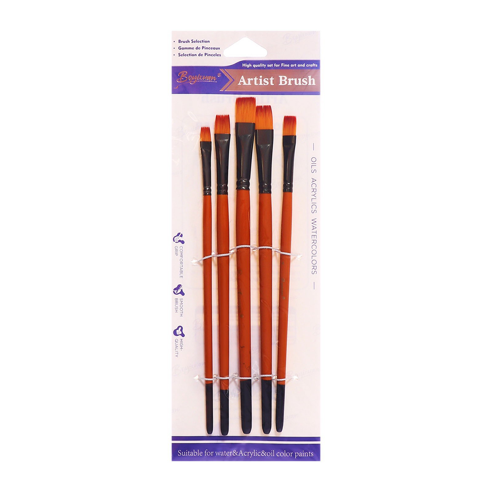 Набор кистей для рисования, синтетика, 5 штук: № 2, 4, 6, 8, 10, плоские, в блистере, международный размер, Китай
