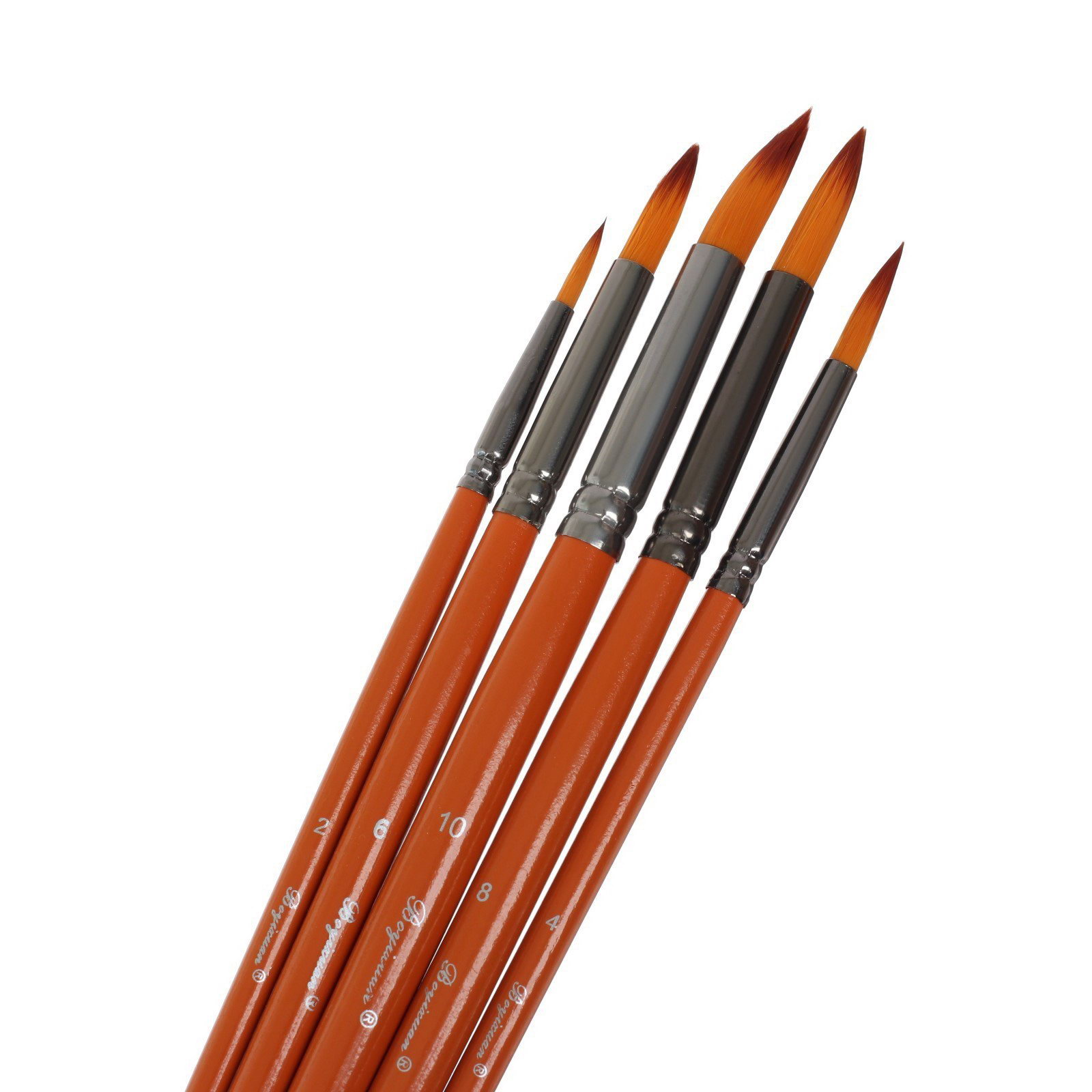 Набор кистей для рисования, синтетика, 5 штук: № 2, 4, 6, 8, 10, круглые, деревянная ручка, международный размер, Китай