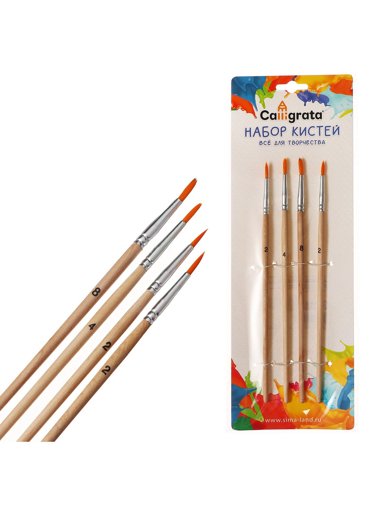 Набор кистей для рисования, синтетика, 4 штуки: № 2, 2, 4, 8, круглые, деревянная ручка, международный размер, 31x10 см., Calligrata, Китай