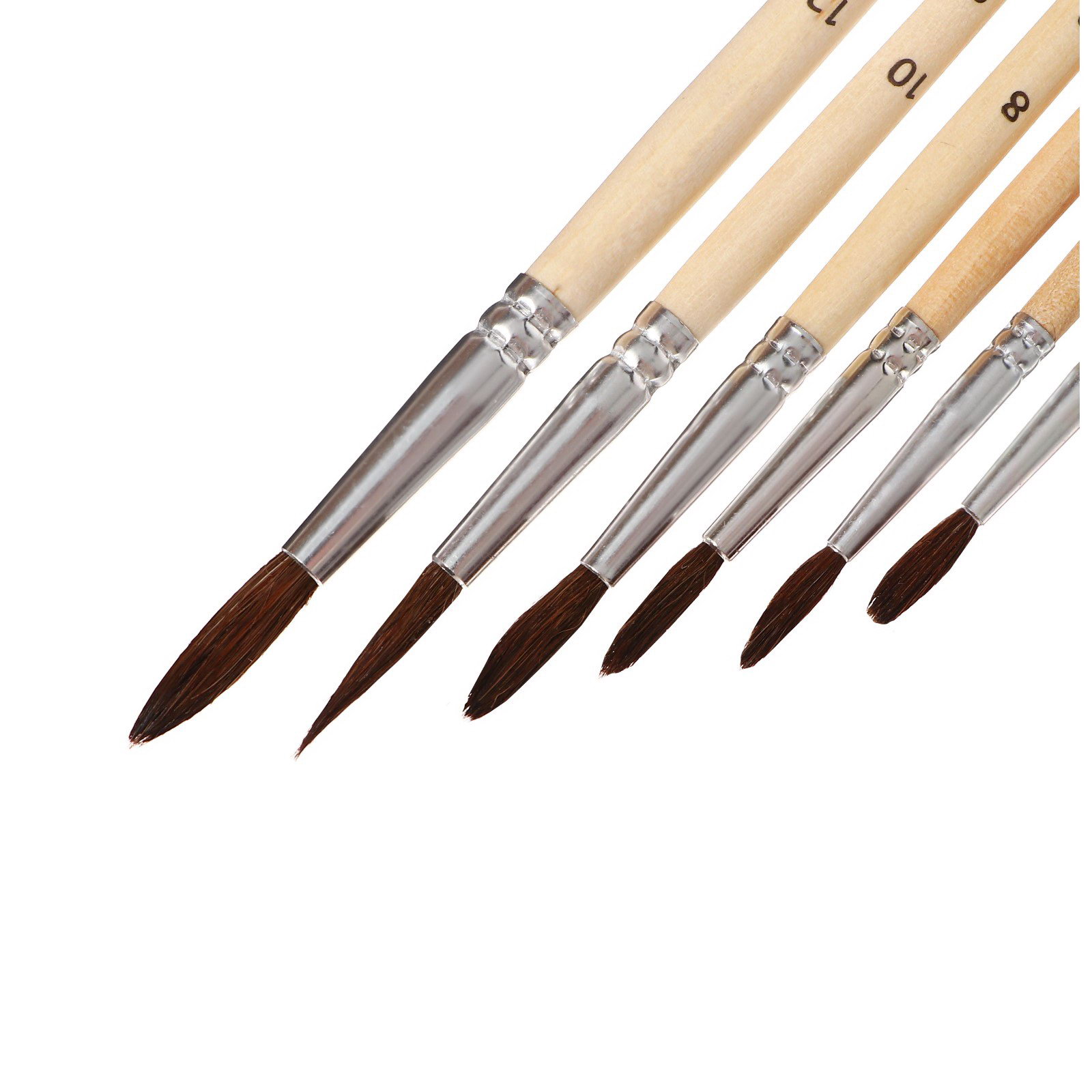 Набор кистей для рисования, белка, 6 штук: № 2, 4, 6, 8, 10, 12, круглые, деревянная ручка, международный размер, Calligrata, Китай
