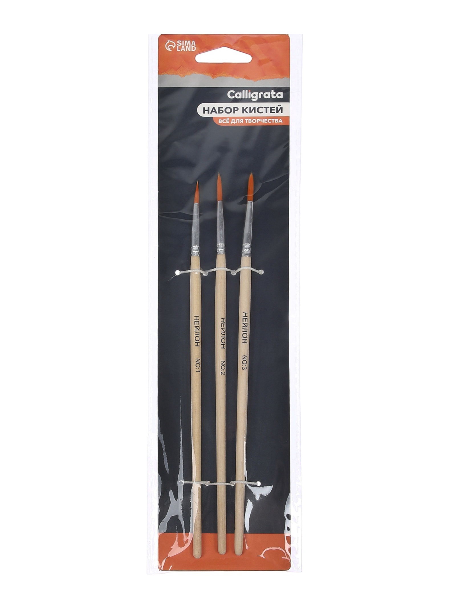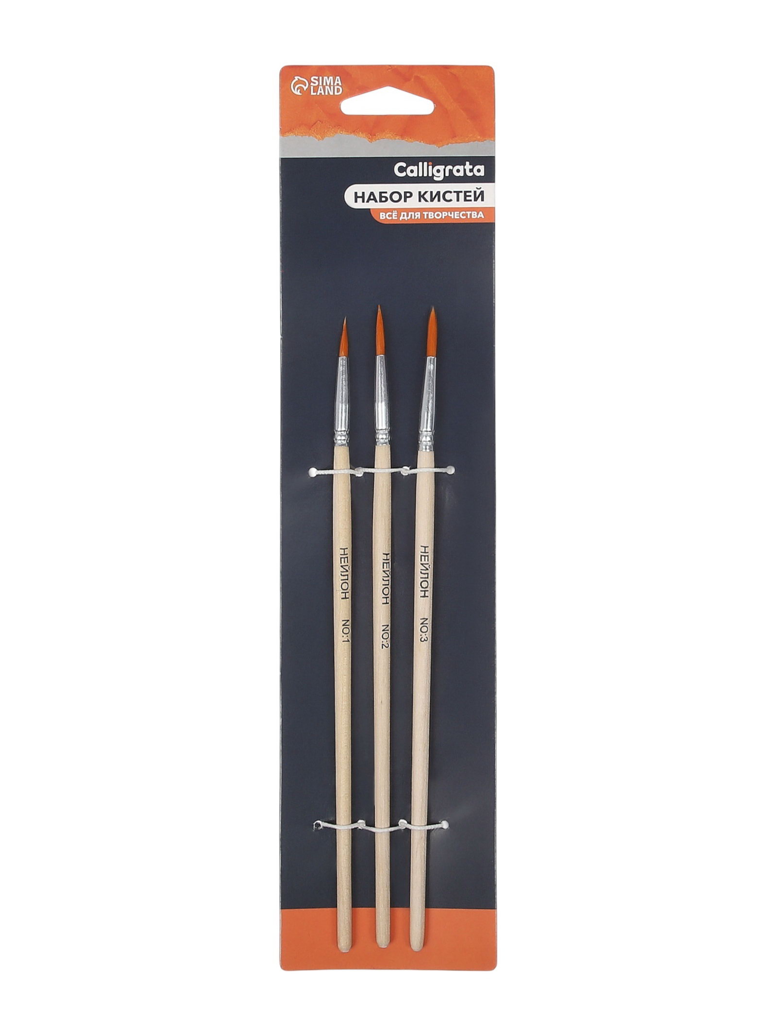 Набор кистей для рисования, синтетика, 3 штуки: № 1, 2, 3, круглые, деревянная ручка, международный размер, Calligrata, Китай