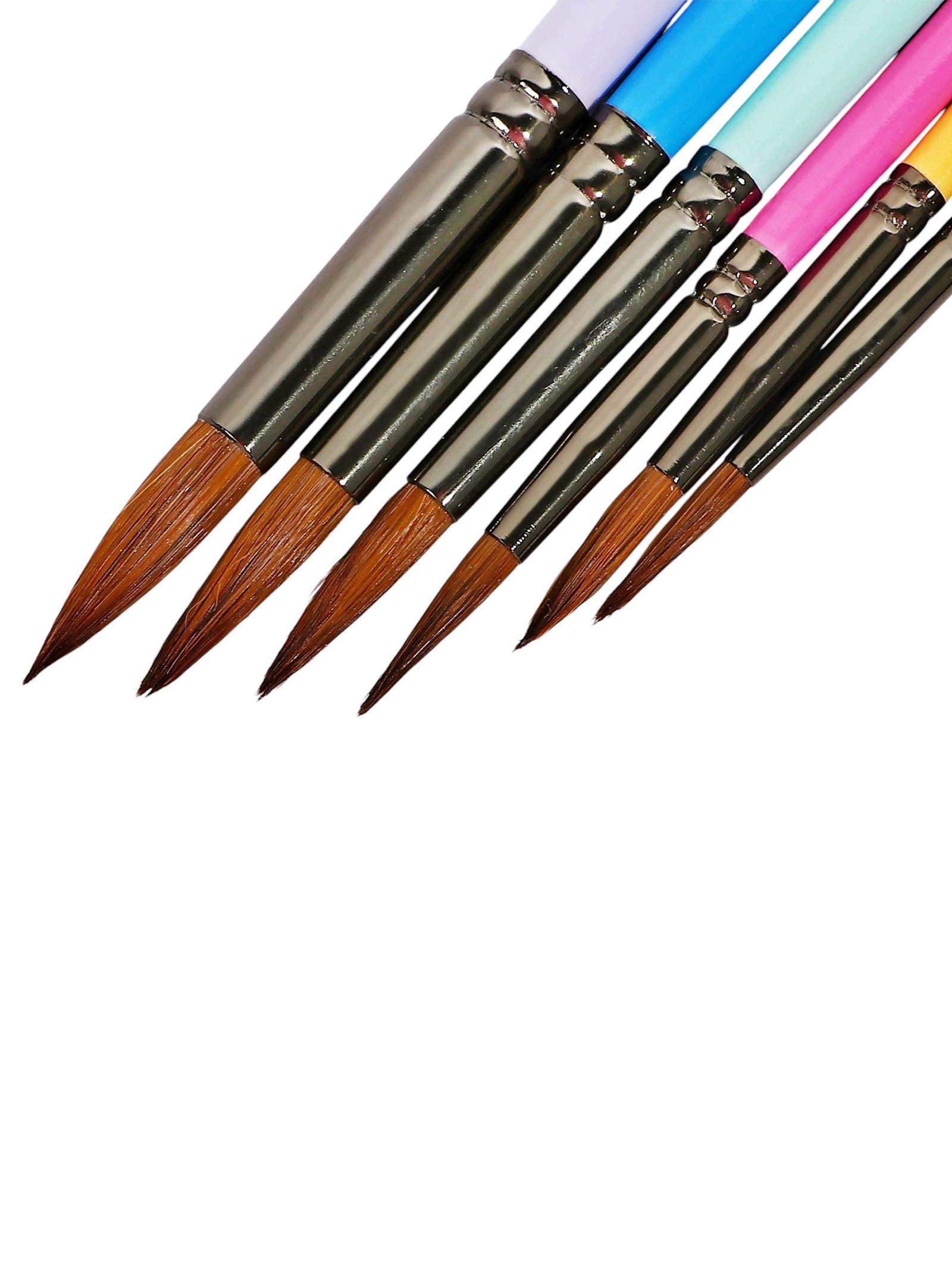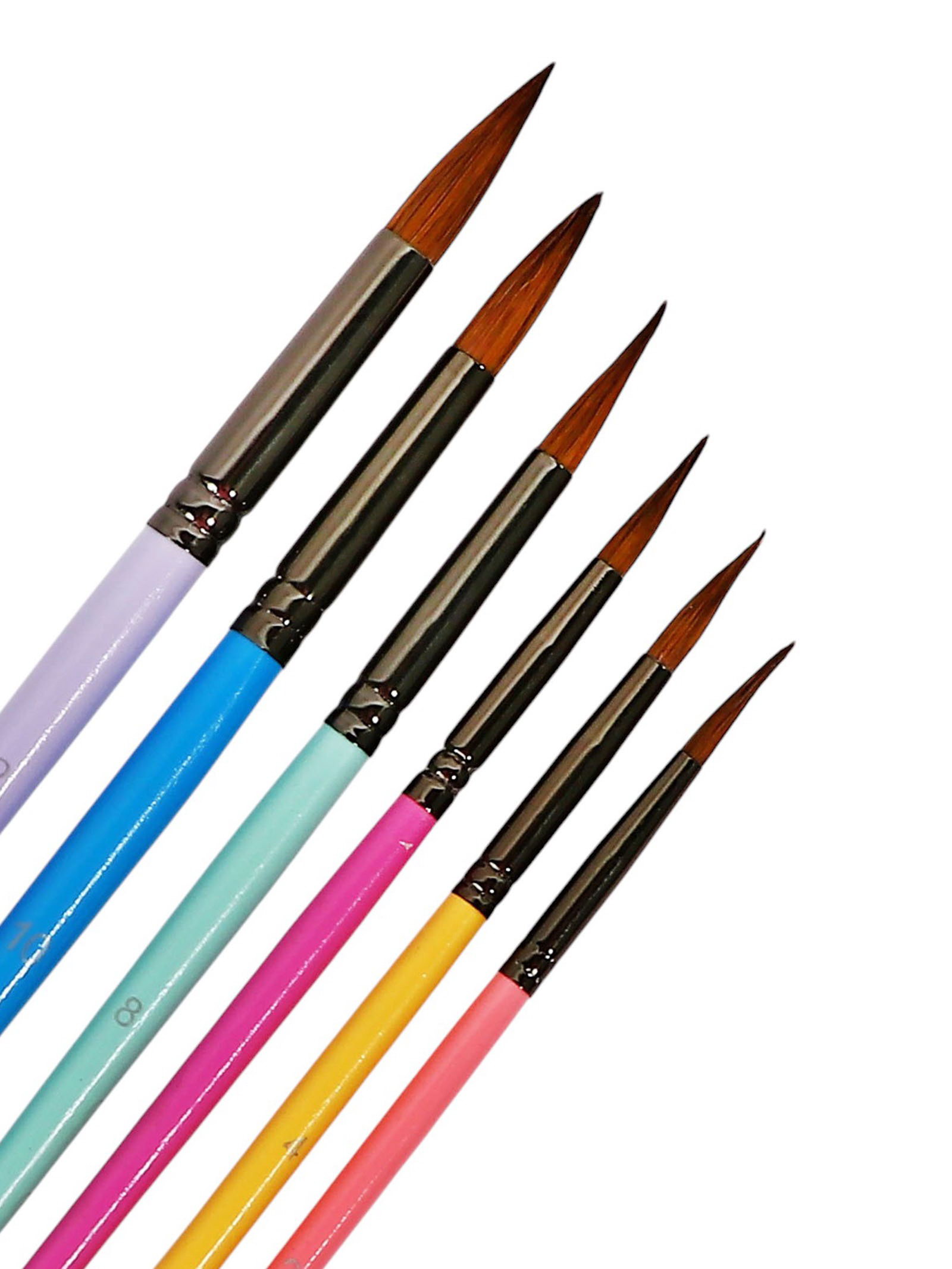 Набор кистей для рисования, пони, 6 штук: № 2, 4, 6, 8, 10, 12, круглые, с цветными ручками, пастель, международный размер, 11x26x1 см., Китай