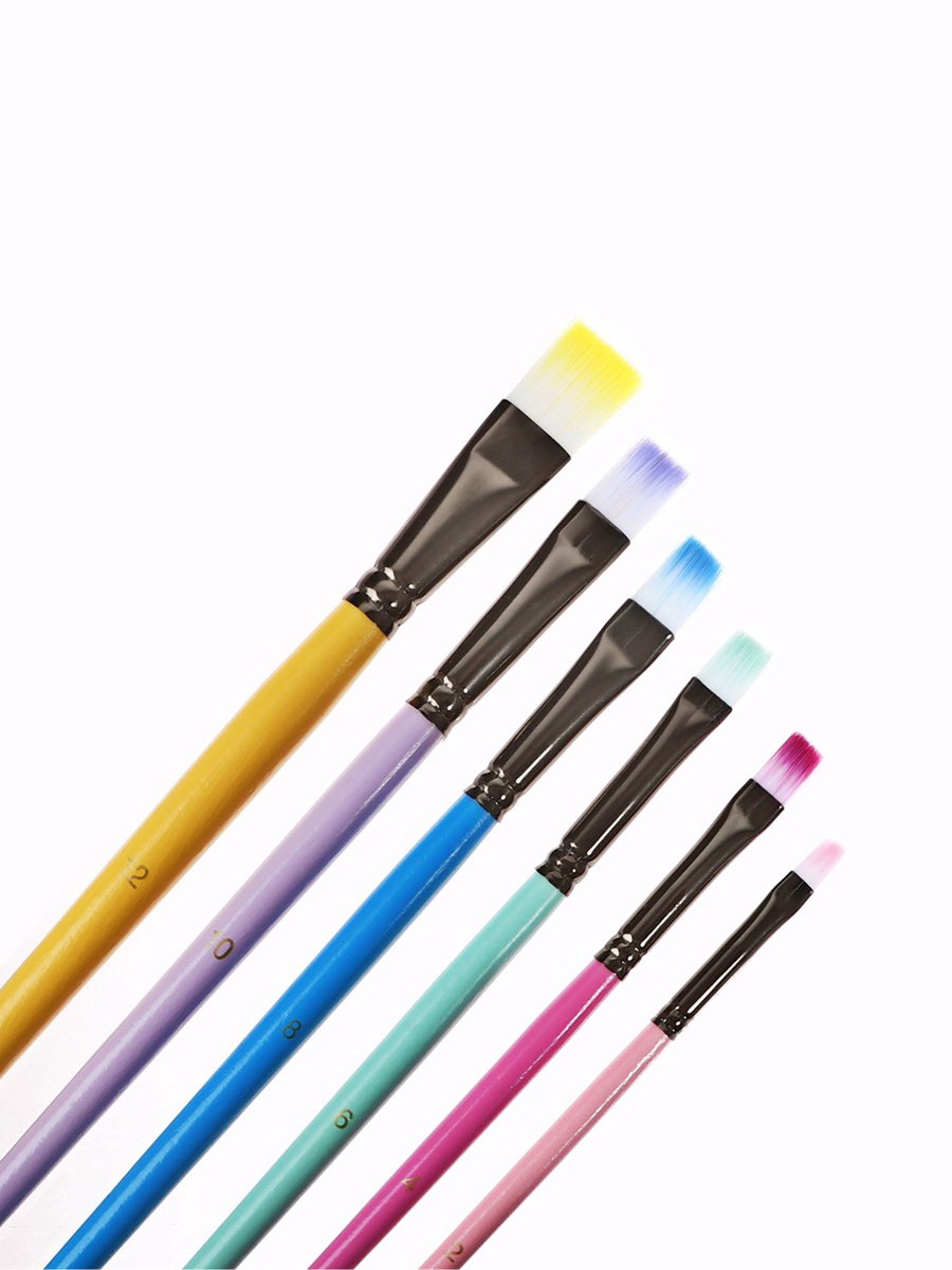 Номер: 2, 4, 6, 8, 10, 12 Цвет ручки: Голубой, Жёлтый, Розовый Размер упаковки: 11 x 1 x 26 см. Материал ворса кисти: Синтетика Материал ручки: Дерево Набор: Да Европодвес: Да В наборе, шт.: 6 Размер ручки кисти: Длинная Форма кисти: Плоская Вид упаковки: Пакет Вид кисти: Школьная Штрихкод на единице товара: Да tnved: 9603301000 Набор из 6 плоских кистей с цветными ручками это идеальный выбор для художников и творческих людей. Набор включает кисти разных размеров, что делает его универсальным инструментом для различных техник рисования.