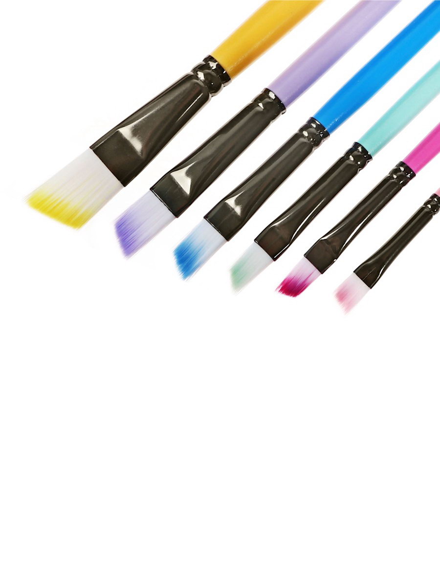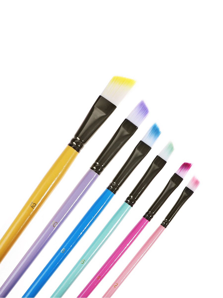 Набор кистей для рисования, синтетика, 6 штук: № 2, 4, 6, 8, 10, 12, плоские, скошенные, с цветными ручками, международный размер, 10x28x1 см., Китай