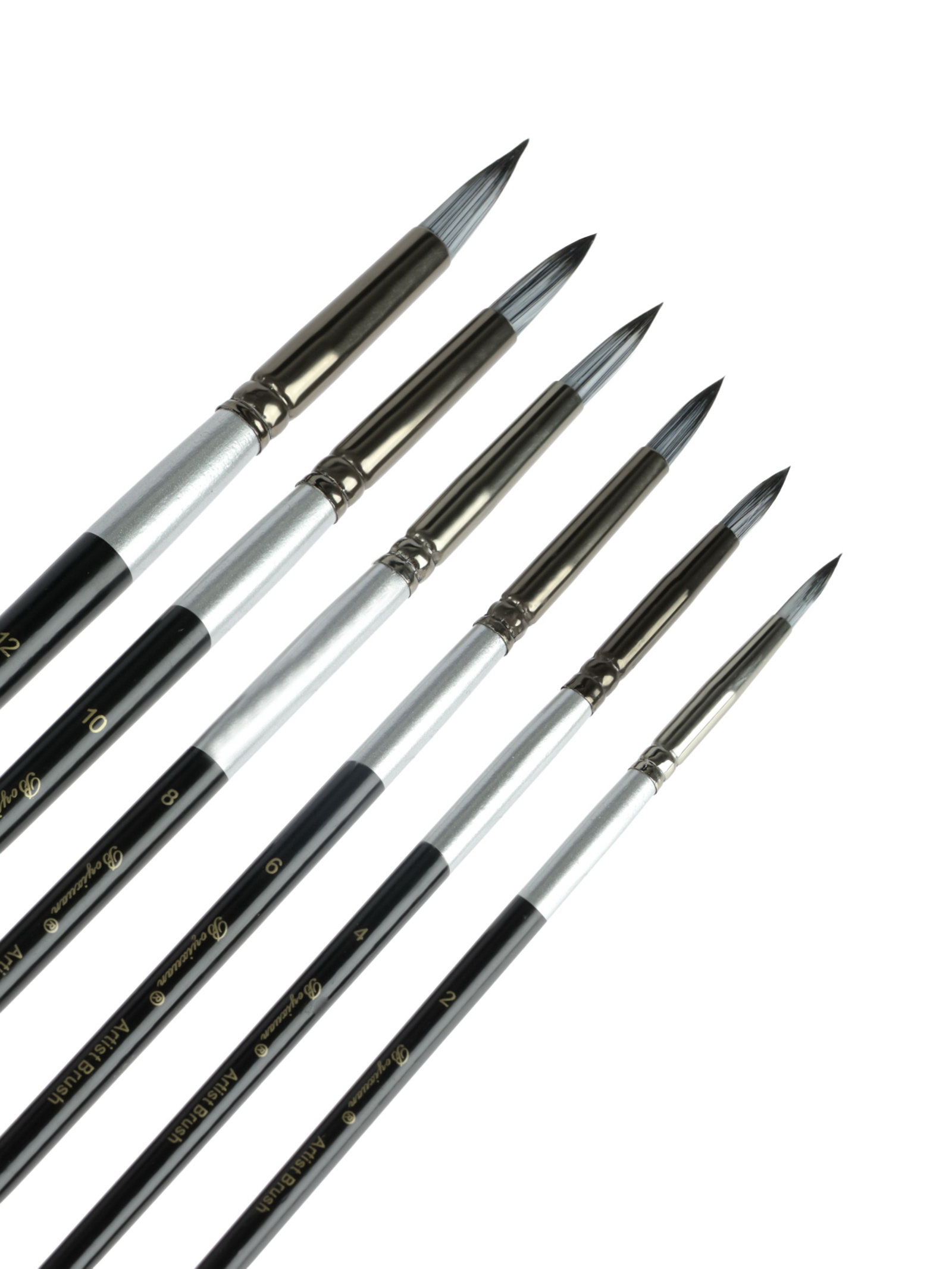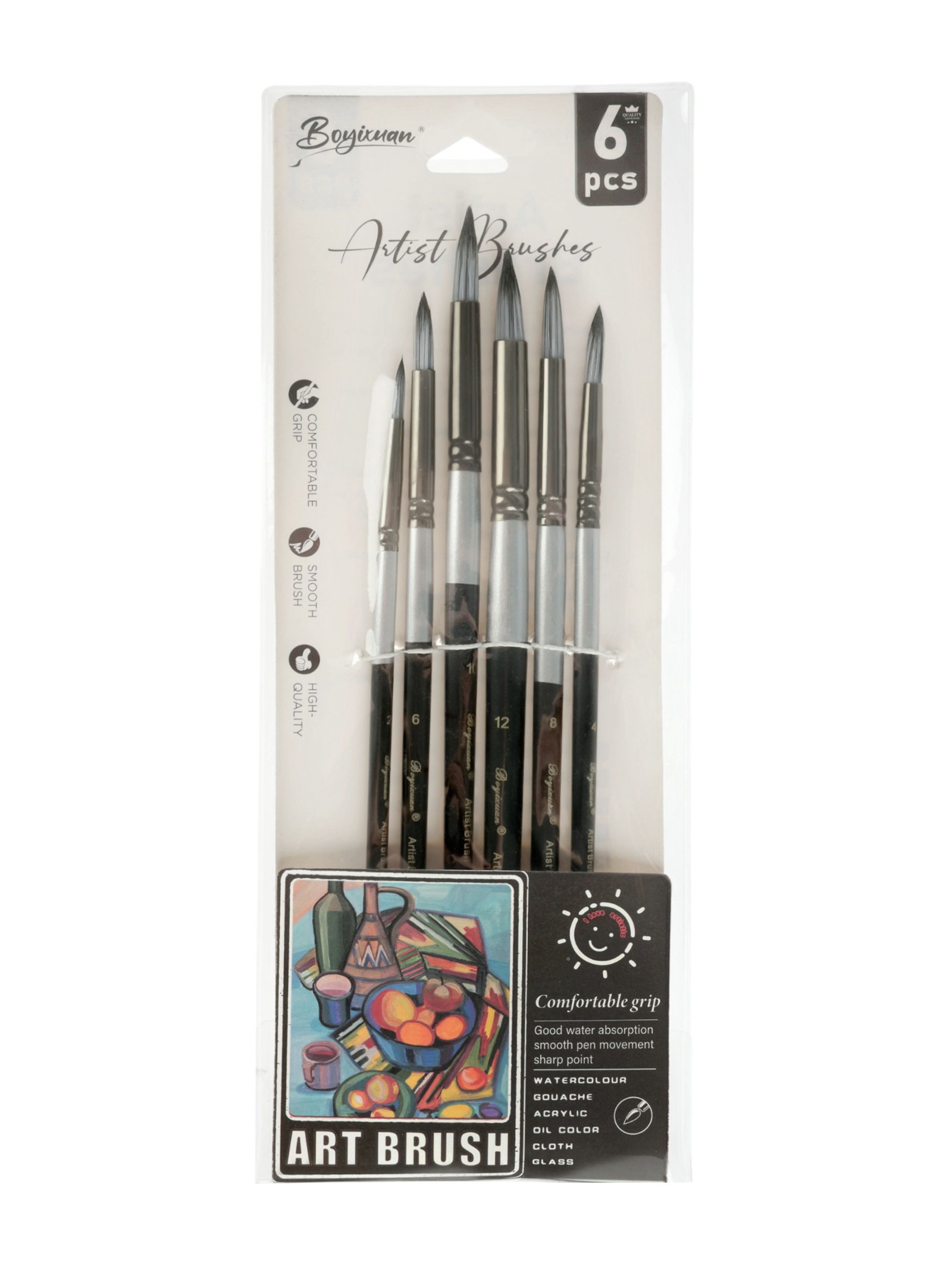Набор кистей для рисования, синтетика, 6 штук: № 2, 4, 6, 8, 10, 12, круглые, международный размер, 10x28x1 см., Китай