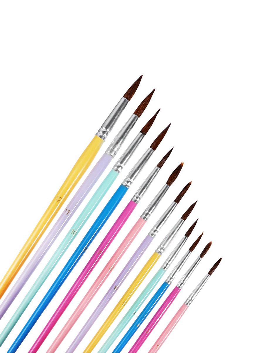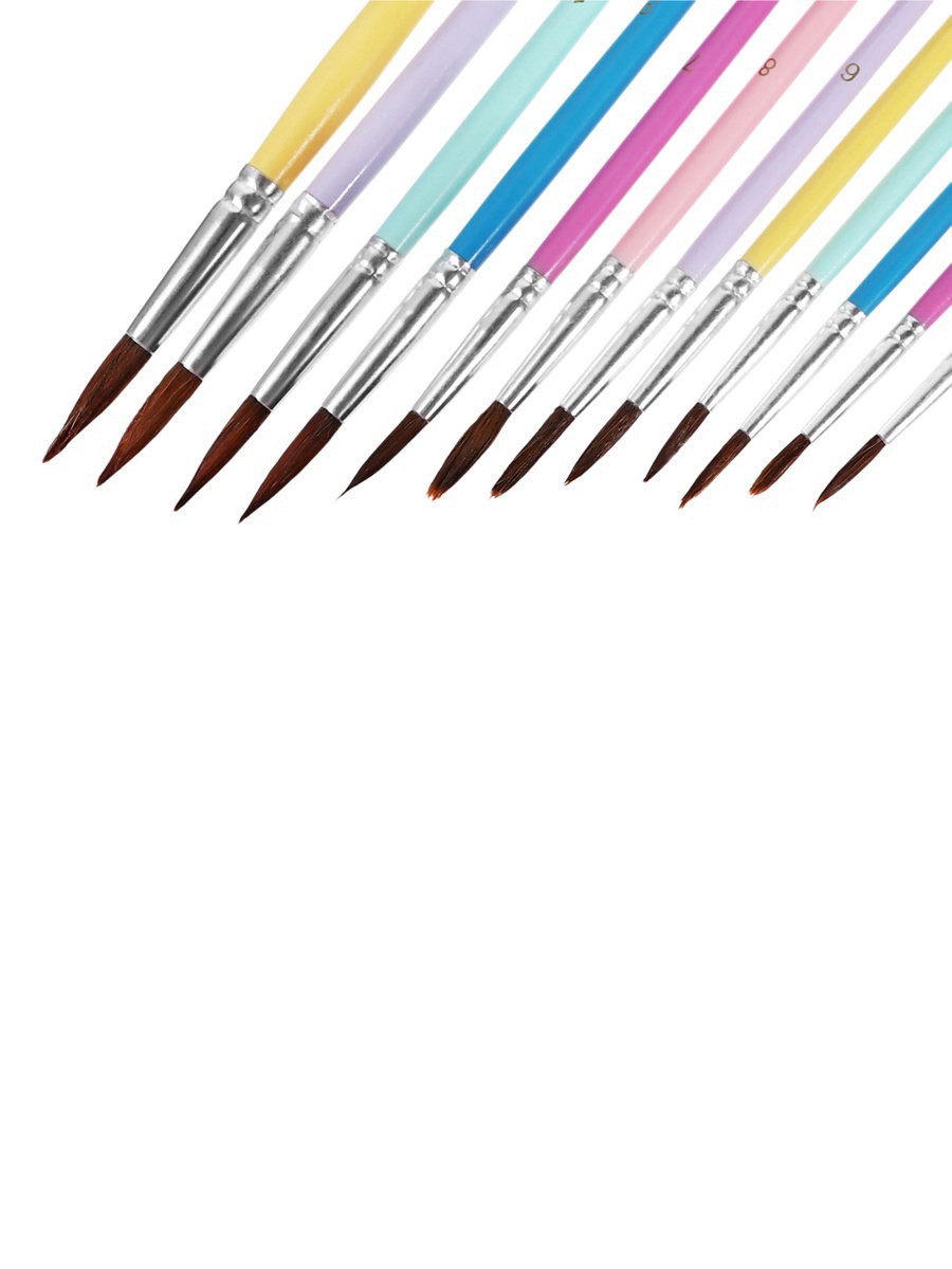 Набор кистей для рисования, пони, 12 штук: № 1, 2, 3, 4, 5, 6, 7, 8, 9, 10, 11, 12, круглые, с цветными ручками, пастель, 11x26x1 см., Calligrata, Китай