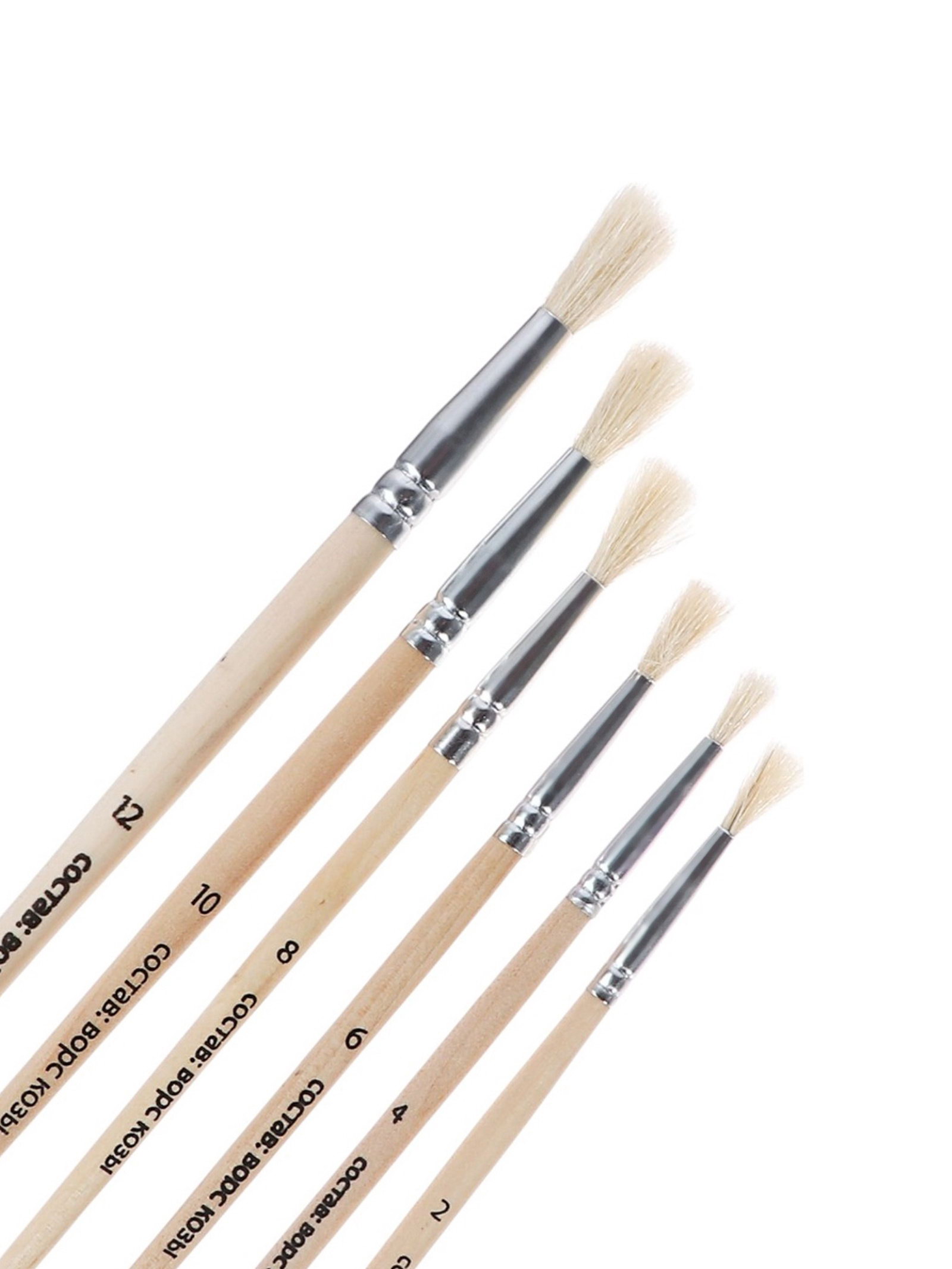 Набор кистей для рисования, коза, 6 штук: № 2, 4, 6, 8, 10, 12, круглые, деревянная ручка, международный размер, Calligrata, Китай