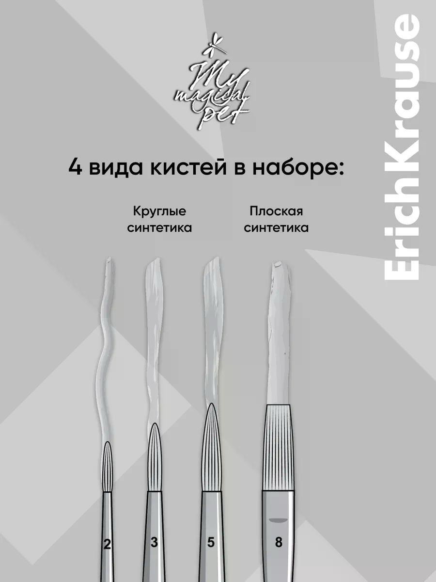 Набор кистей 4шт Magic Pet, 26.5x0.8x6.5 см., ErichKrause, Китай