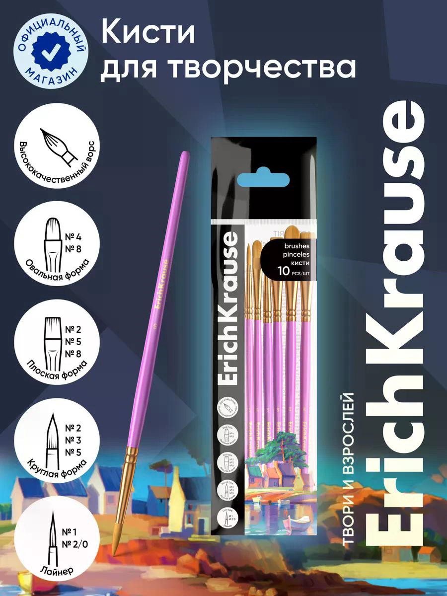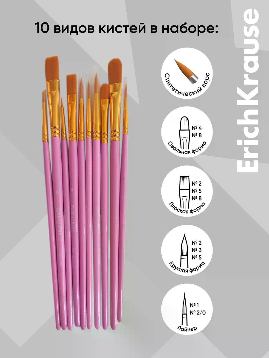 Набор кистей 10 штук Art Spirit, розовые, 26x0.5x7.5 см., ErichKrause, Китай