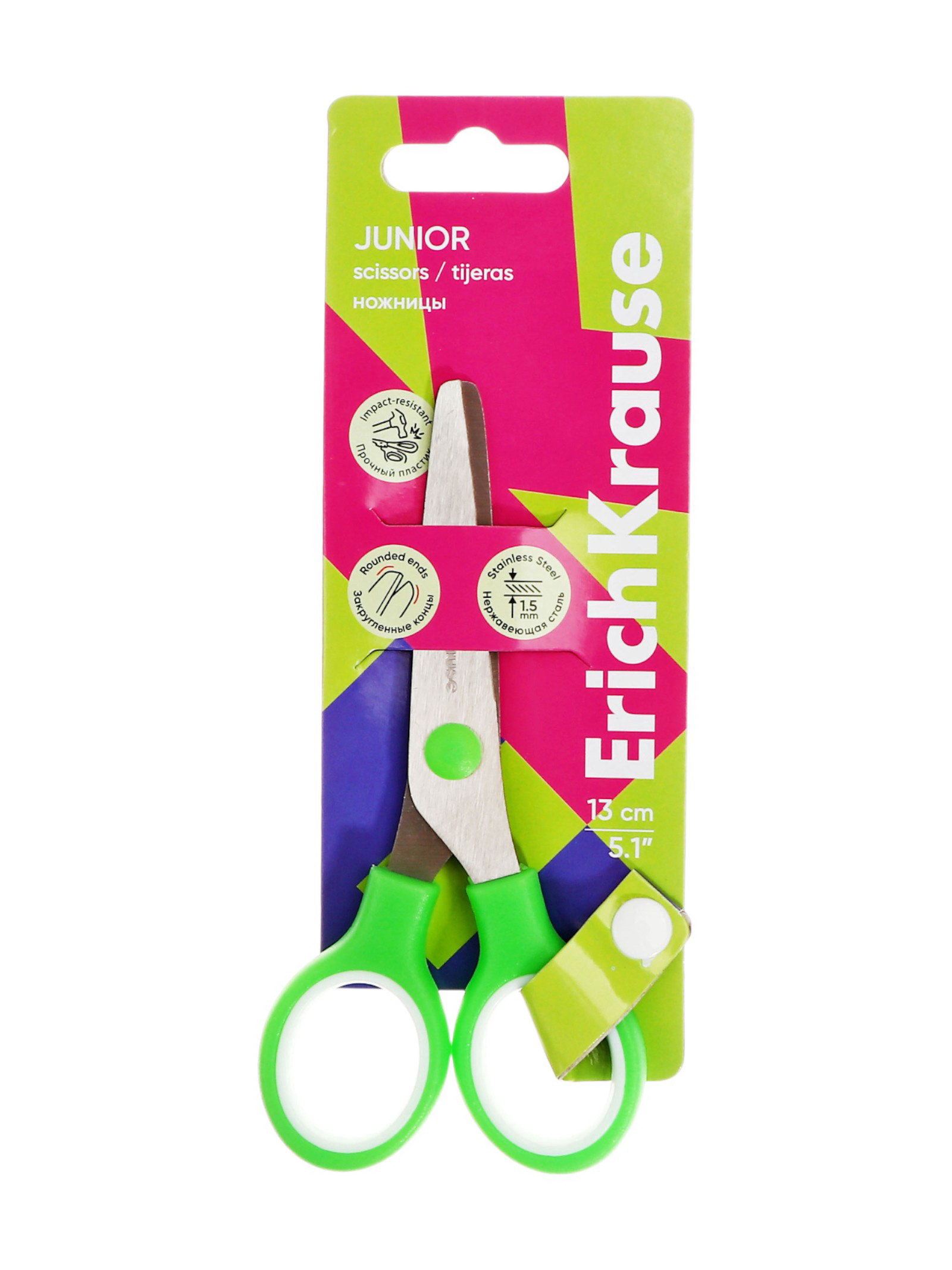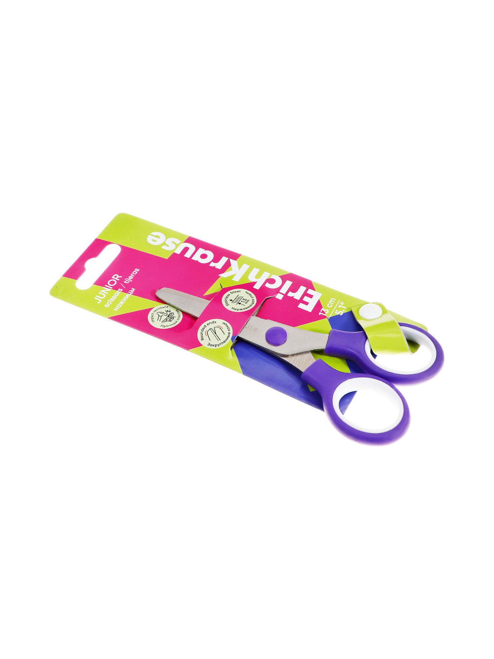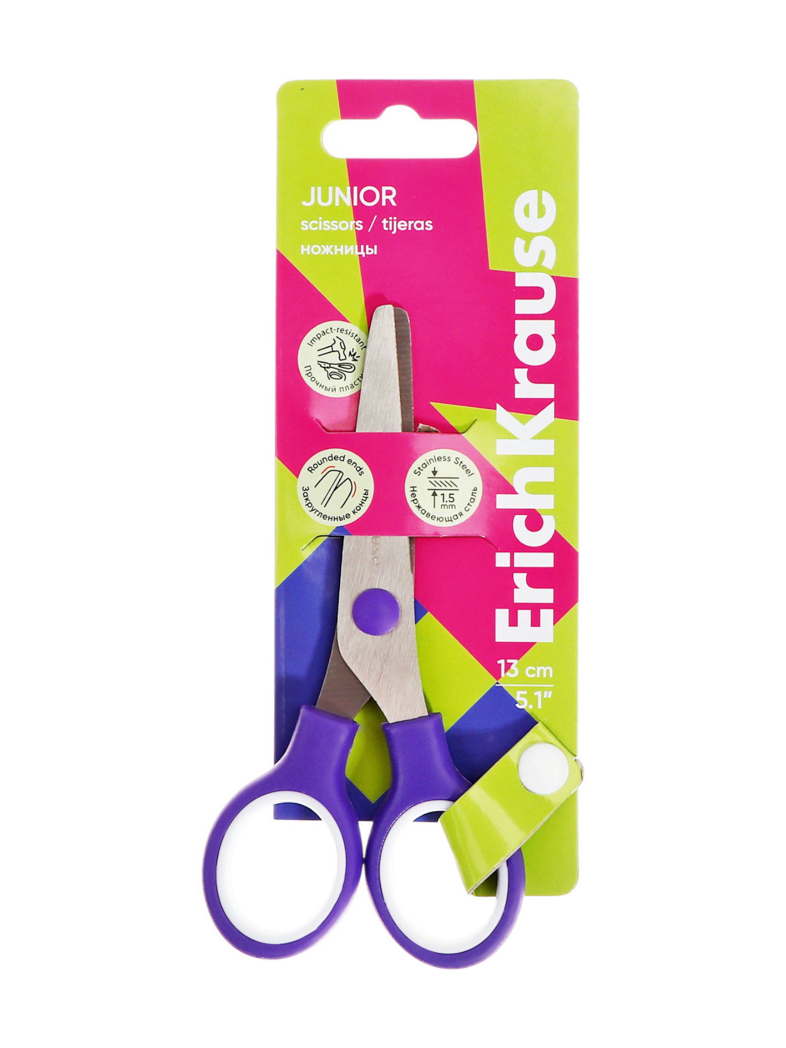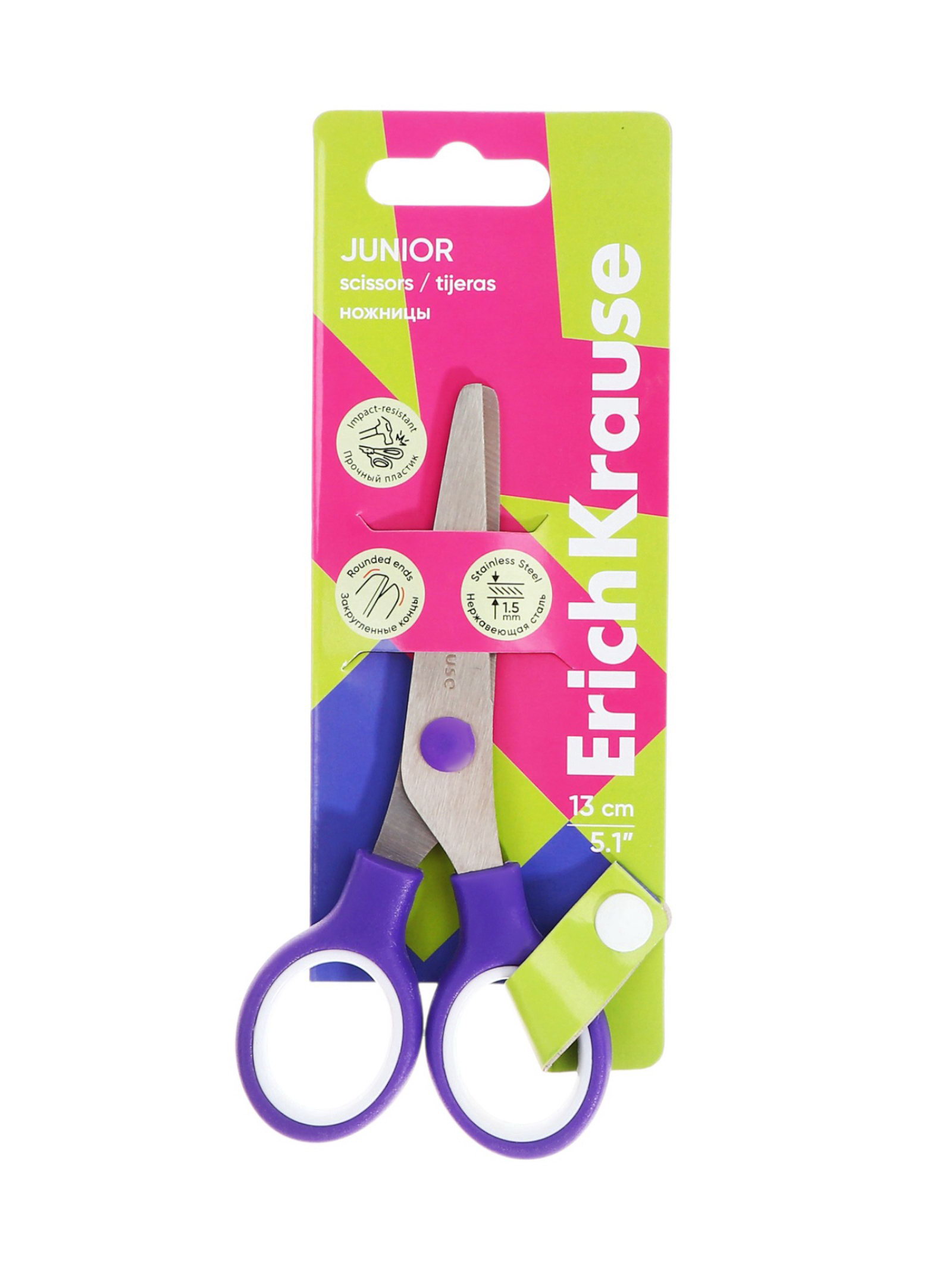 Цвет ручки: Зелёный, Фиолетовый Размер упаковки: 17 x 6.5 x 0.8 см. Лицензия: Нет Длина, см: 13 Особенность ножниц: Для правши Реестр Минпромторга: Нет Материал ручки: Пластик Безопасные лезвия: Да Возраст: От 5 лет Форма лезвий: Прямые Эргономичные ручки: Нет Походит для левшей: Нет Наличие футляра: Нет Фиксатор: Нет Линейка на лезвиях: Нет Вставка: Да Симметричные ручки: Нет Рисунок на лезвиях: Нет tnved: 8213000000 Штрихкод на единице товара: Да Европодвес: Да Ножницы с лезвиями из высококачественной нержавеющей стали с безопасными закругленными концами лезвий. Характеристики: