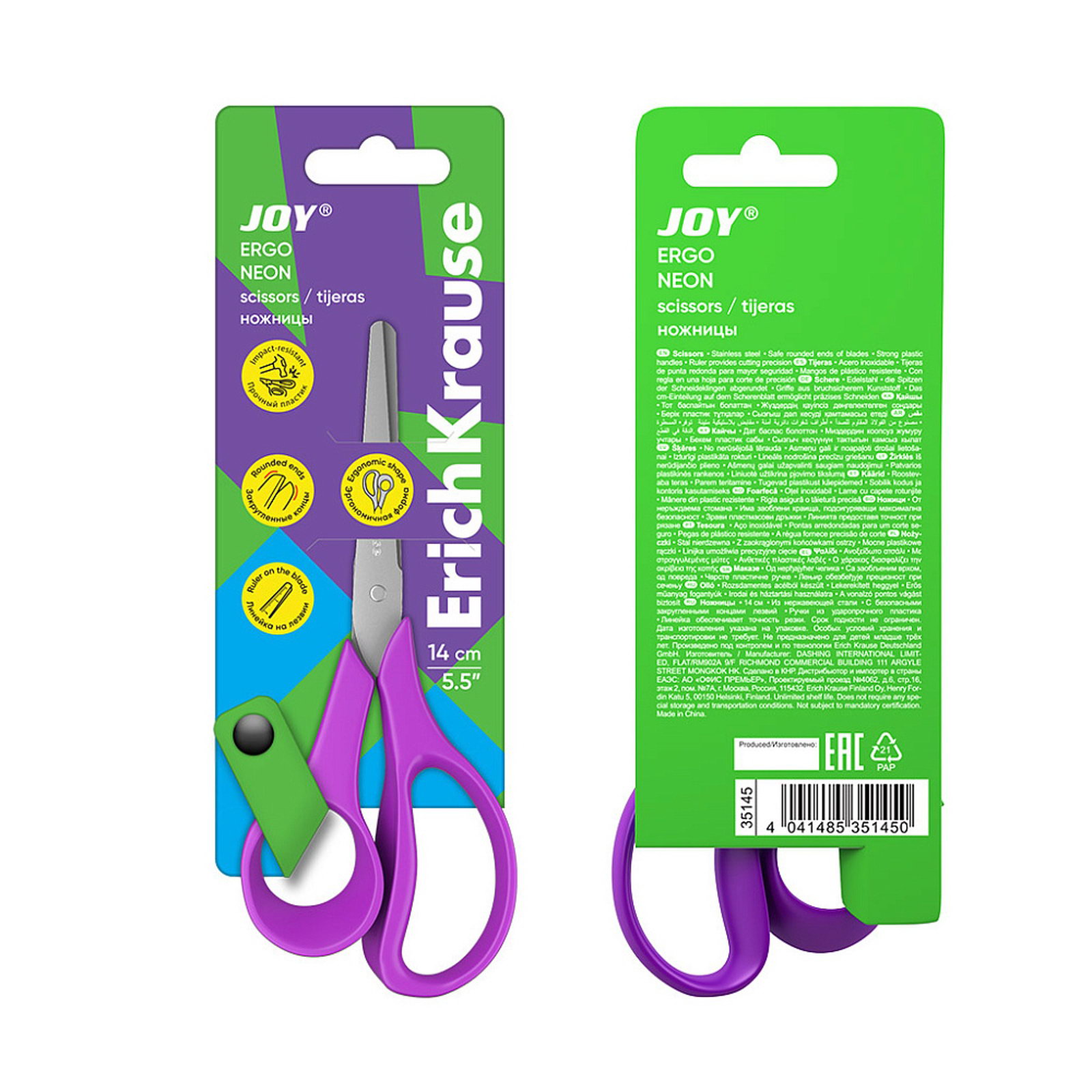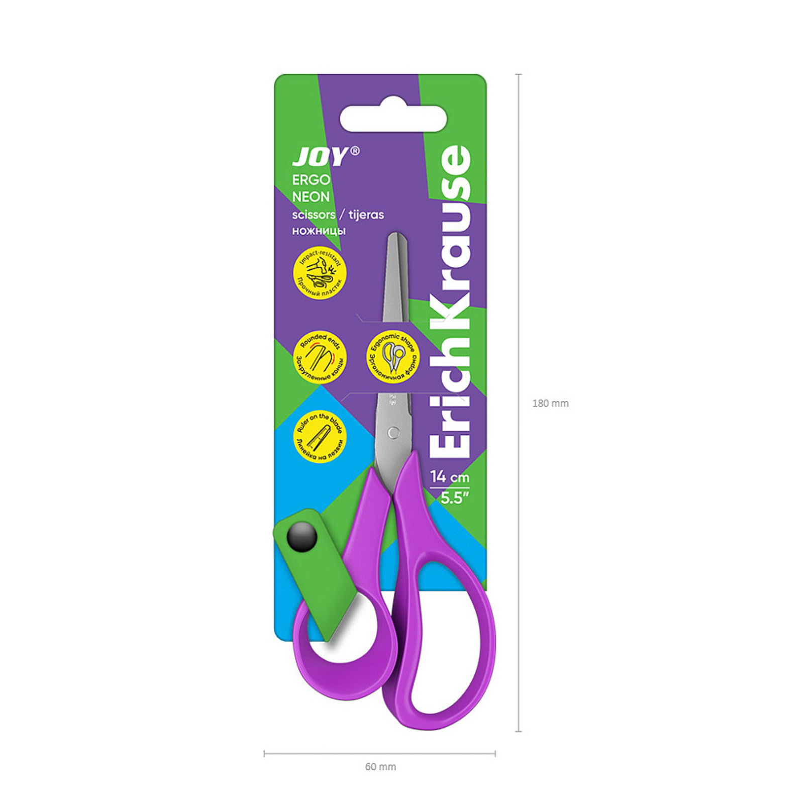 Ножницы детские 14 см, Joy Ergo, с закруглёнными концами лезвий и линейкой, МИКС, ErichKrause, Китай