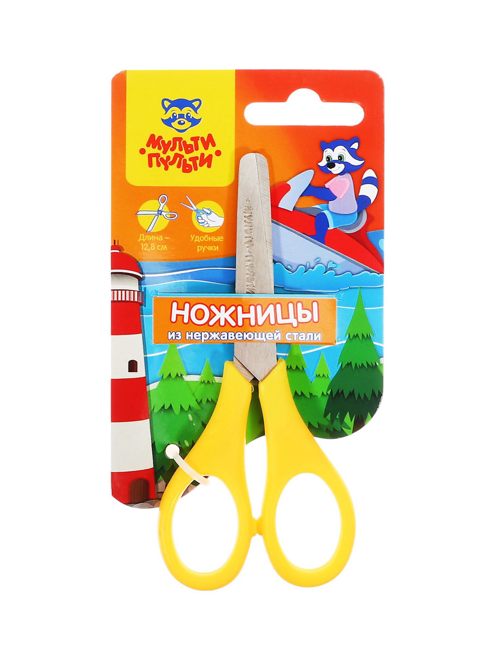 Ножницы 12 см детские "Приключения Енота", МИКС, европодвес, 9x18.5x1 см., Мульти-Пульти, Китай
