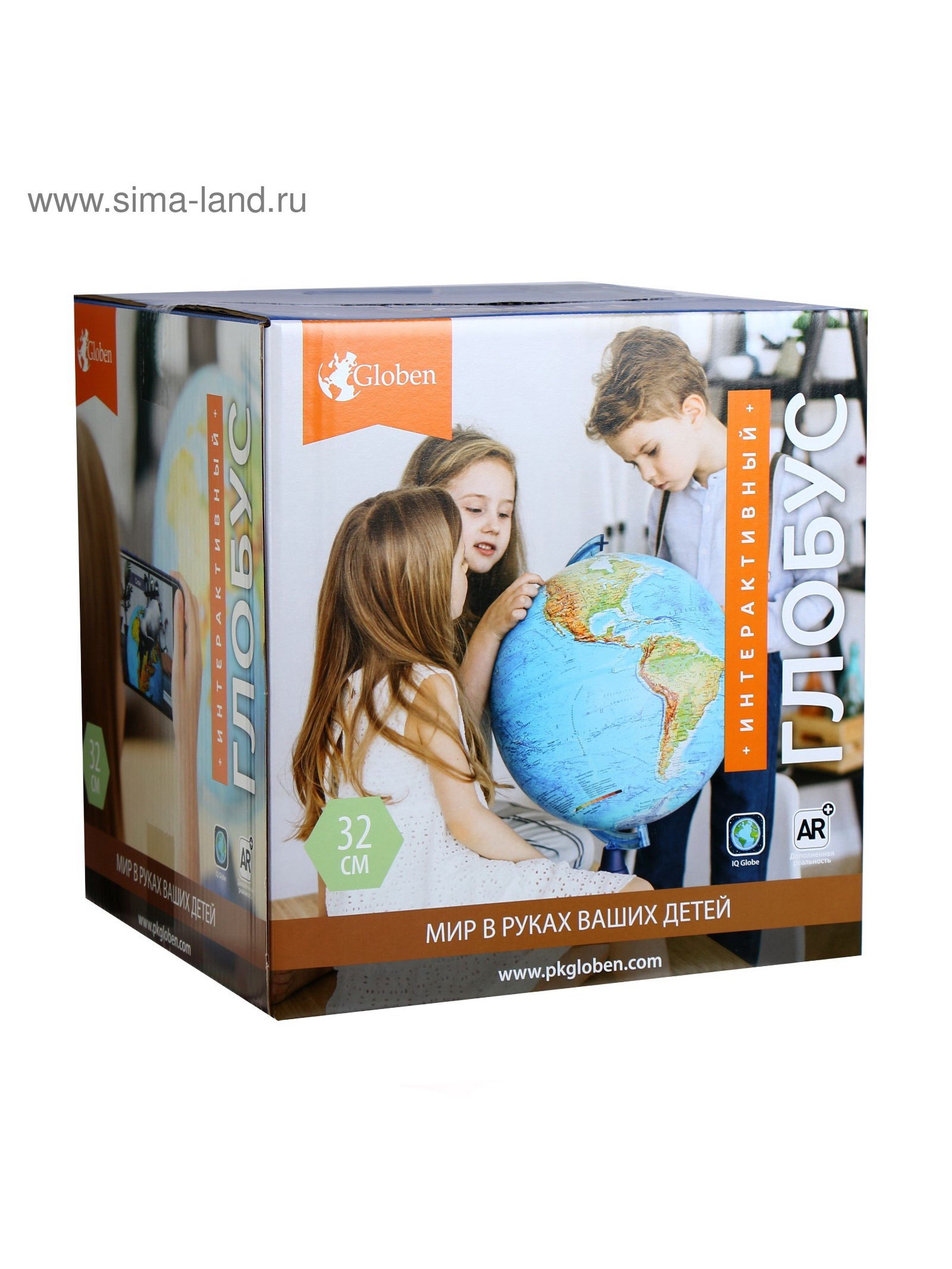 Глобус физико-политический интерактивный, диаметр 320 мм, рельефный, с подсветкой от батареек, с очками, 3200 см., Глобен, Россия