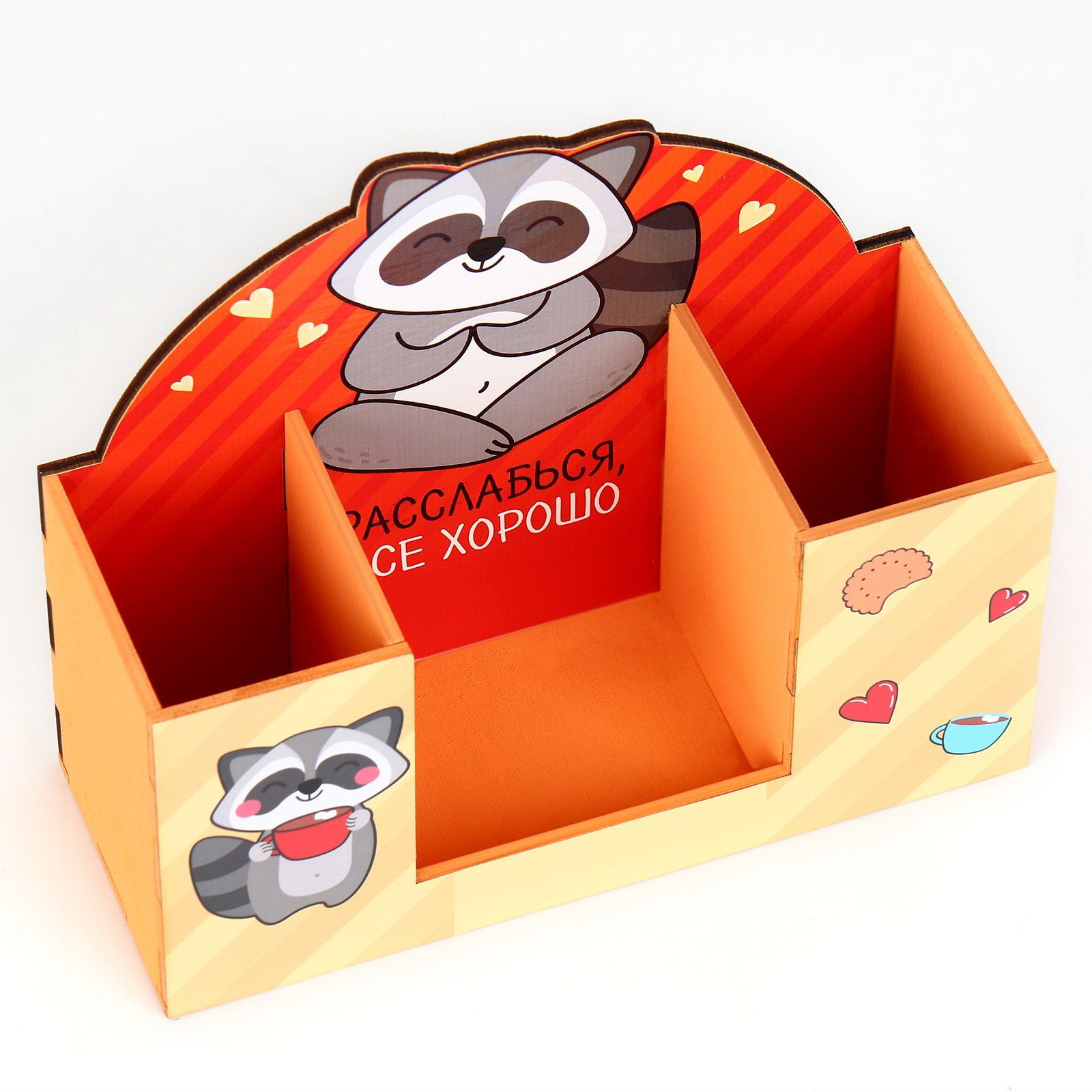 Органайзер для канцелярии "Расслабься, всё хорошо" енот, 7.5x20x18 см., ArtFox STUDY, Россия