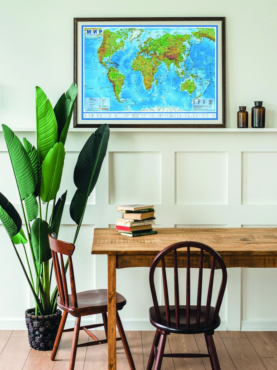 Карта Мира интерактивная, физическая, 101x66 см, 1:29 млн, ламинированная настенная, Глобен, Россия