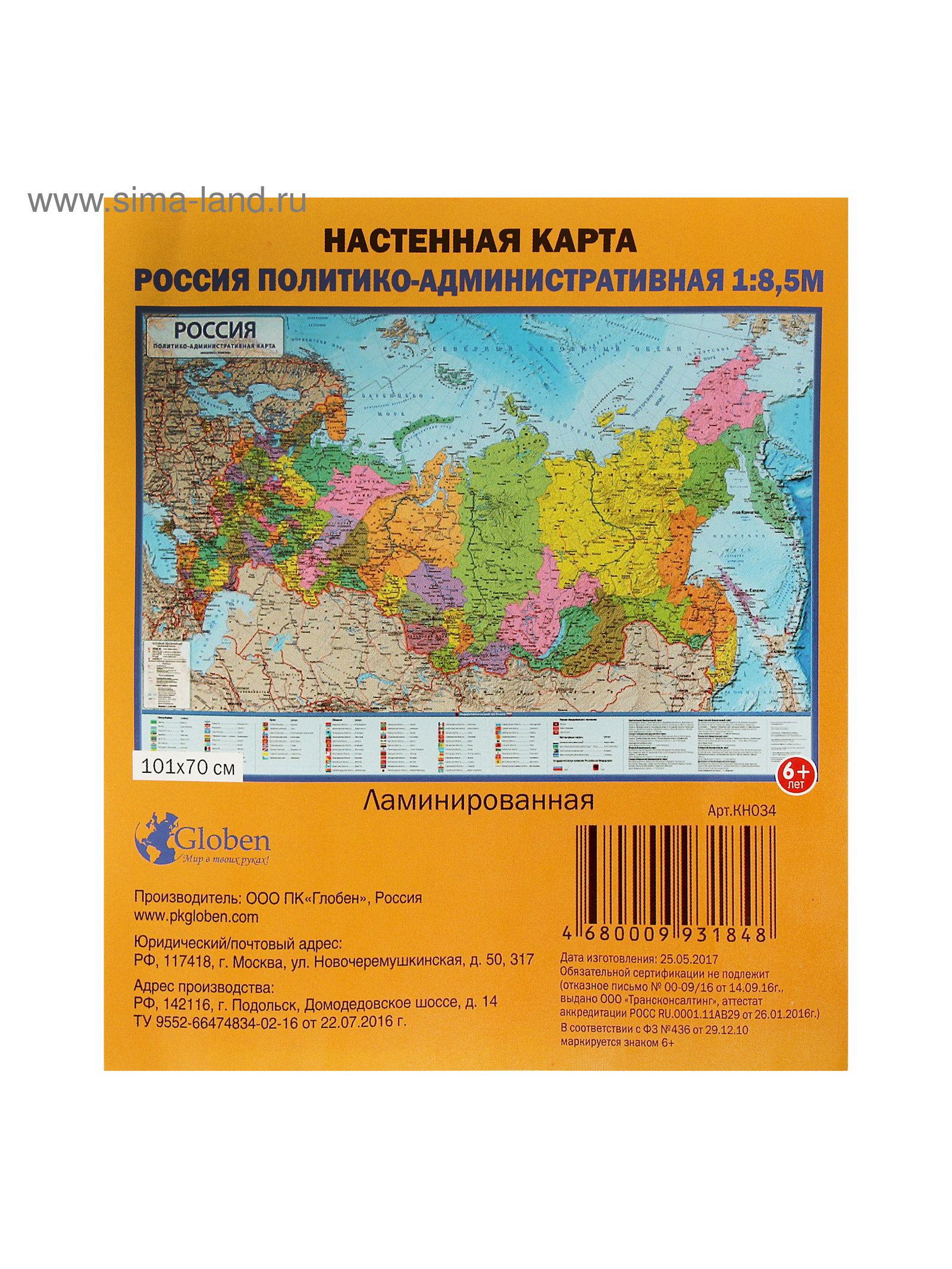 Размер упаковки: 5 x 5 x 70 см. Ширина, см: 70 Длина, см: 101 tnved: 4905900000 tnved: 4905900000 Европодвес: Да Штрихкод на единице товара: Да Температурное ограничение транспортировки: Да Особенности карты: Без особенностей Ваш ребёнок интересуется географией родного края и дальних стран? А может быть, он просто любит играть в города и хочет блеснуть знаниями в среде сверстников? Карта России политико-административная, 101 x 70 см, 1:8.5 млн, ламинированная отличная возможность изучить окружающий нас мир в деталях! Такой предмет поддержит интересы ребёнка и расскажет ему много нового! | ||