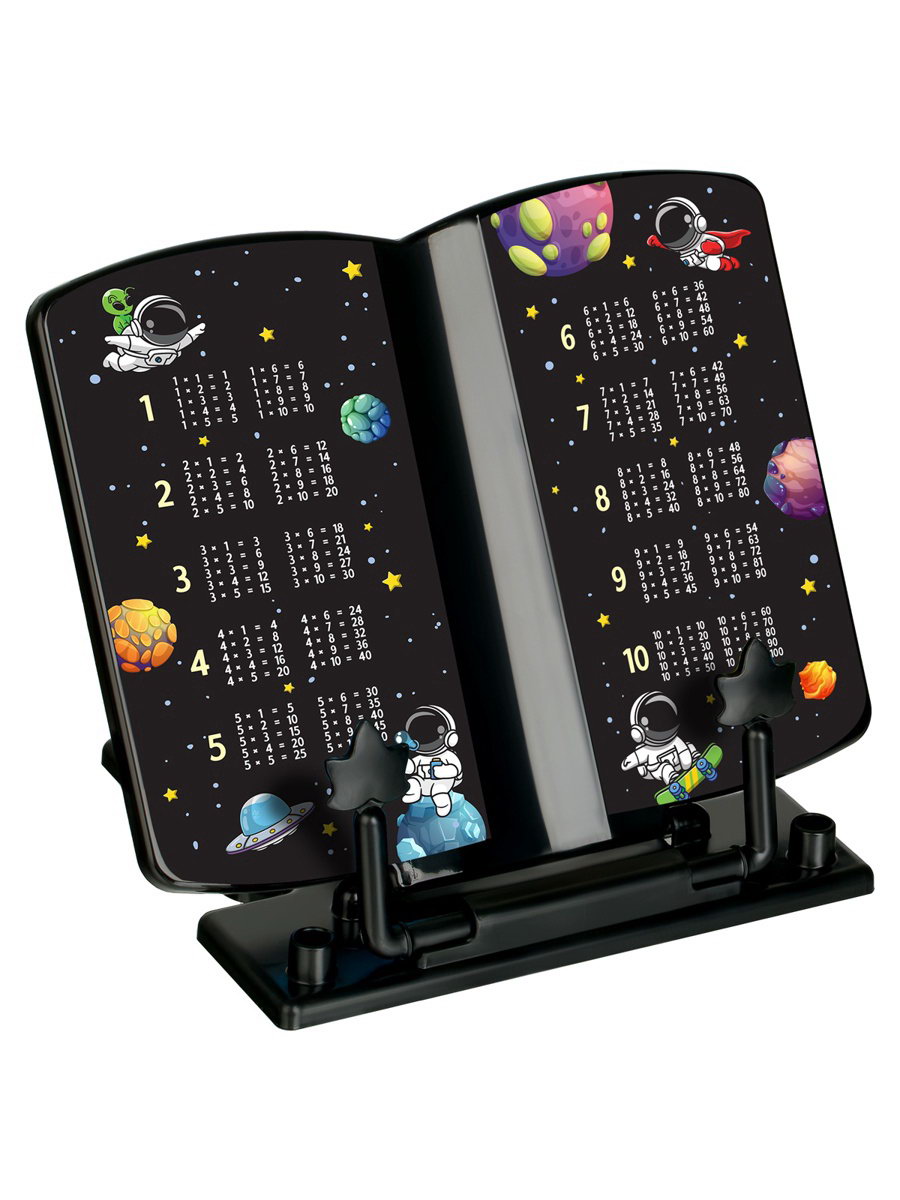 Для кого: Для девочки, Для мальчика Размер упаковки: 20.5 x 2.5 x 21.5 см. Температурное ограничение: Нет Цвет: Чёрный Рисунок: Да tnved: 3926100000 tnved: 3926100000 Подставка для книг "СТАММ" серии "Космонавты" – школьный аксессуар, повышающий комфорт при чтении. Изделие размером 200 x 200 x 25 мм подходит для больших и малых форматов книг. Подставка изготовлена из качественного пластика. Благодаря наличию фиксатора подставка не складывается под тяжестью книги. Изделие имеет регулируемый угол наклона: от 110 до 135 градусов. Складная конструкция удобна при транспортировке и хранении. Использование подставки поможет сформировать правильную осанку. Цвет изделия ? чёрный. Индивидуальная упаковка ? флоупак. Характеристики