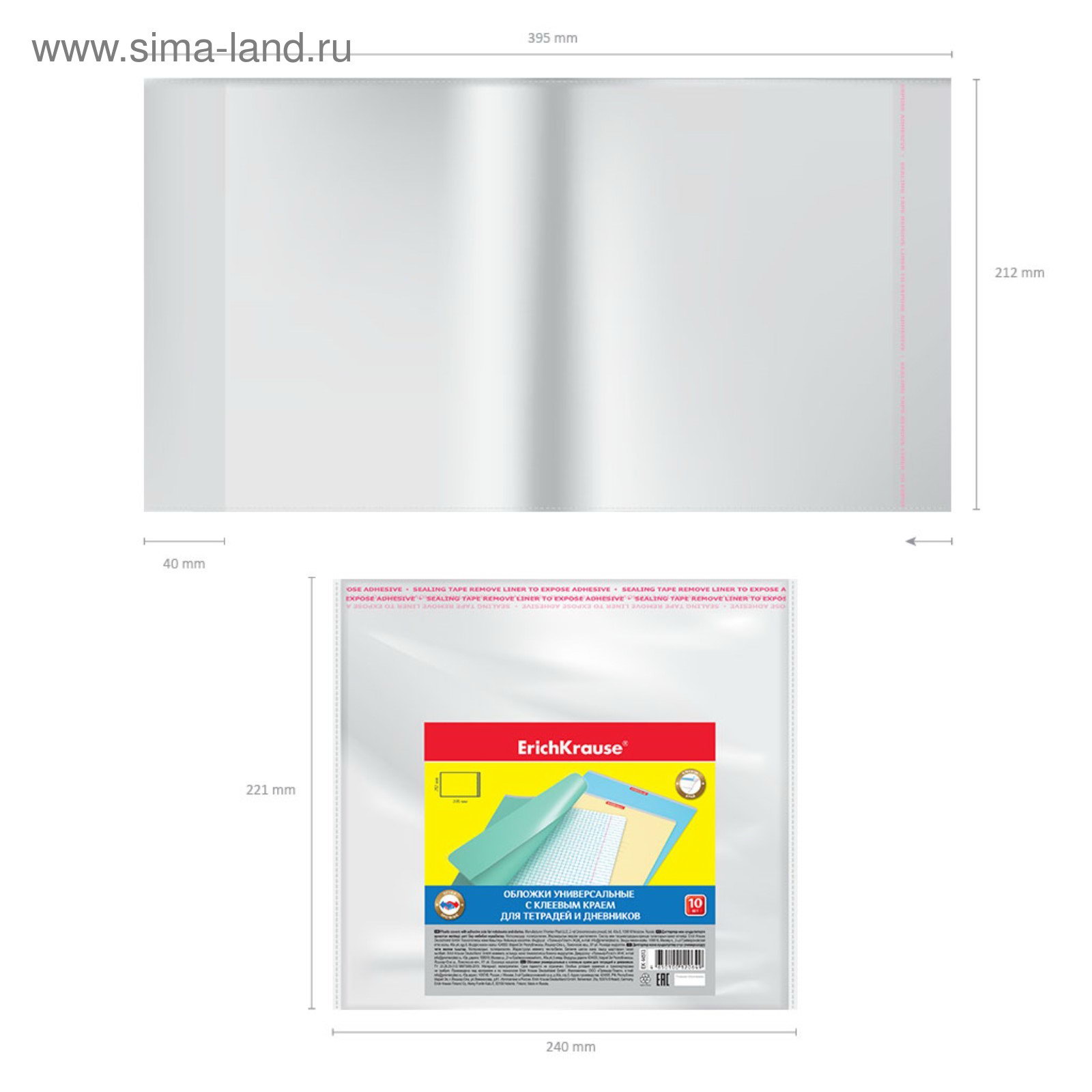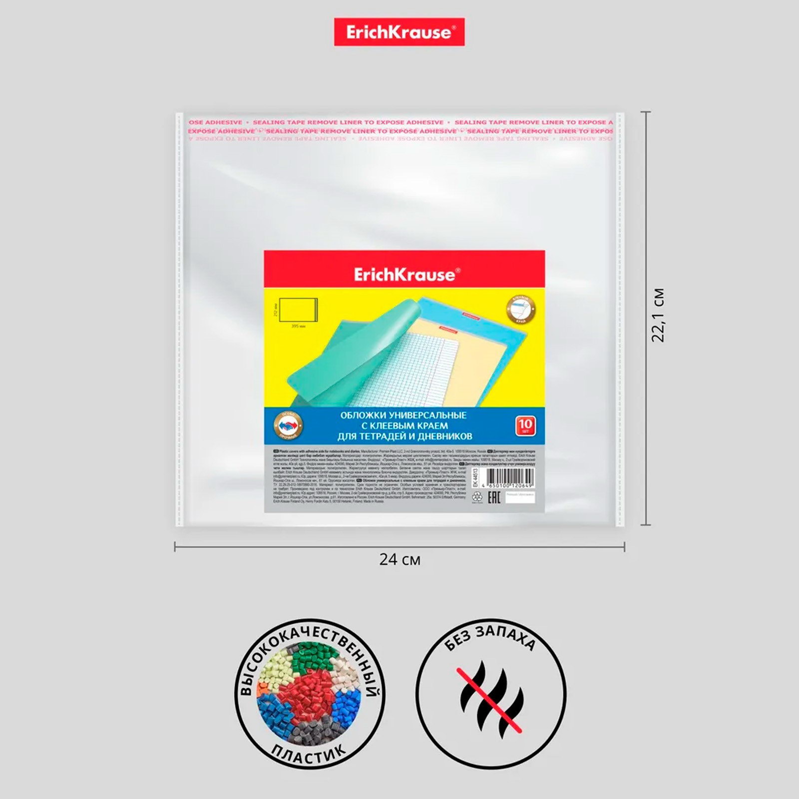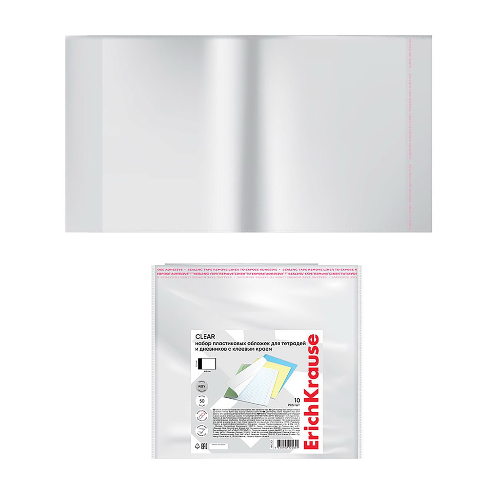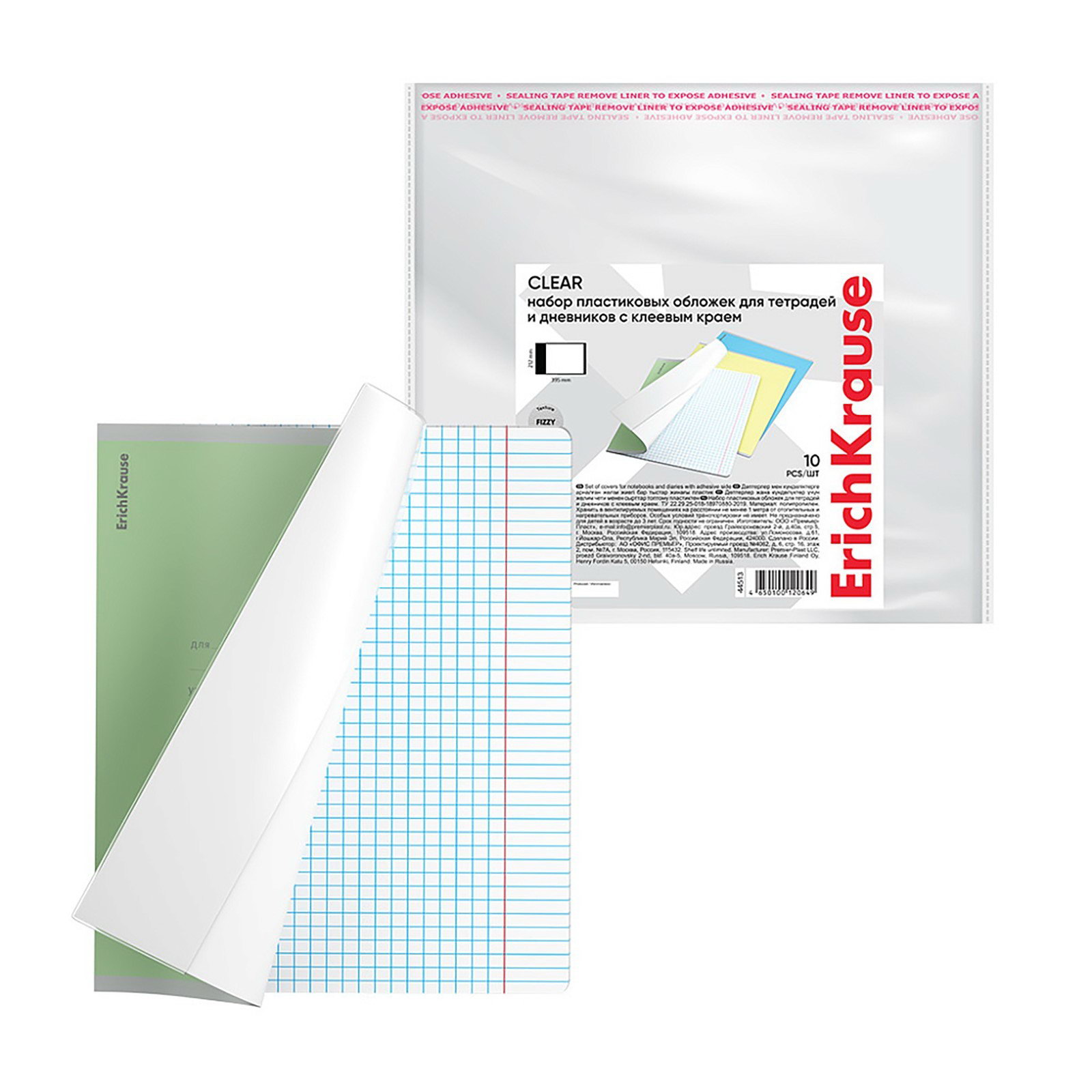 Набор обложек ПП 10 шт, 212 x 395 мм, 50 мкм, "Fizzy Clear", для тетрадей и дневников, с клеевым краем, с тиснением, ErichKrause, Россия