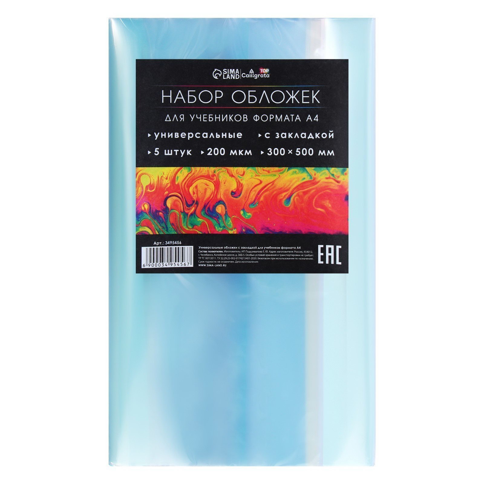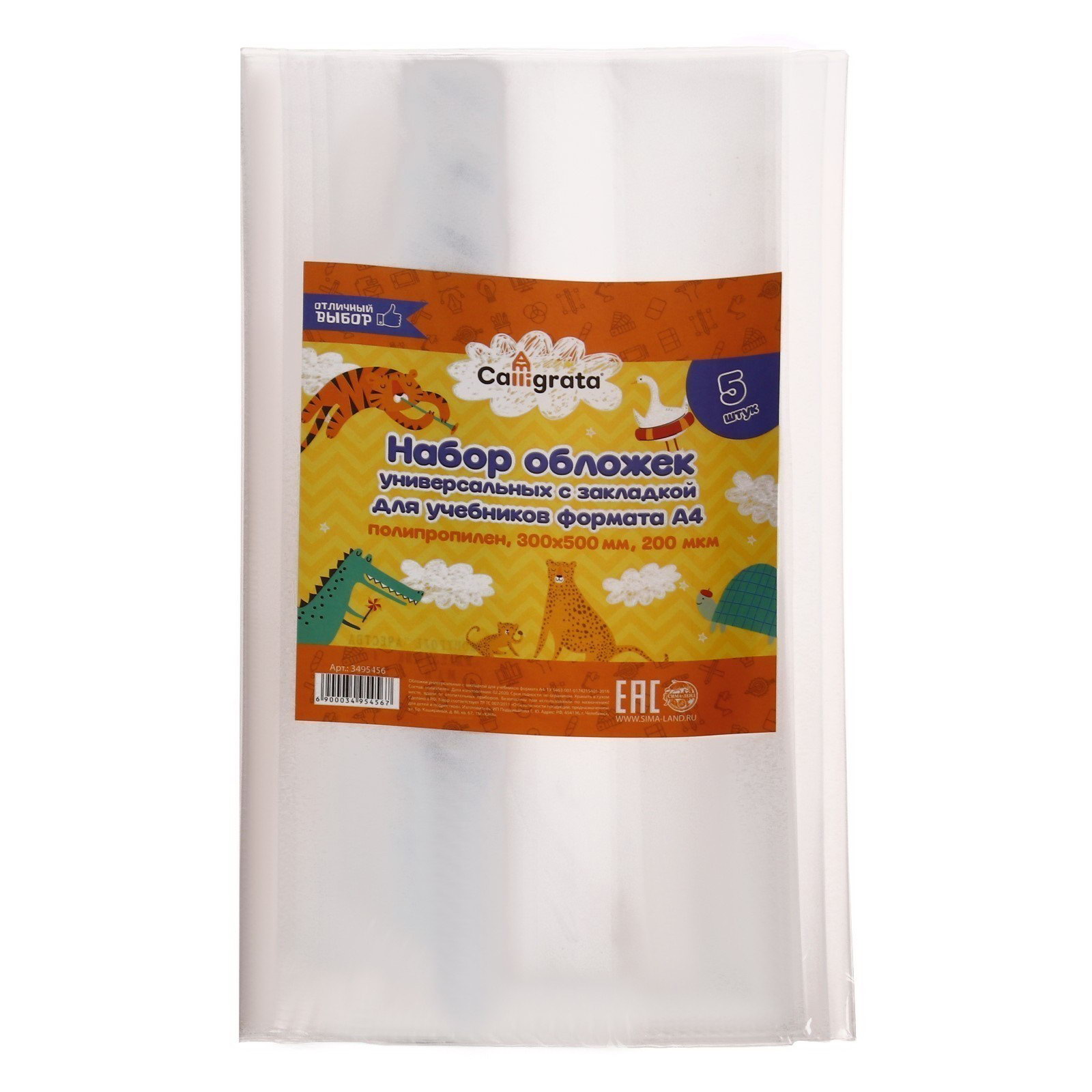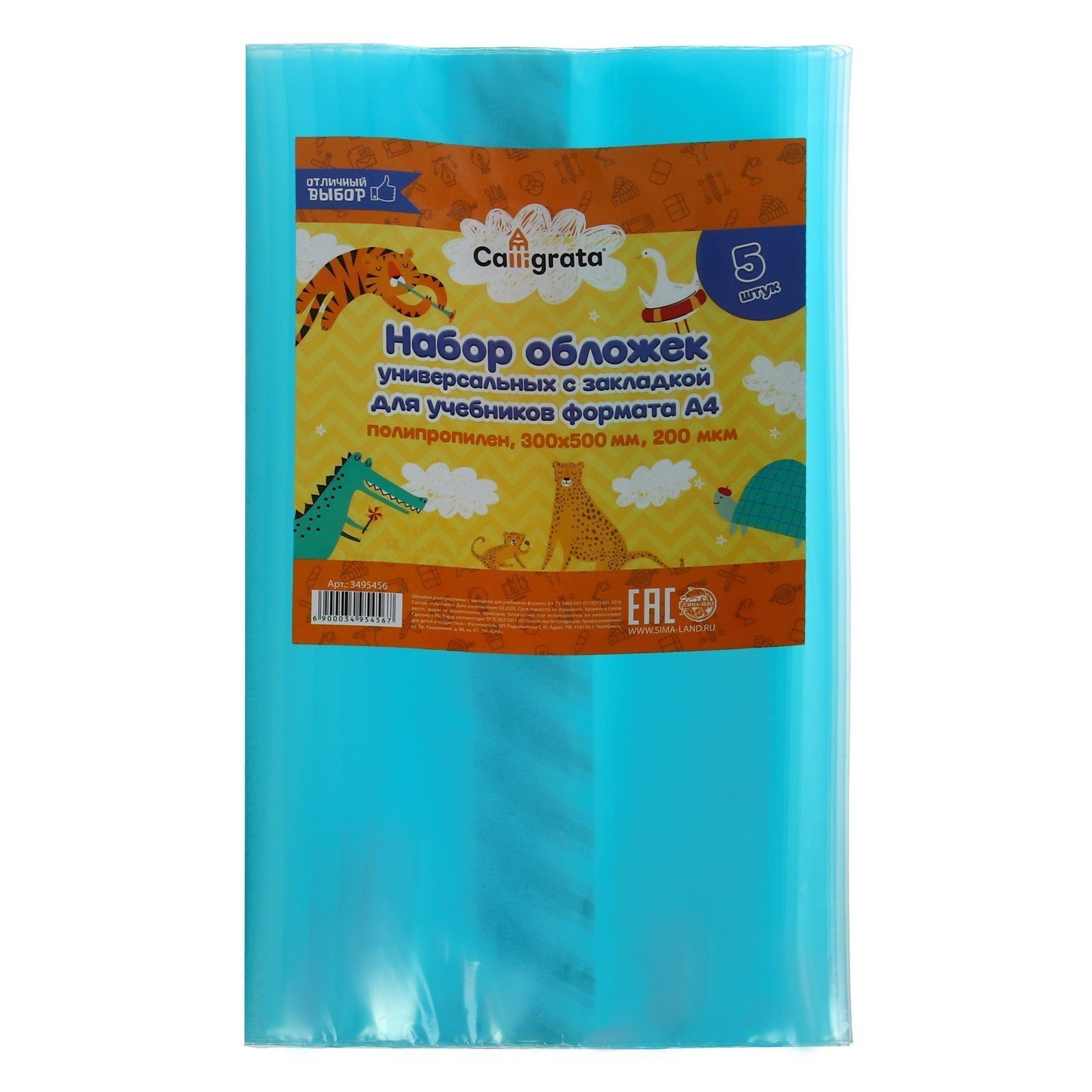 Набор обложек ПЭ 5 штук, 300 x 500 мм, 200 мкм, для учебников формата А4, универсальная, с закладкой, МИКС, Calligrata, Россия