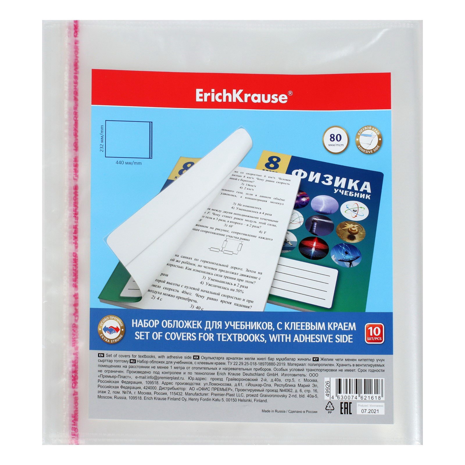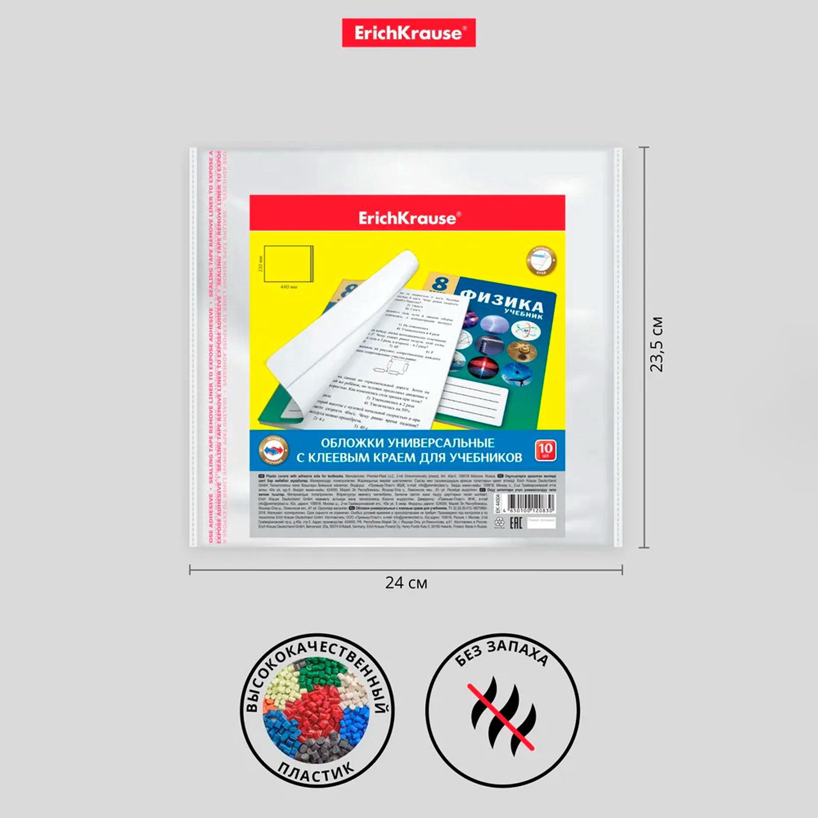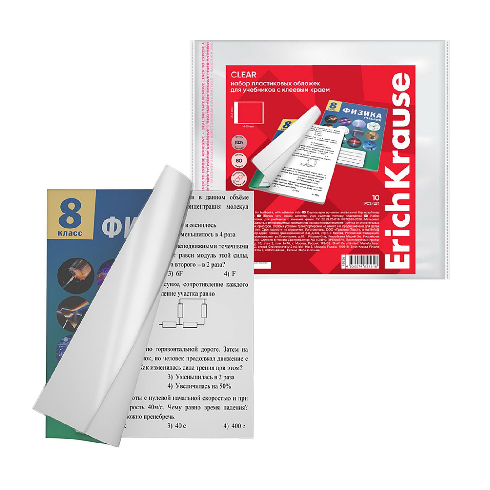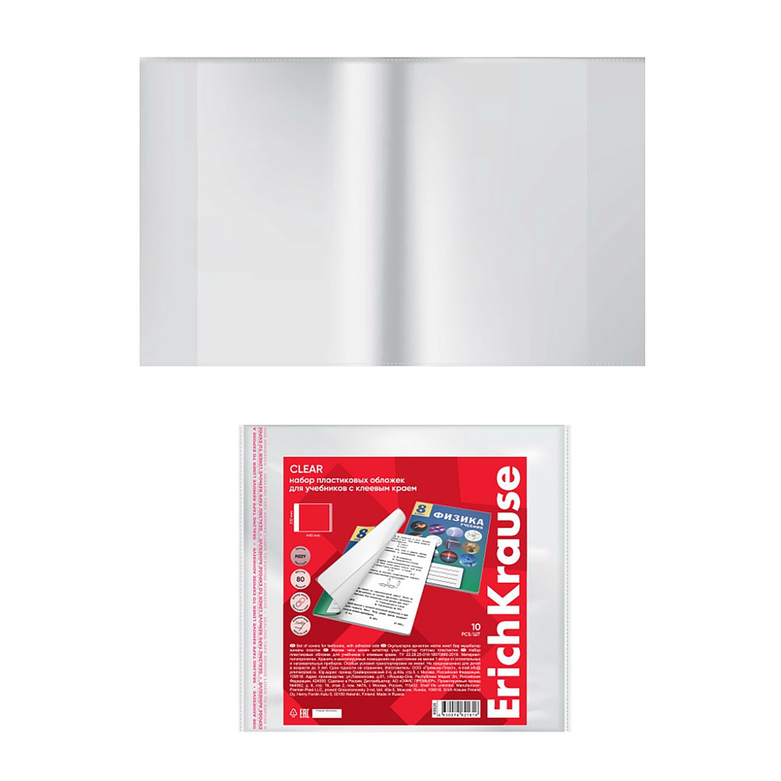 Набор обложек ПП 10 шт, 232 x 440 мм, 80 мкм, "Fizzy Clear", для учебников, с клеевым краем, с тиснением, 44x23.2 см., ErichKrause, Россия