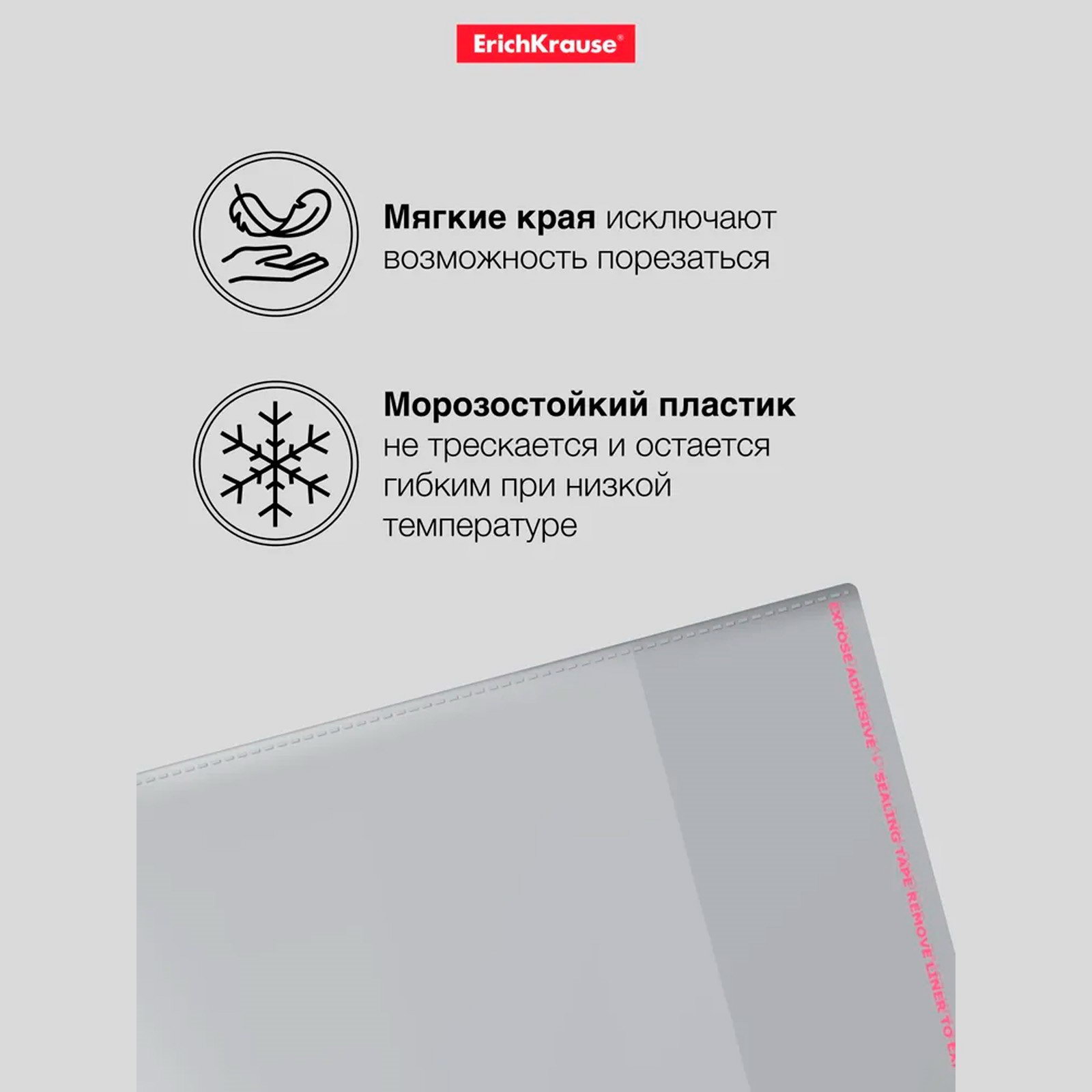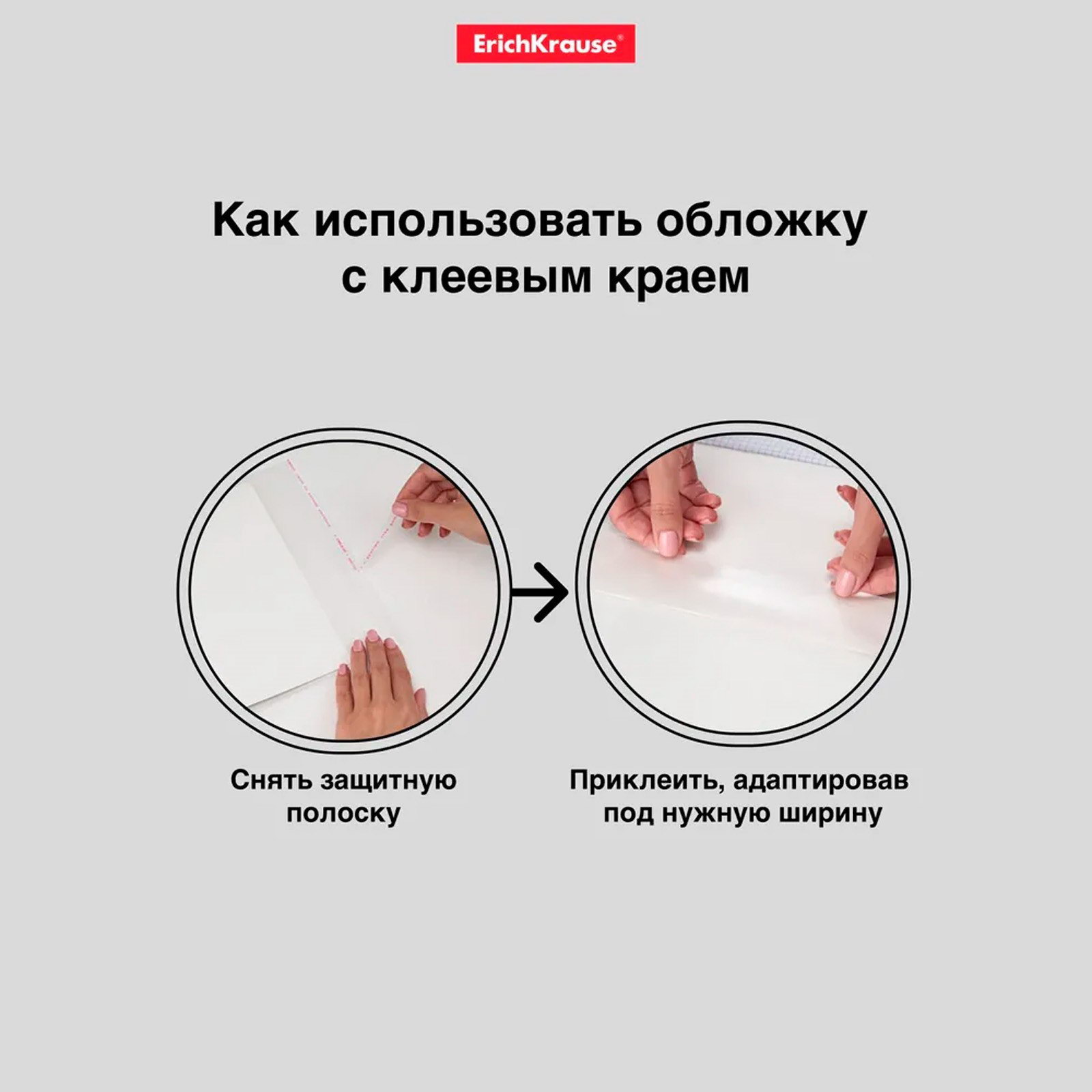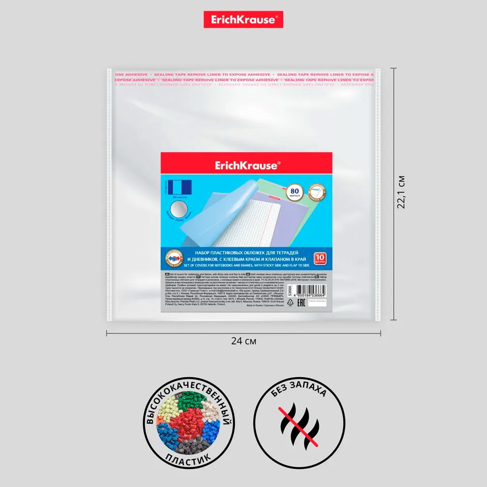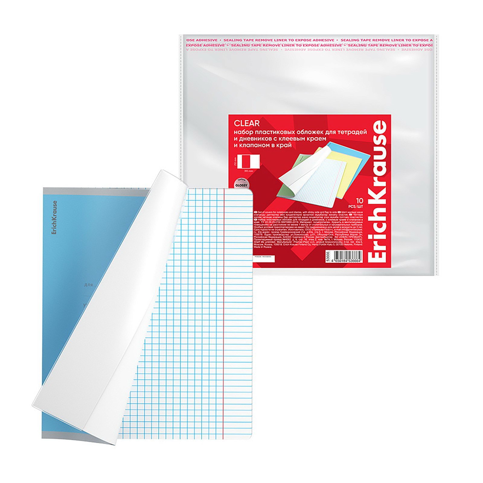 Набор обложек ПП 10 шт, 212 x 395 мм, 80 мкм, "Glossy Clear", для тетрадей и дневников, с клеевым краем и клапаном в край, глянцевые, ErichKrause, Россия