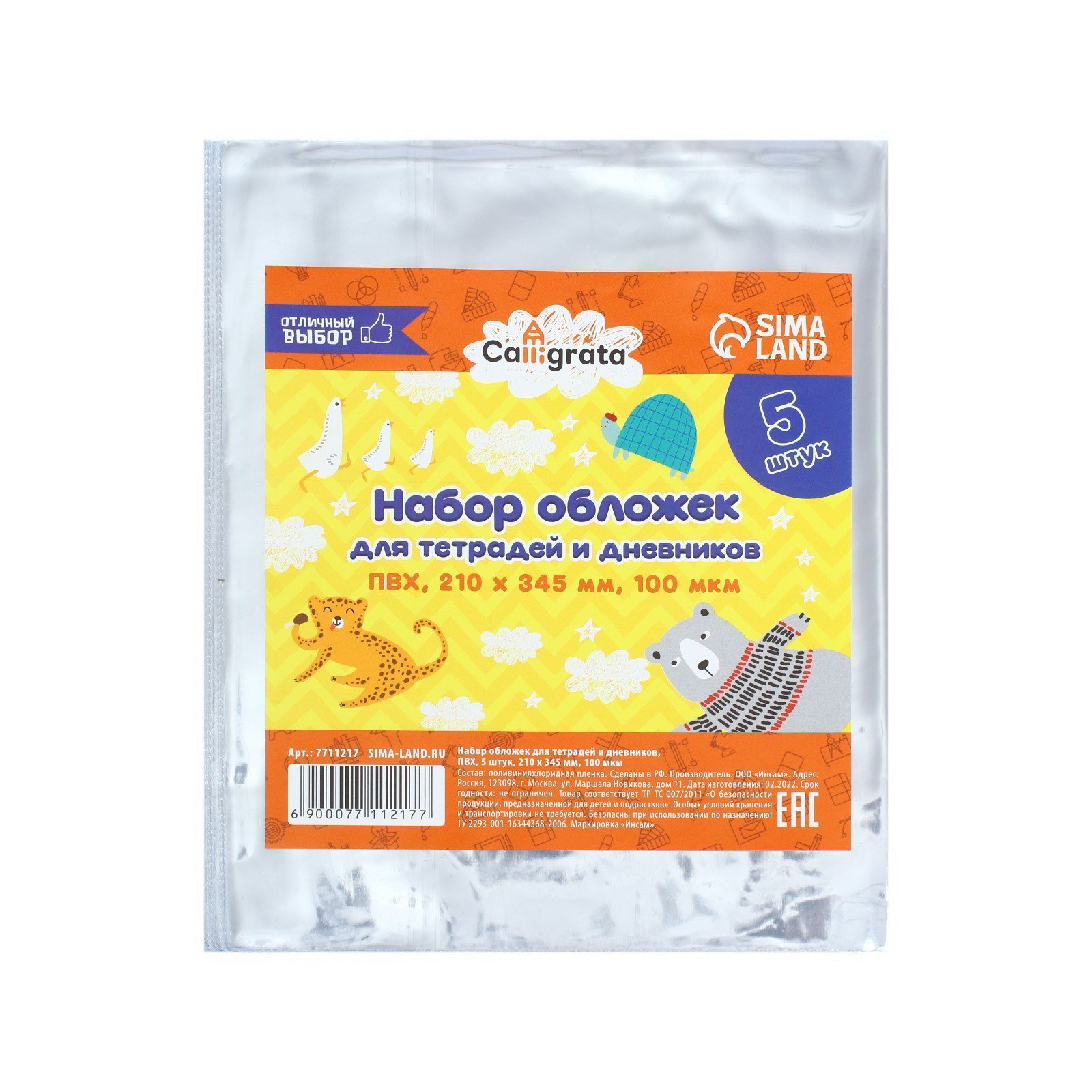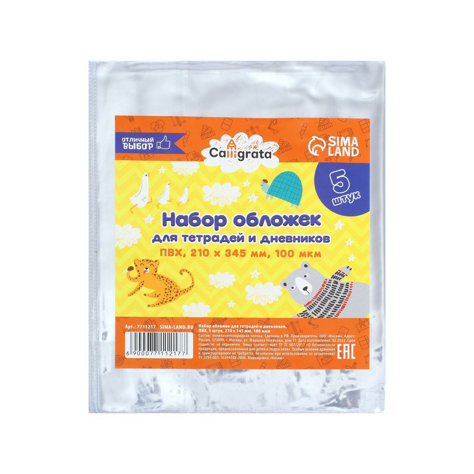 Набор обложек ПВХ 5 штук, 210x345 мм, 100 мкм, для тетрадей и дневников, Calligrata, Россия