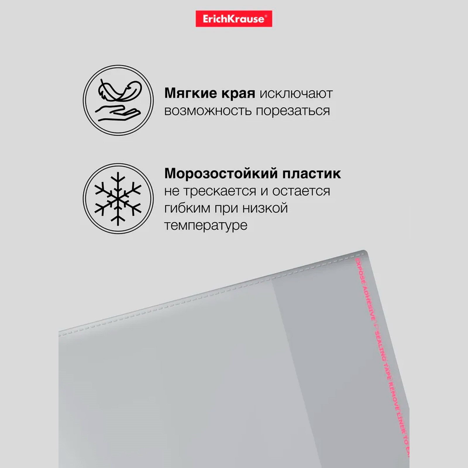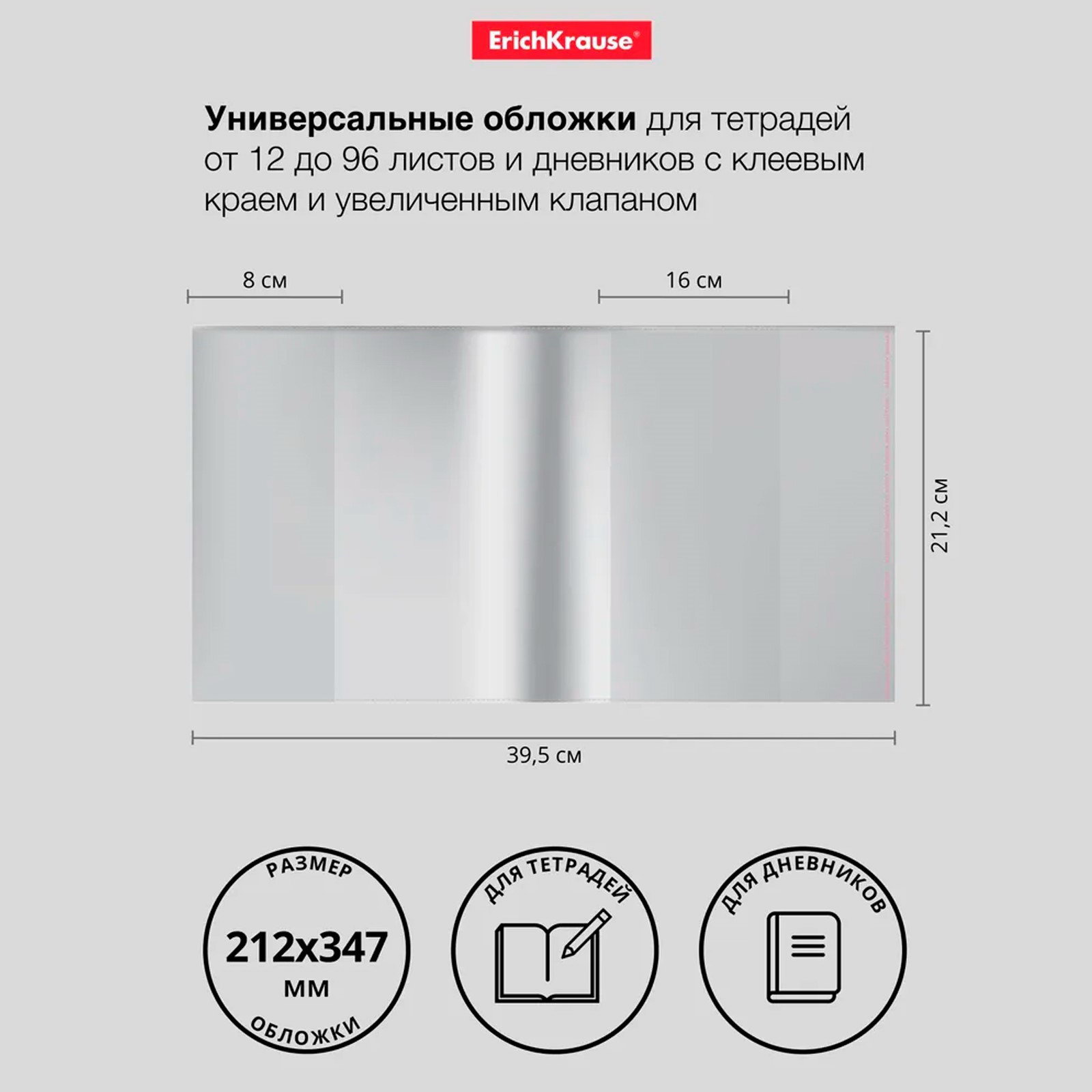 Обложка ПП 212х395мм, 80мкм, "Fizzy Clear", для тетрадей и дневников, с клеевым краем и увеличенным клапаном, 21.2x39.5 см., ErichKrause, Россия