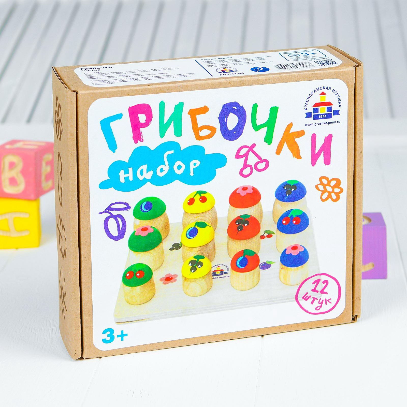 Сортер "Грибочки", размер грибочков: 4 см; 3.5 см; 3 см, Краснокамская игрушка, Россия