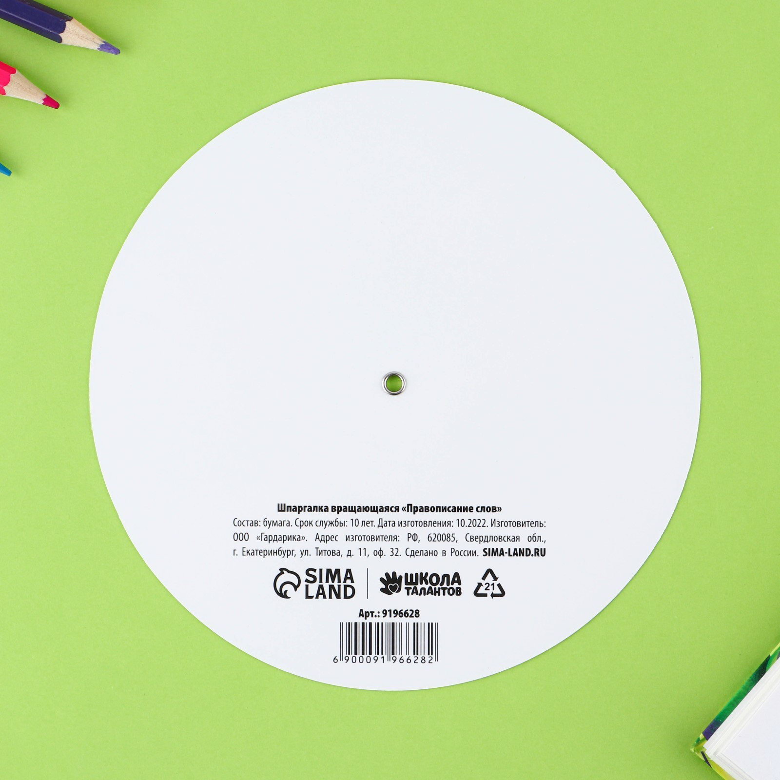 Шпаргалка вращающаяся "Правописание слов", Школа талантов, Россия