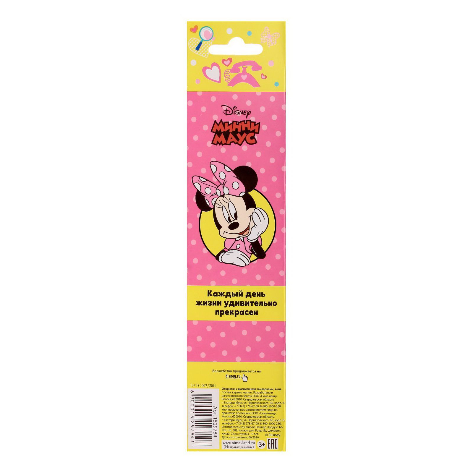 Магнитные закладки для книг, 4 шт. на открытке "Самой очаровательной", Минни Маус, 0.2x5.7x23 см., Disney, Китай