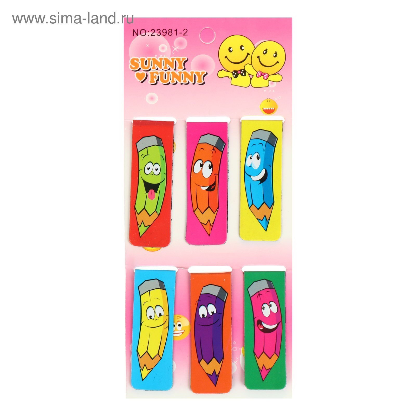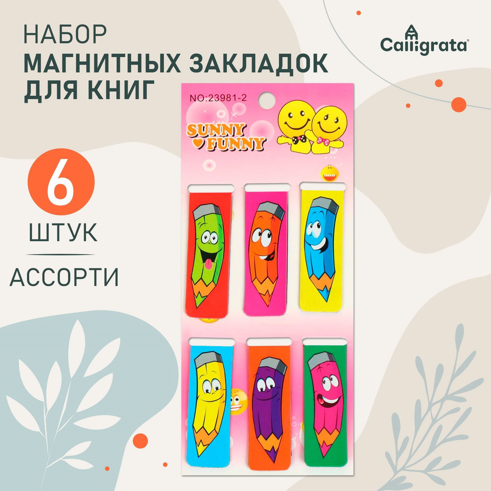 Набор закладок магнитных 6 штук "Веселый карандаш", ассорти, Calligrata, Китай