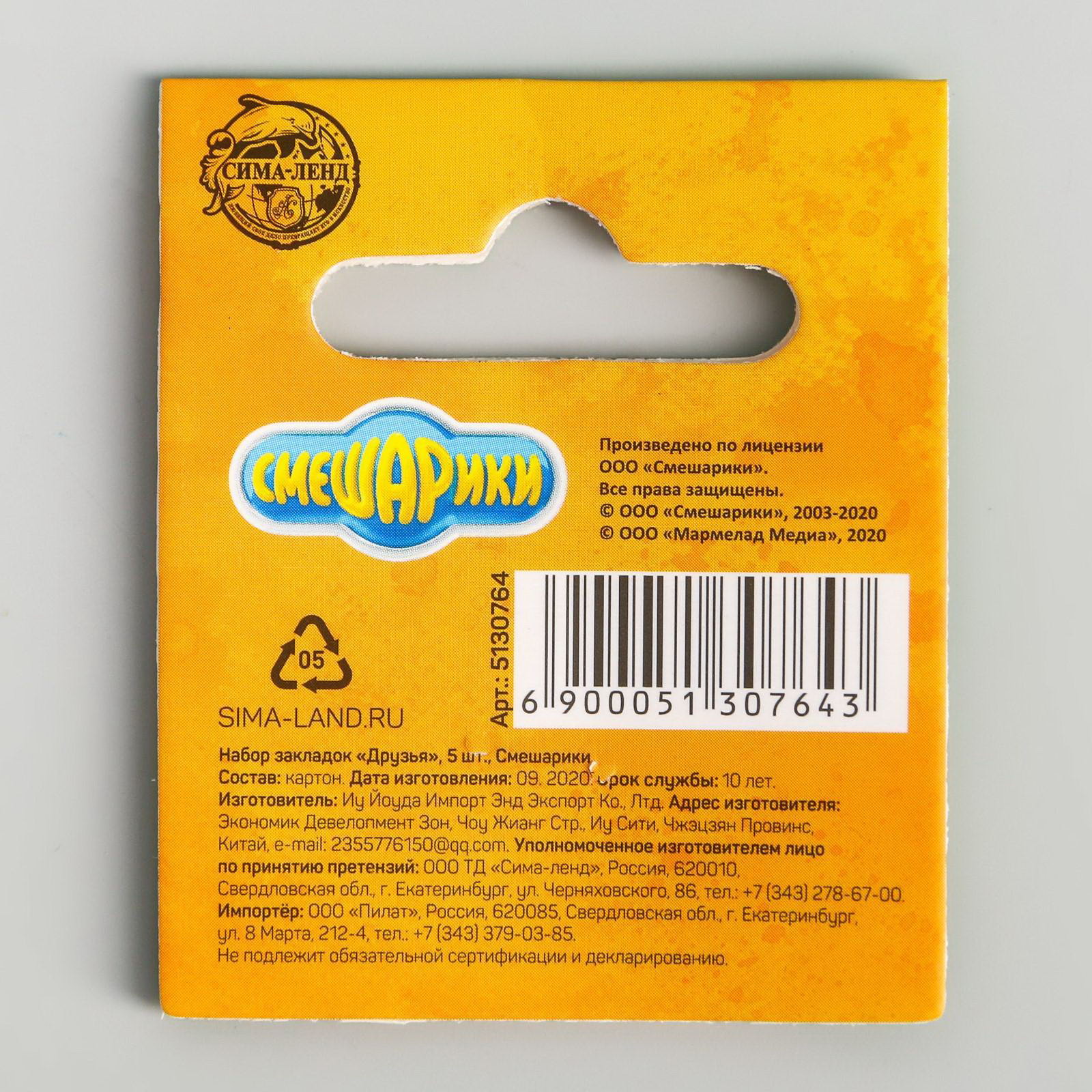 Закладки для книг, фигурные из картона, 5 шт. "Друзья", 5x18x0.5 см., Смешарики, Китай