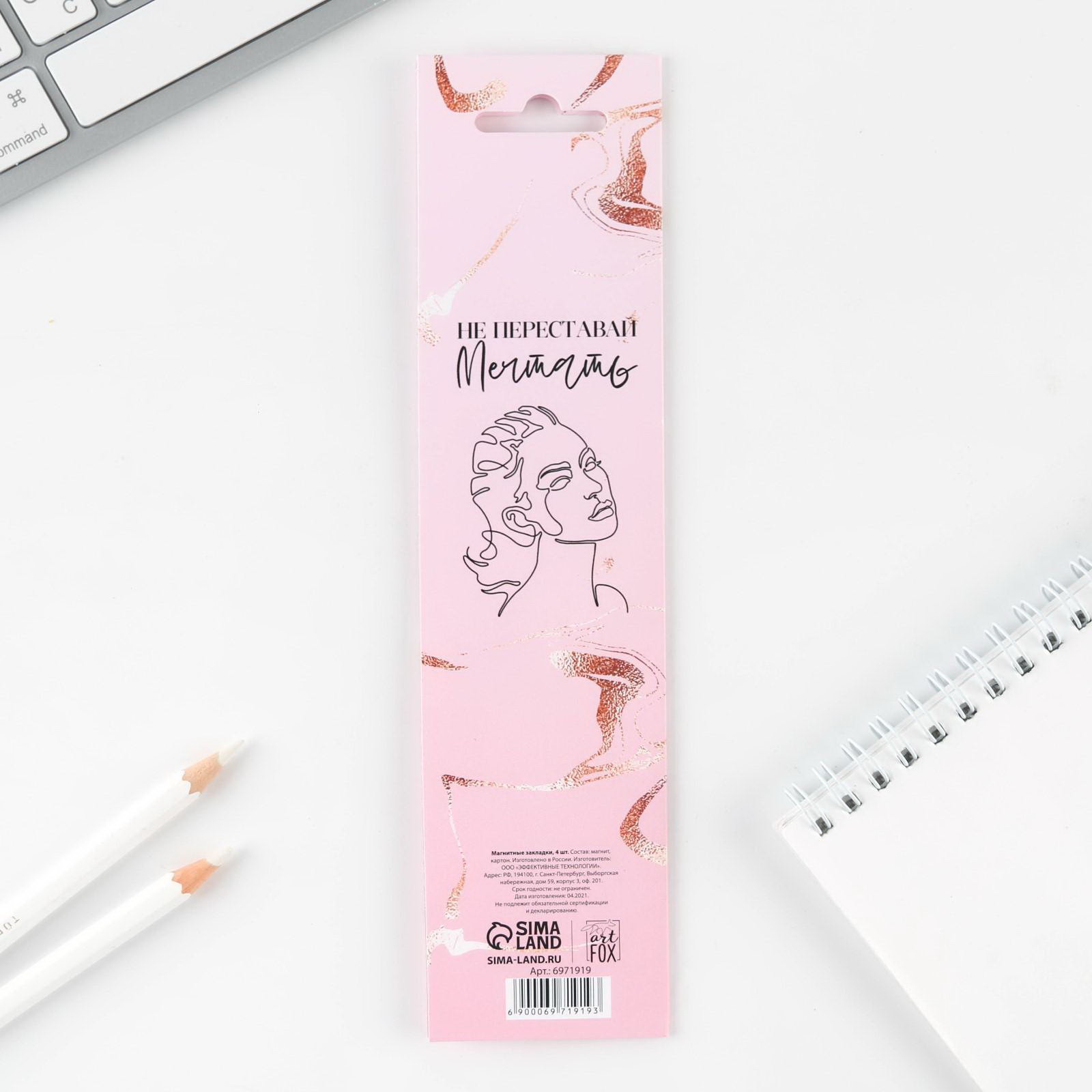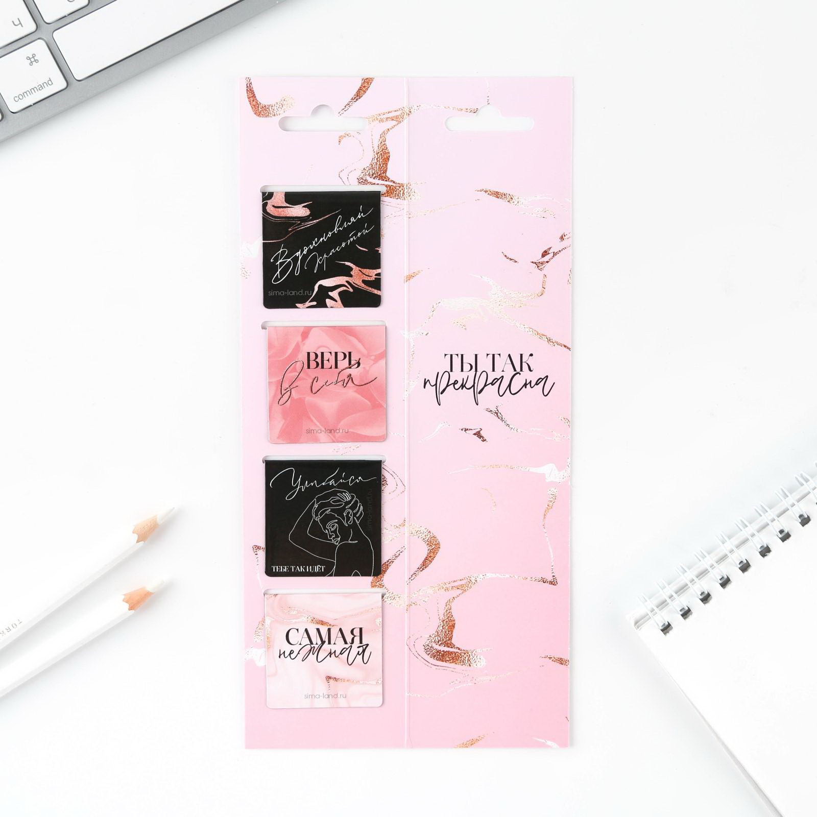 Магнитные закладки "Верь в себя", на открытке, 4 шт., ArtFox, Россия