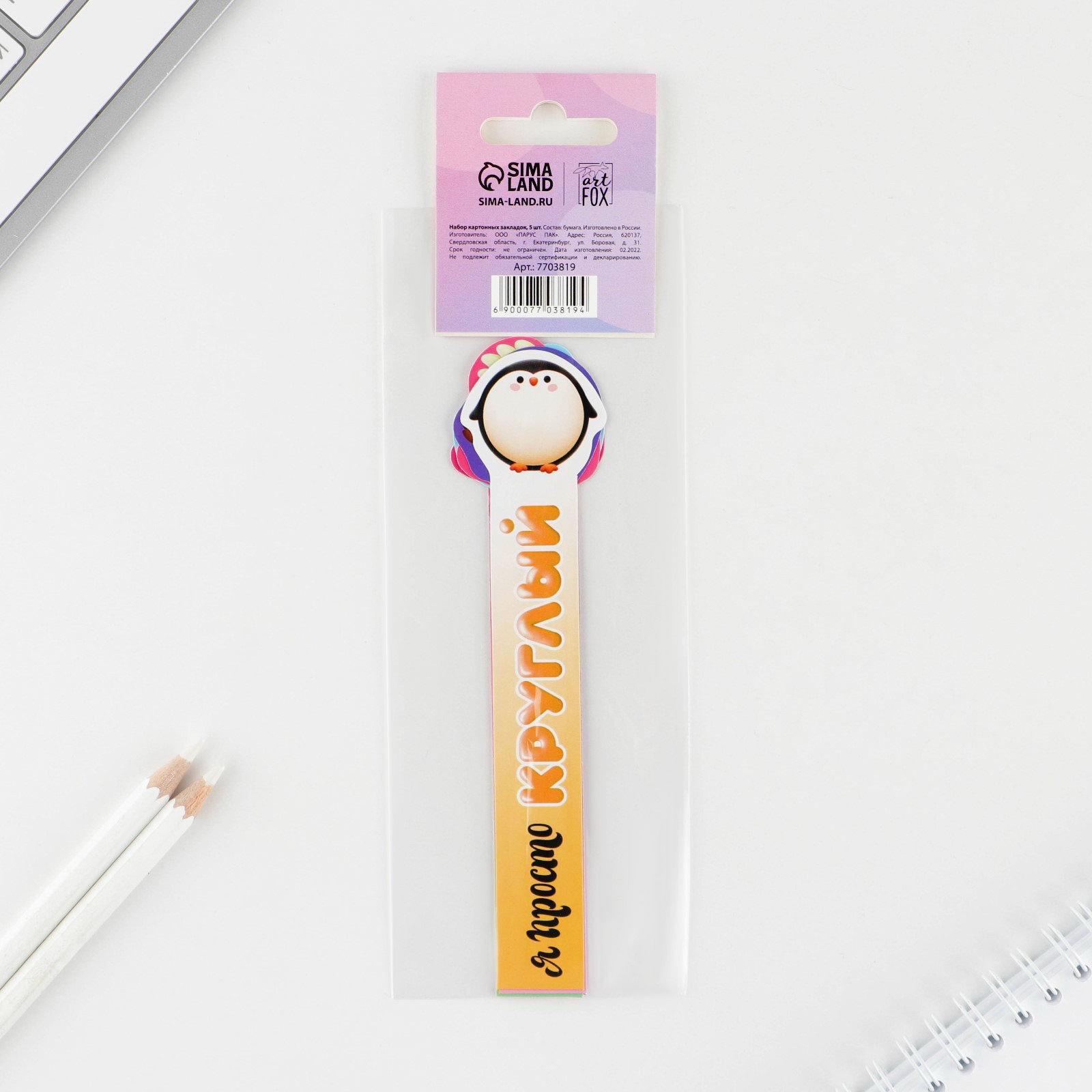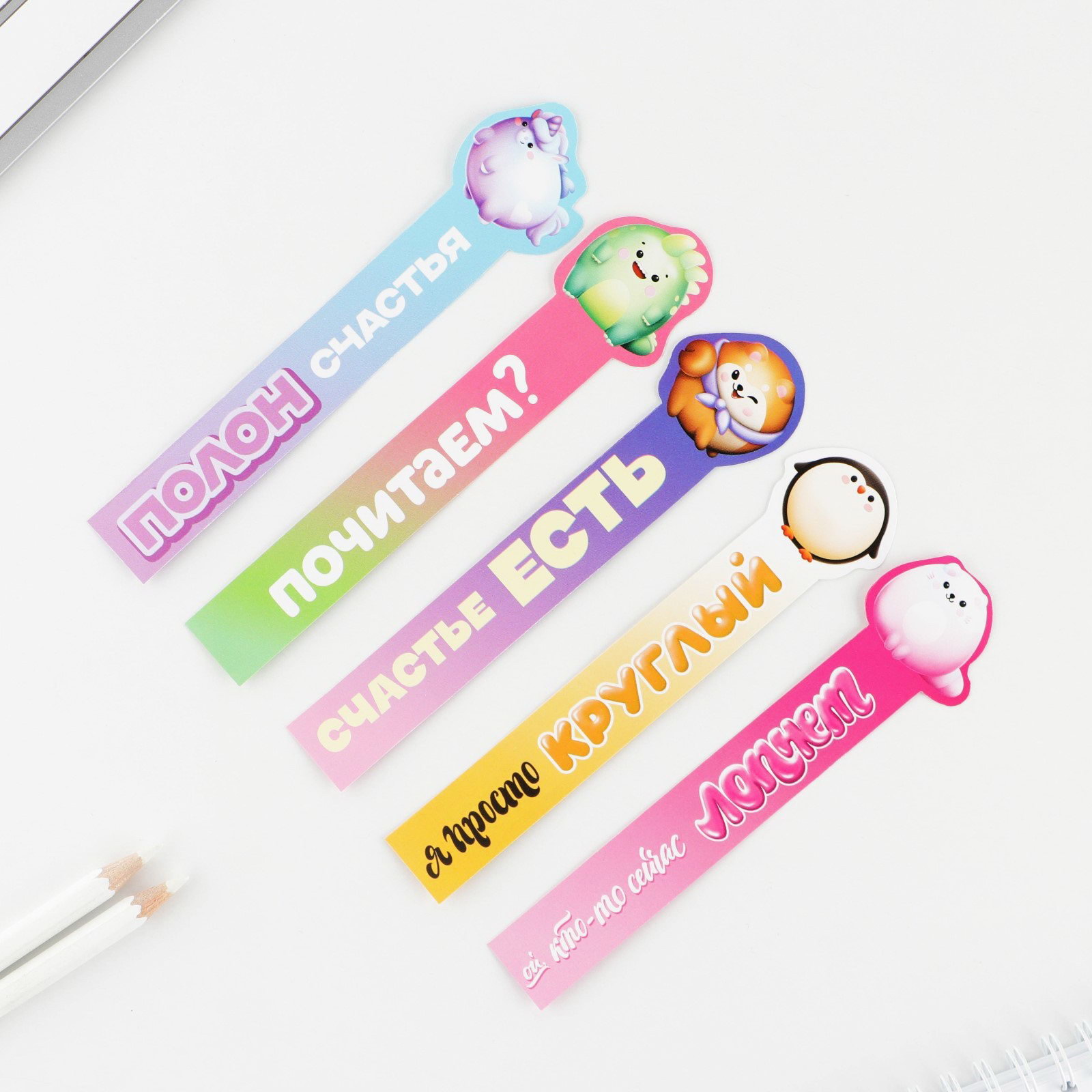 Закладки фигурные, картонные 5 шт. "Полон счастья", 4.5x18x0.1 см., ArtFox, Россия