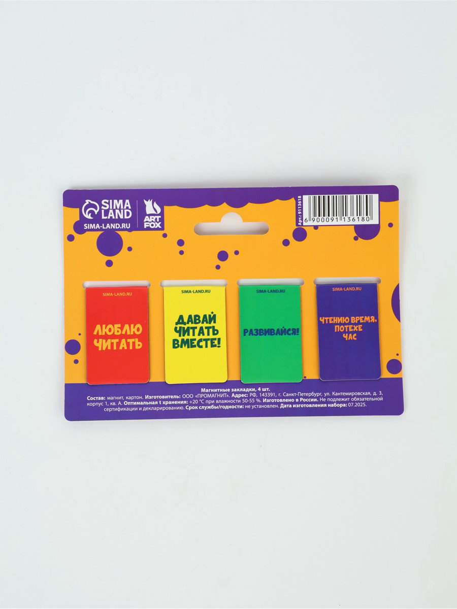 Закладки магнитные для книг, 4 шт. "Веселые закладки", ArtFox, Россия